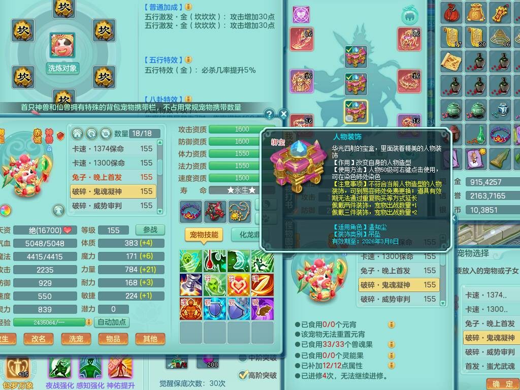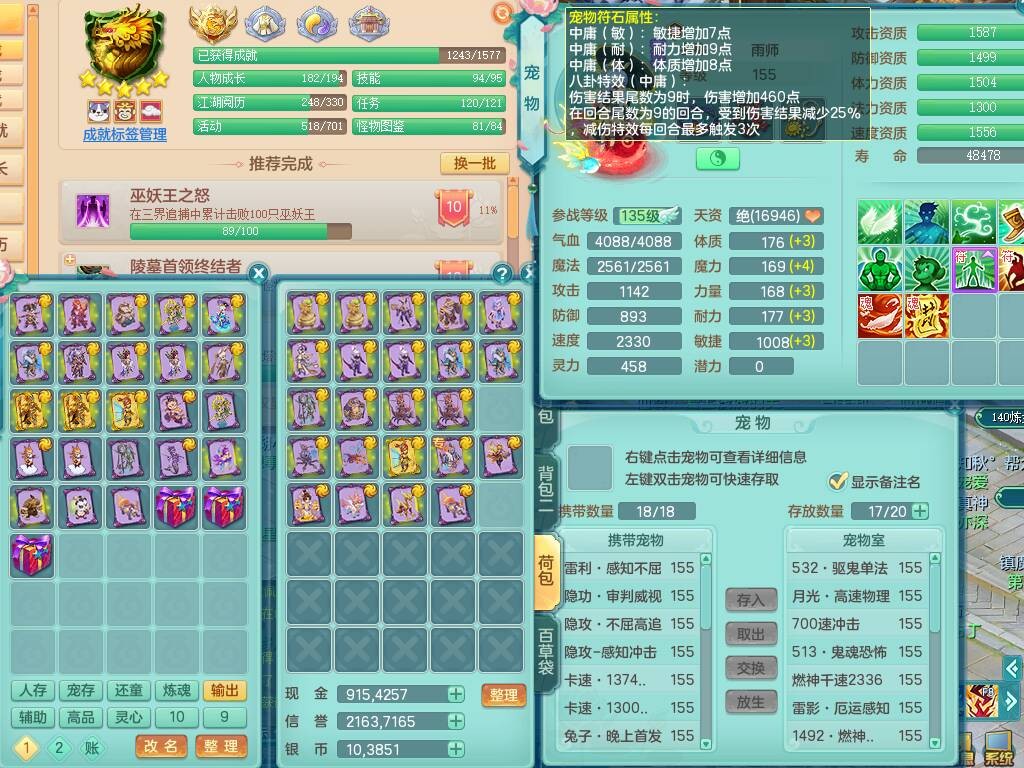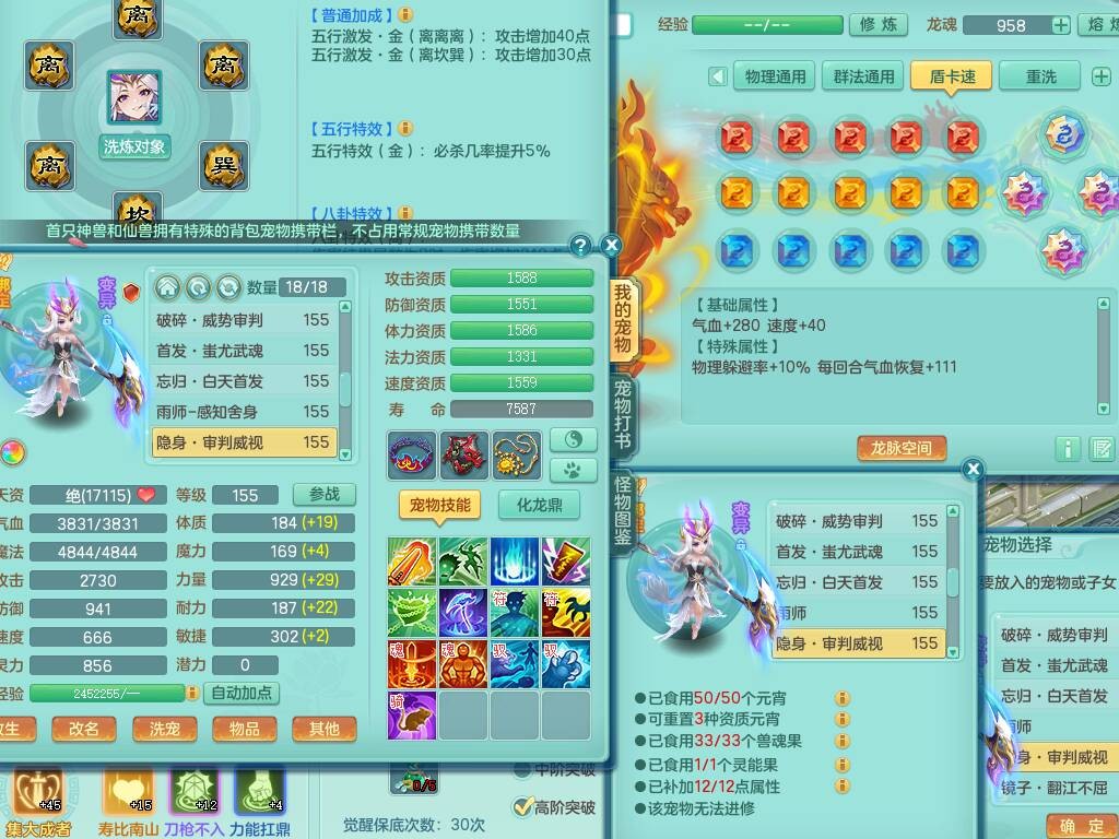 tx8892 天下无双159男法天宫,精灵歌,6龙3内胆神,1破镜,【21只觉醒,已潜龙】,4位靓号,11宠皮,1只六技能龙姬,5只六技能镜花灵,3特殊(翻江,月光,舍身),鸡腿四海单加武器,易成长五雷头,双法缭,法缭单加51衣服,法缭鞋子,263易成长武器,可玩物理,923必杀武器,934易成长单加武器,双红躲避破血单加54衣服,神佑单加52项链,指挥慈航单加56腰带,可玩辅助六特,愤怒晶清单加腰带,5.5基础鼎+70攻,280血,15个格子,19个六字,27只满果子,宠排在榜,经验修炼成就都在榜,永久称谓,完美染色暴龙泰坦+黑白西瓜冰+火焰之力武器皮肤,带184天月卡。2980邮箱