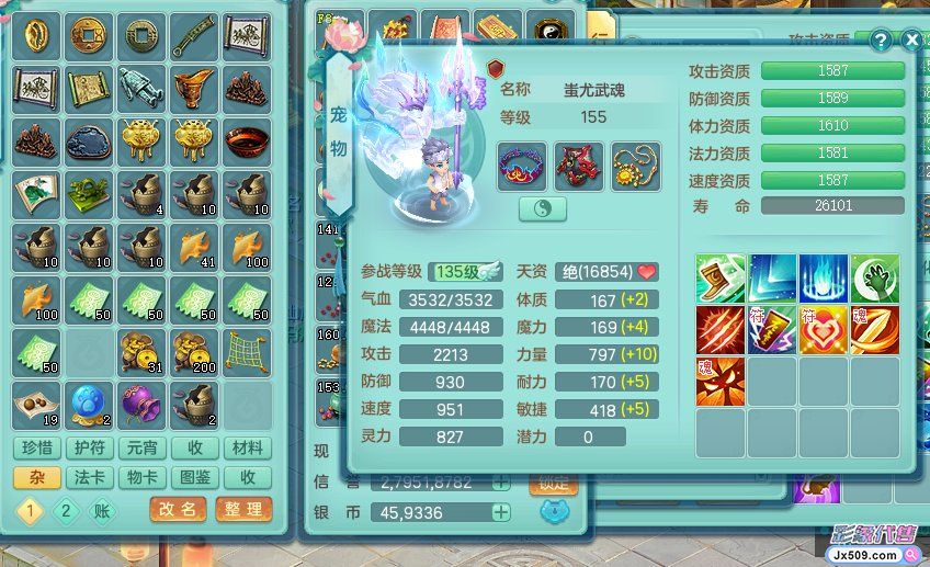 lt8895 潜龙在渊 蚩尤龙皮号 浪淘沙 159男天魔 精灵舞 8龙2内1龙皮 1龙破镜 鼎5.5 5特殊(羽袭、上善、嗜风斩、飞花、双星闪) 8个觉醒 7个宠物皮肤 宠物基本满果子 宠物符石10个纯6字 高单加 愤怒易成长野兽腰带 迅捷笑里鞋子 1满技能龙姬 细节拉满 永久背饰落网鱼王 qq邮箱