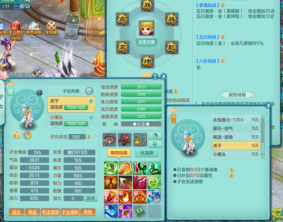 tx8903 天下无双 159 万兽 双人坐骑 精灵歌 满星穹 5.0化龙鼎 1内神 19仙兽灵 特殊(藕断、双星、祈雨、登云) 1觉醒 1个真6字 5+满果子 2980邮箱