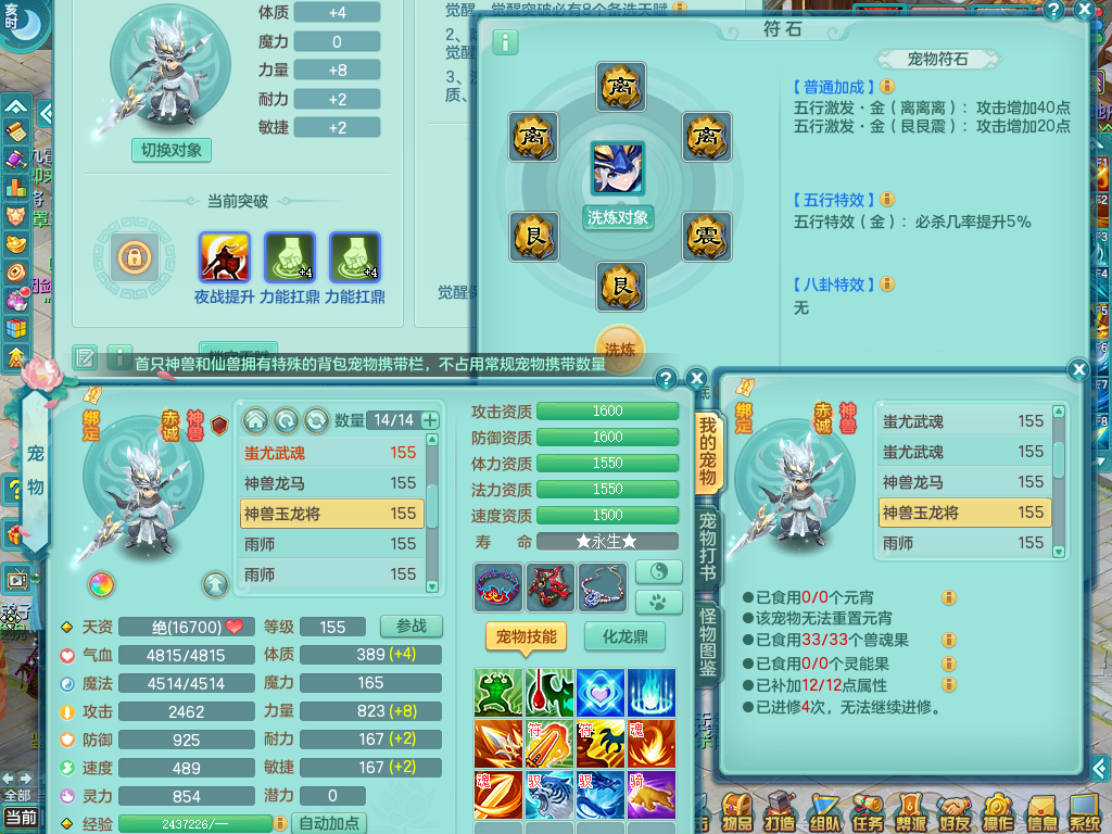 tx8912 天下无双 159 无名 双人坐骑 精灵歌 满星穹 1内神,1宠皮,1龙马。双人坐骑,火焰之力。13宠格(不含神兽仙兽格),10+满果子,仓库还有20+果子