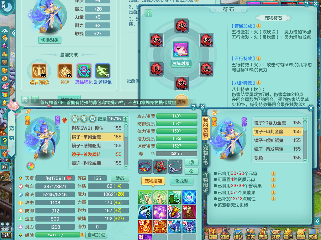 lt8920 浪淘沙 159 天宫 易烽火鞋子 5.5化龙鼎毕业 月卡146天 2内龙 2内神+22神兽碎片(还可存2) 3宠物皮肤 4镜子 特殊(夺命、虎虎) 8觉醒 7个真6字 21+满果子 7个坐骑 精灵舞 满星穹 2980邮箱