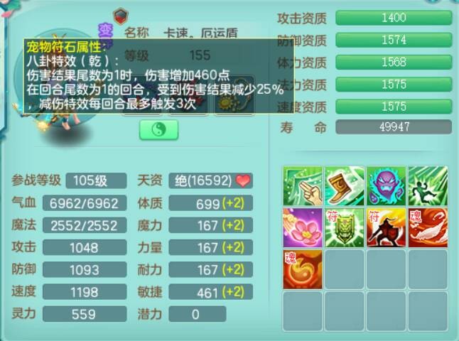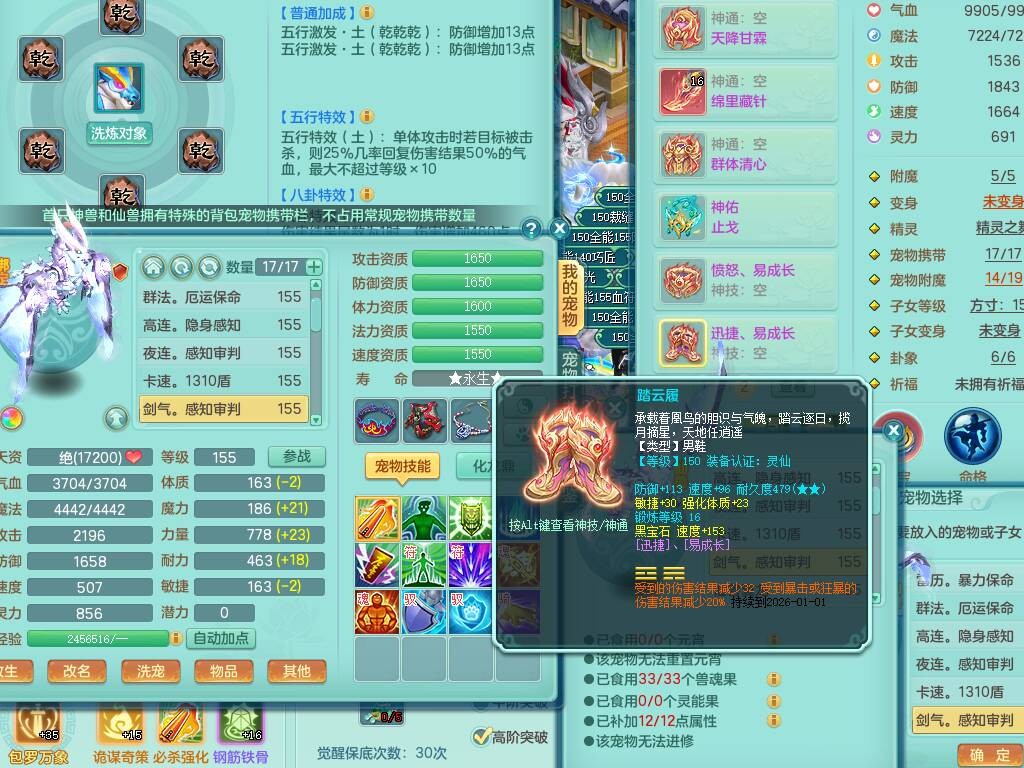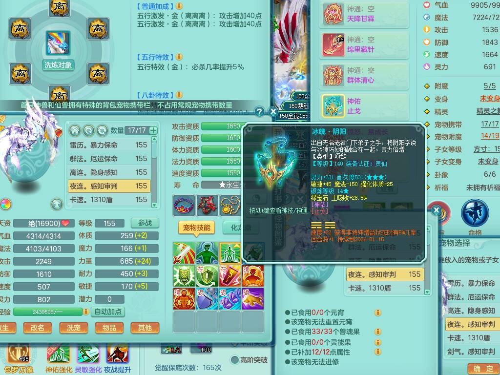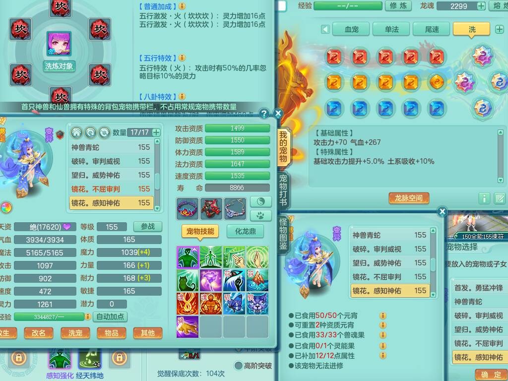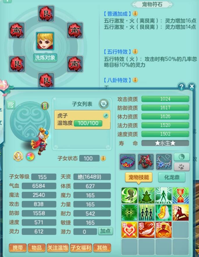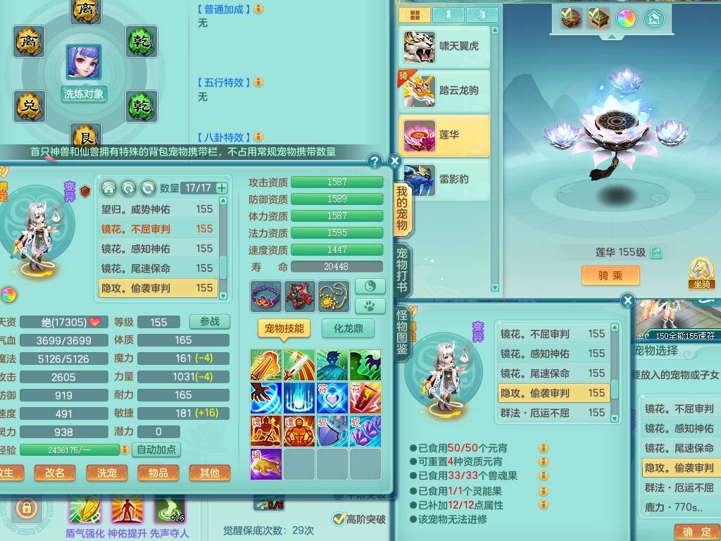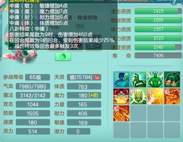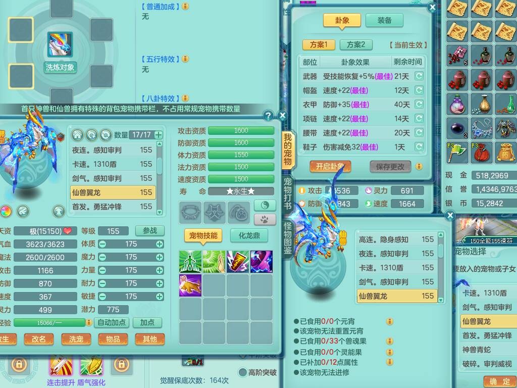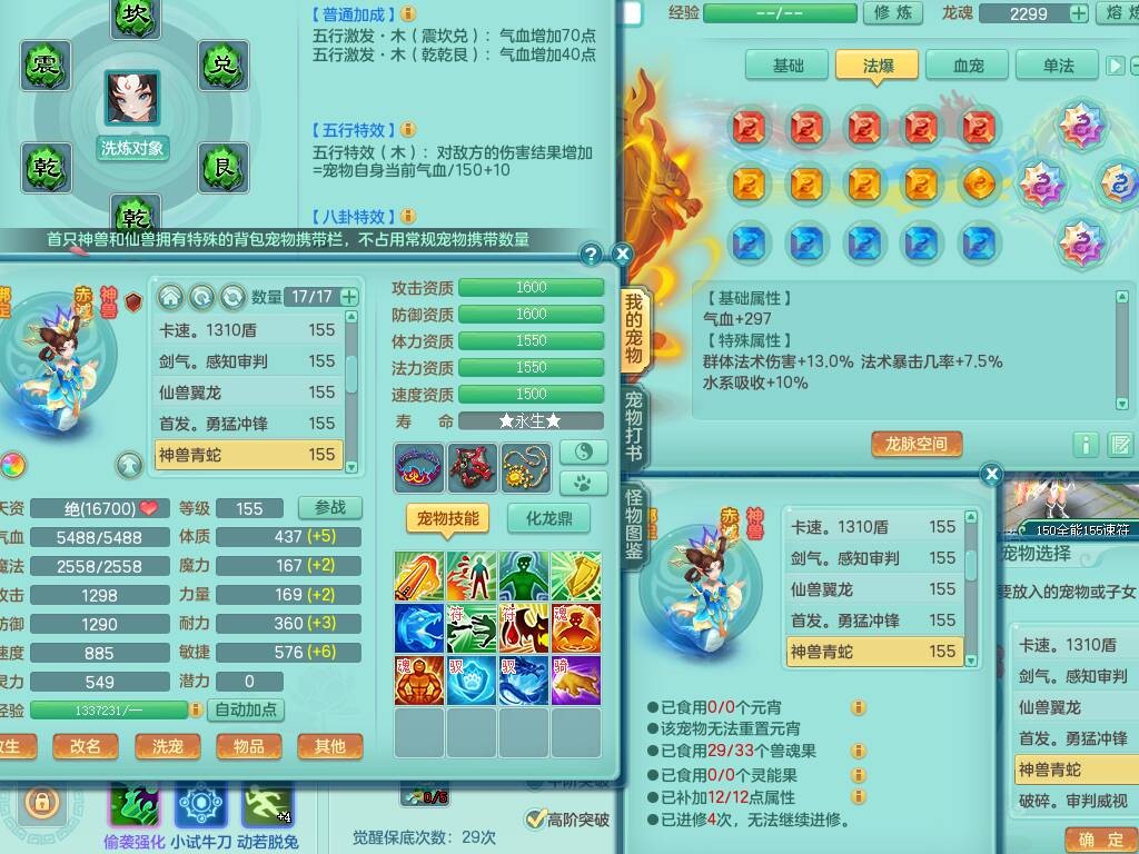 qq8925 七窍玲珑159男方寸,精灵舞,7龙(1龙无内),3内胆神,5只觉醒(潜龙条件符石满足,化龙鼎差1个厚土龙纹,宠物5只满足),3只6技能镜花灵,4位靓号,1只6技能龙姬,愤怒易单加腰带,迅捷易鞋子,有个934崩山裂地单加56武器,5.5基础鼎+70攻,14个格子,7个纯六字,1个5字,20只满果子,4只坐骑,背包带2个天马之心,永久称谓,月卡还有50天 2980邮箱