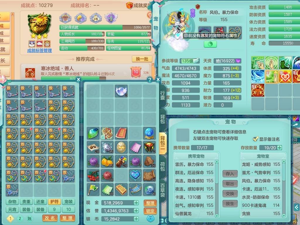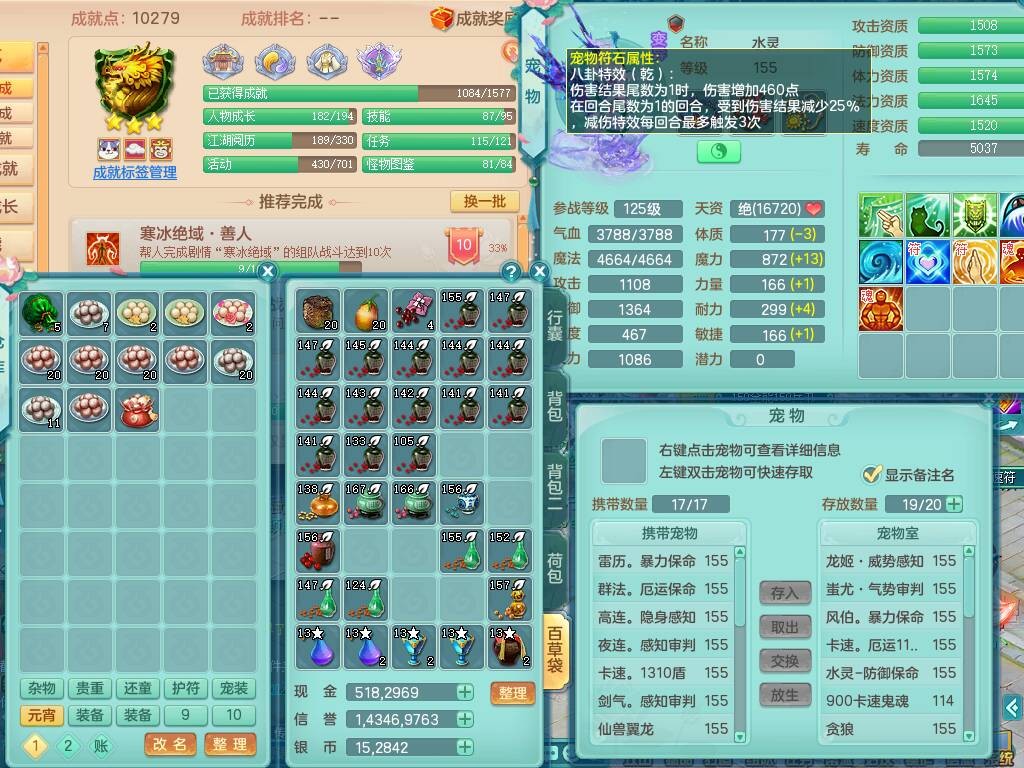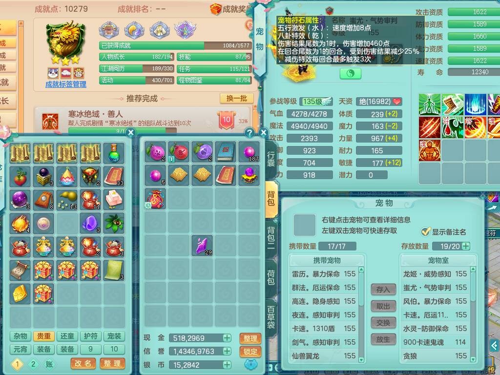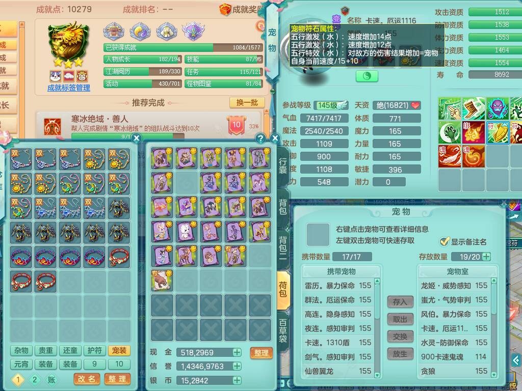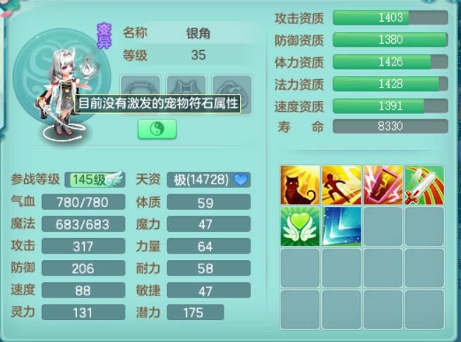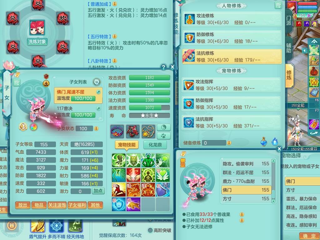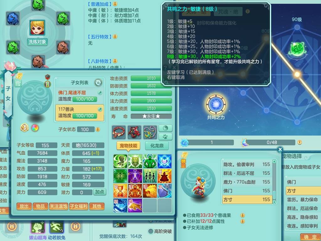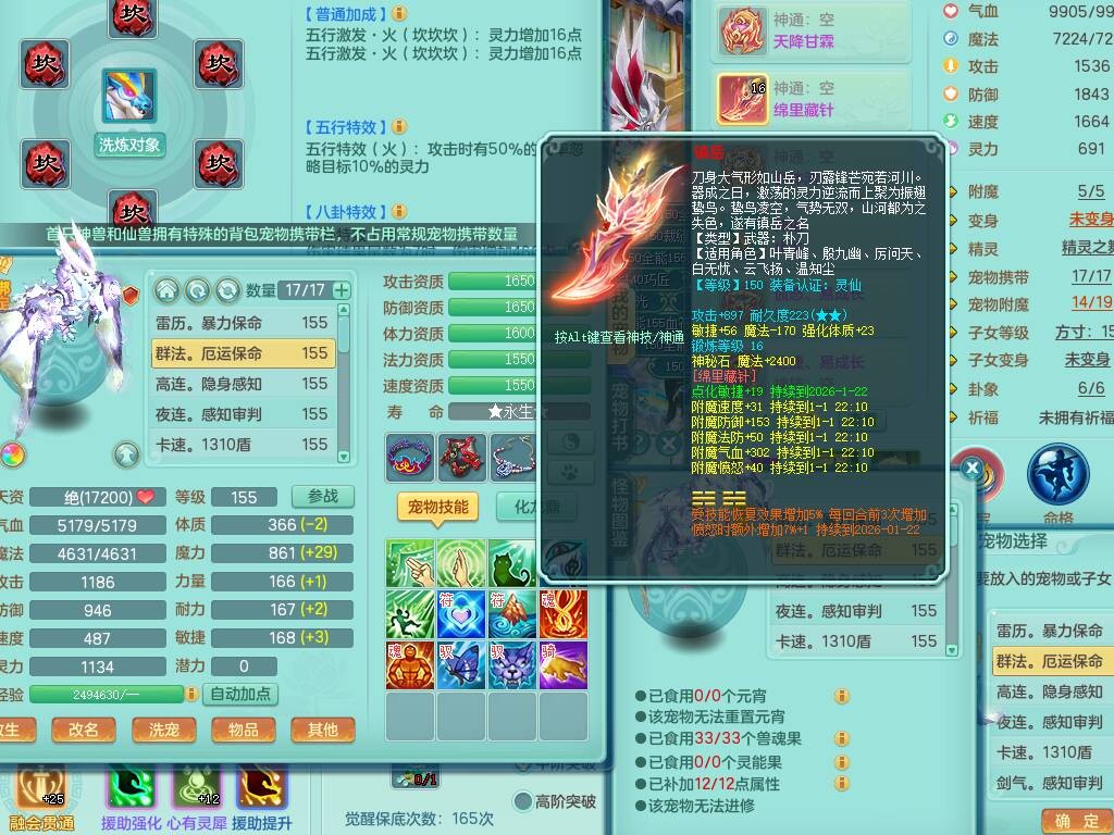 qq8925 七窍玲珑159男方寸,精灵舞,7龙(1龙无内),3内胆神,5只觉醒(潜龙条件符石满足,化龙鼎差1个厚土龙纹,宠物5只满足),3只6技能镜花灵,4位靓号,1只6技能龙姬,愤怒易单加腰带,迅捷易鞋子,有个934崩山裂地单加56武器,5.5基础鼎+70攻,14个格子,7个纯六字,1个5字,20只满果子,4只坐骑,背包带2个天马之心,永久称谓,月卡还有50天 2980邮箱