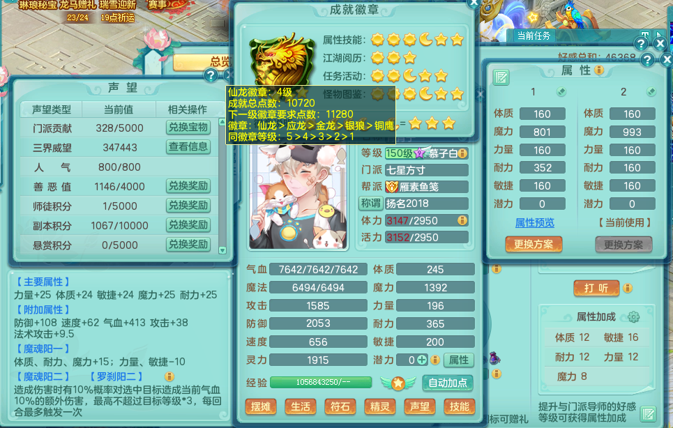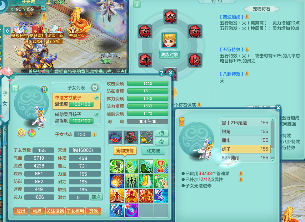 zw8990 战无不胜 159 魔FC 4字靓号(不带4 )5.5化龙鼎 月卡129天 2龙(全拍)1内 5特殊(破碎之锤、噬风斩、善恶、月光、灵傀逐影) 6觉醒 7六字 15个格子 3镜子1红心龙姬 距离潜龙只差2个觉醒和人物符石 带170多万神武币和3000多金币 十几个满果子宝宝 宠排在榜 双人坐骑 精灵舞 满星穹 163邮箱