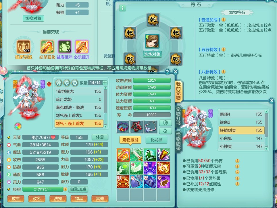 jt9049 【潜龙在渊】九天揽月 159无量 幸运天地武器 强壮群净衣服 易化险项链 愤怒心神腰带 5.5化龙鼎毕业 2龙1内 1内神 13觉醒 12个真6字 14+满果子 特殊(清爽,飞花,上善,雷利) 双飞坐骑 精灵梧 满星穹 2980邮箱