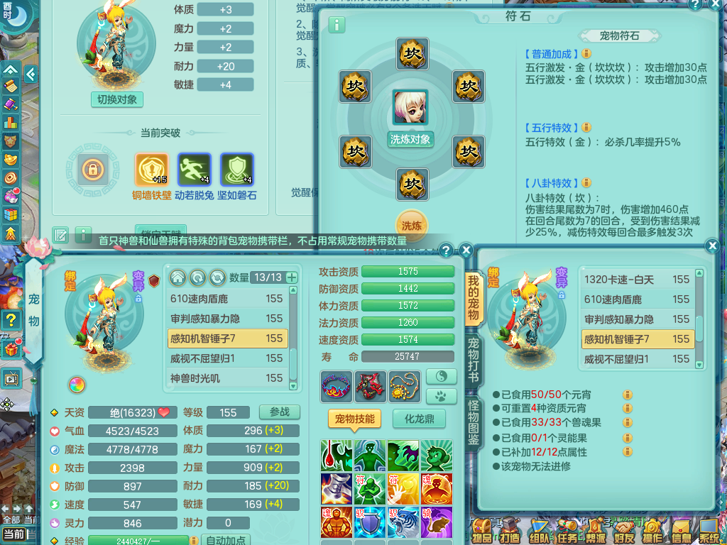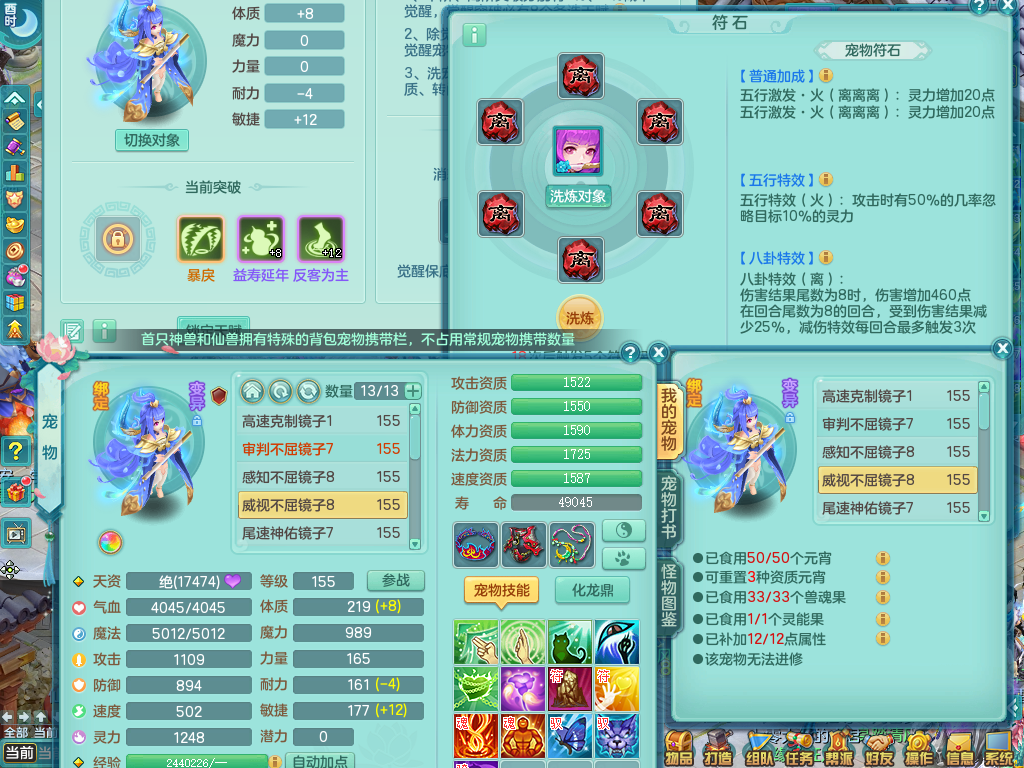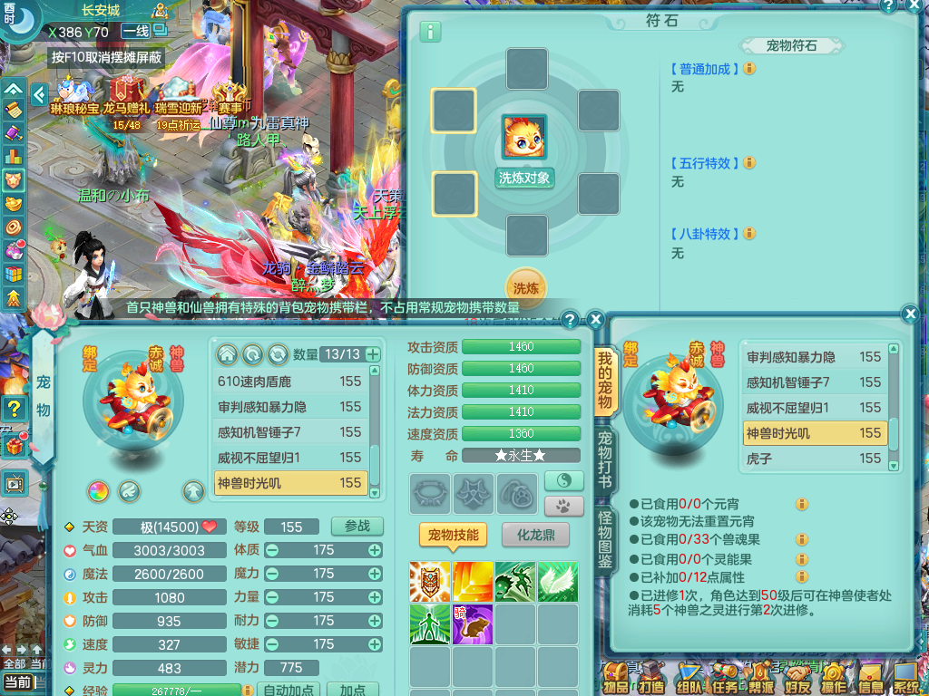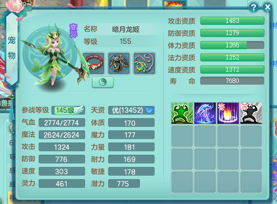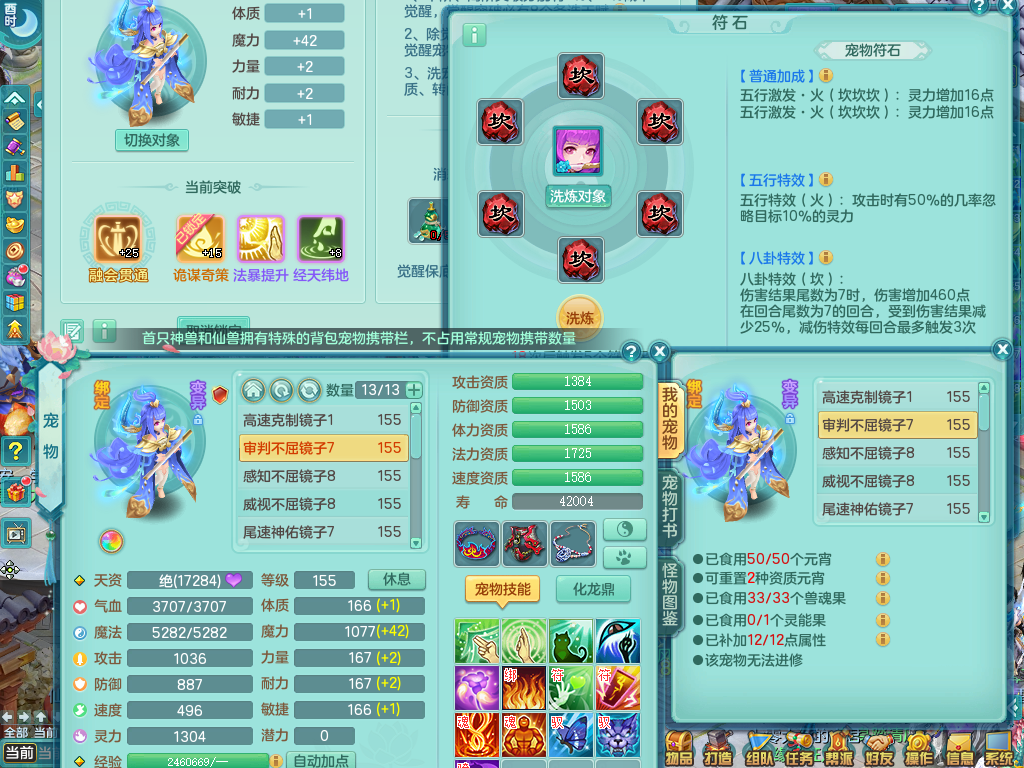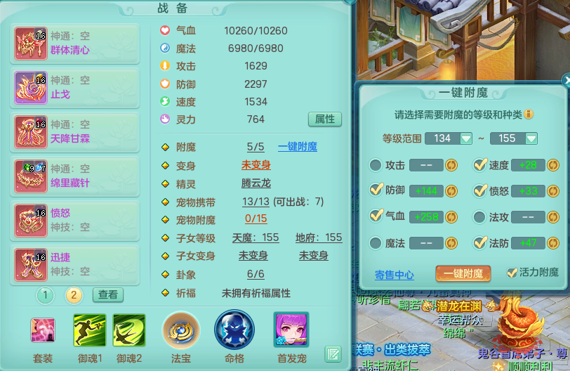 tx9057 天下无双 准潜龙 159 天魔 差3个主符石潜龙 6.0化龙鼎毕业+5.5化龙鼎+8.7法爆 20仙兽灵 1内神 5镜子 特殊(雷光、上善、流星) 7觉醒 10个真6字 15+满果子 双人坐骑 精灵舞 满星穹 2980邮箱