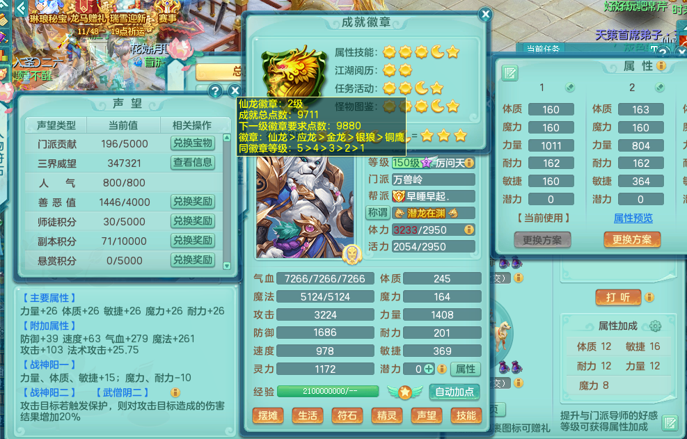 sn9063 【潜龙在渊】少年游 159 万兽 4位靓号 易狂暴武器 泰坦龙坐骑 精灵歌 16格子 5.5化龙鼎毕业 月卡108天 5龙4内 3内神 5镜子 4宠物皮肤 特殊虎虎 10觉醒 9个真6字 20+满果子 满星穹 2980邮箱