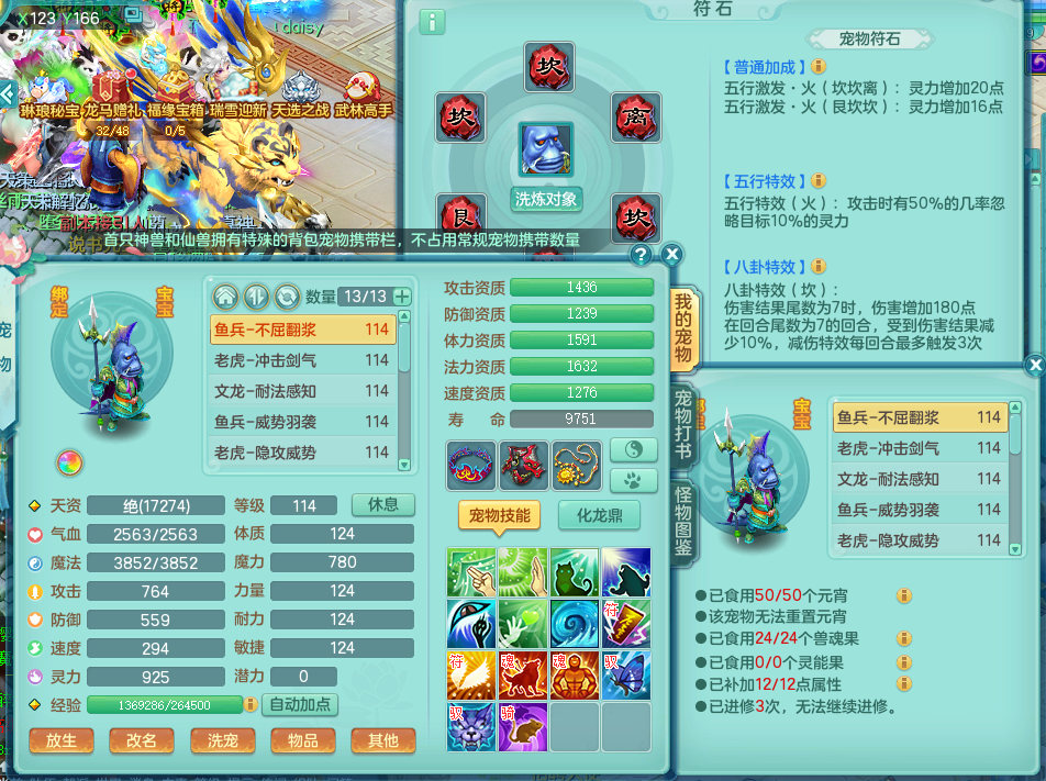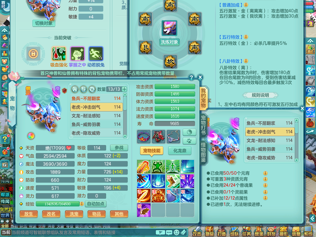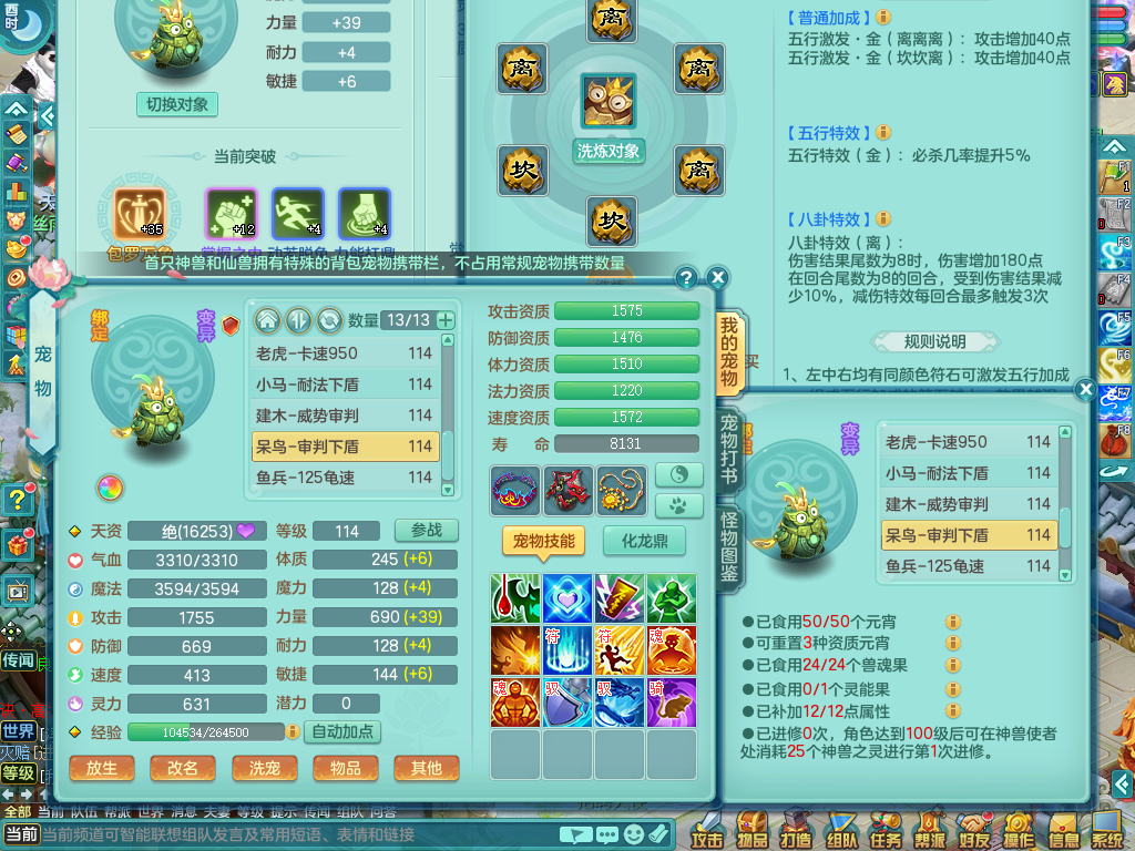 zw9116 战无不胜 109 龙宫 化龙鼎 1内神 1宠物皮肤 8觉醒 4个真6字 9+满果子 双人坐骑 精灵盾 满星琼 2980邮箱