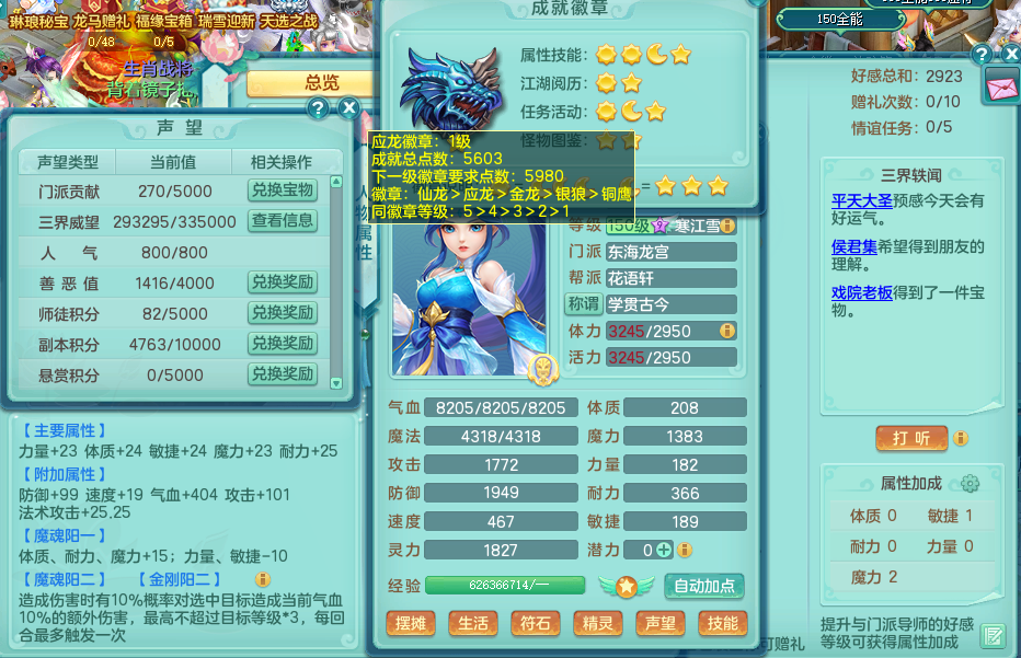 zw9166 战无不胜 159 魔FC 永久称谓 4字靓号(不带4 )2龙(全拍)1内 5特殊(破碎之锤、噬风斩、善恶、月光、灵傀逐影) 8觉醒 7六字 15个格子 3镜子1红心龙姬 距离潜龙只差3个主属性和1个附加,2000多金币 十几个满果子宝宝 宠排在榜 三开号,带俩个159成品奶粉 163邮箱