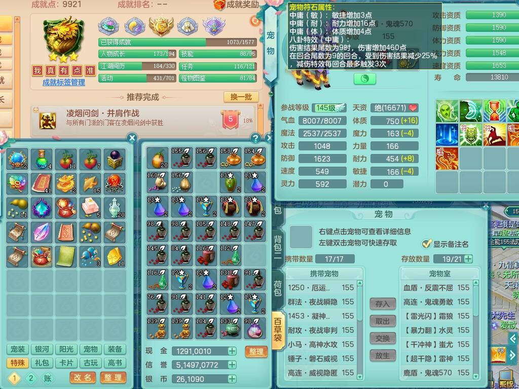 tx9197 天下无双159男天魔,精灵舞,5龙(1龙没内),1龙皮,3内胆神,4破镜,【18只觉醒,已潜龙】,5位靓号,12宠皮,2只六技能龙姬,4只六技能镜子,三红愤怒易成长笑里单加56腰带,回春晶清单加武器,封锁幸运5头,仓库有法缭单加57衣服,五雷单加56衣服,法缭玉清鞋子,封锁群体止戈武器,5.5基础鼎+70攻+280血,15个格子,10个纯六字,10个五字,22只满果子,宠排在榜,3个坐骑,暴龙泰坦,冰晶庭院 163邮箱