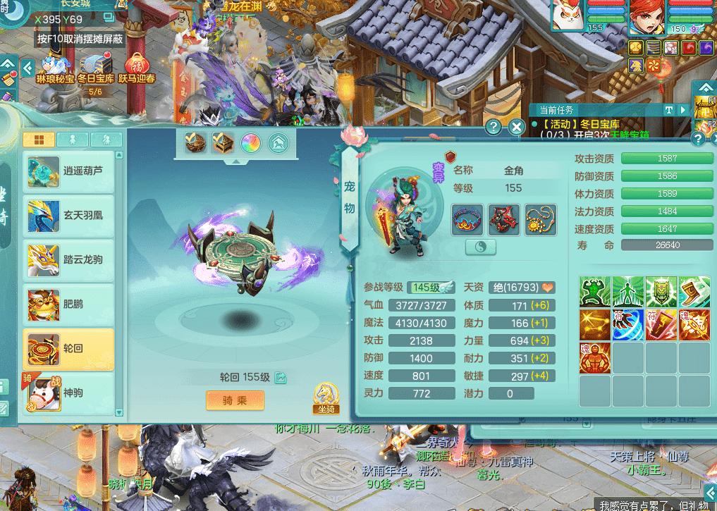 jt9271九天揽月159男佛门回春驭兽武器 马到成功战骑 新武器造型 多个染色坐骑 精灵悟 1内神 3龙2内 3镜花1龙姬 2突破 10满果子
