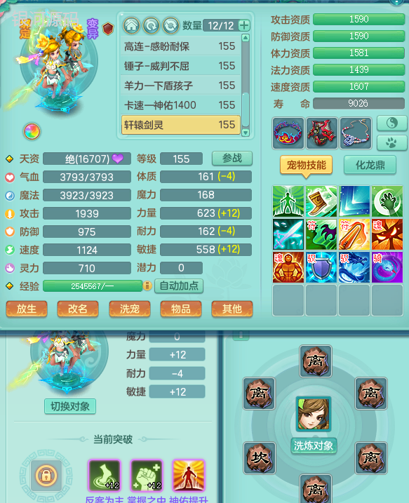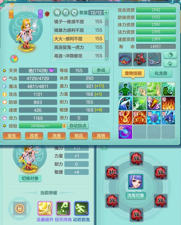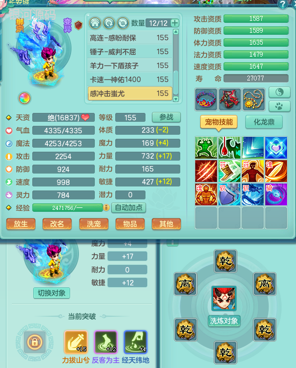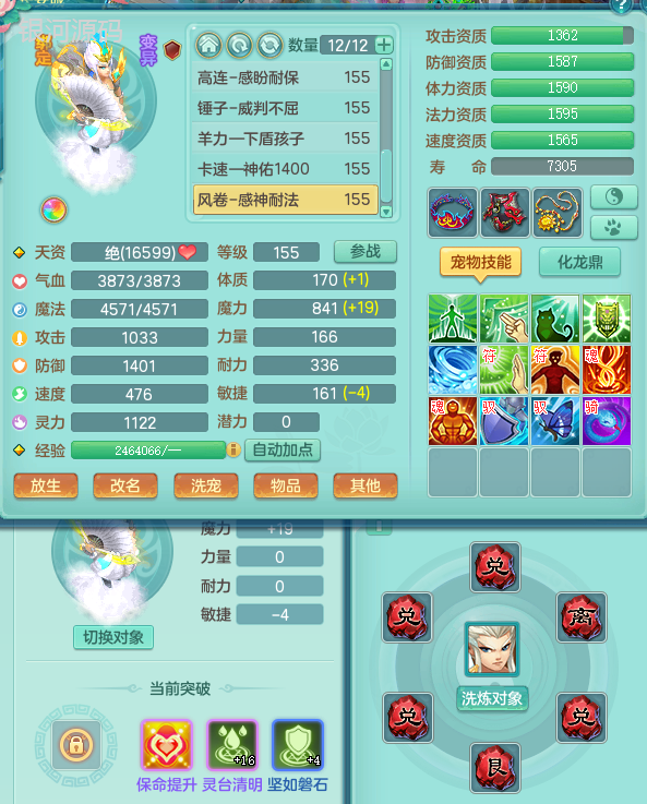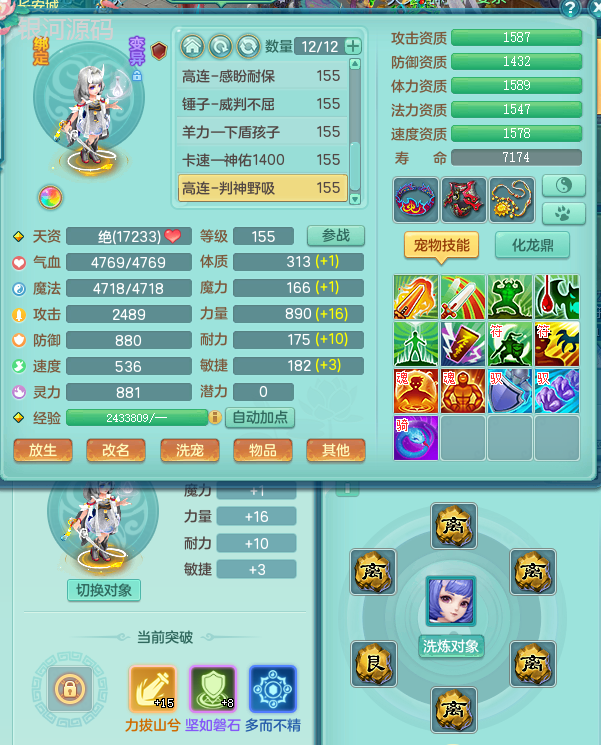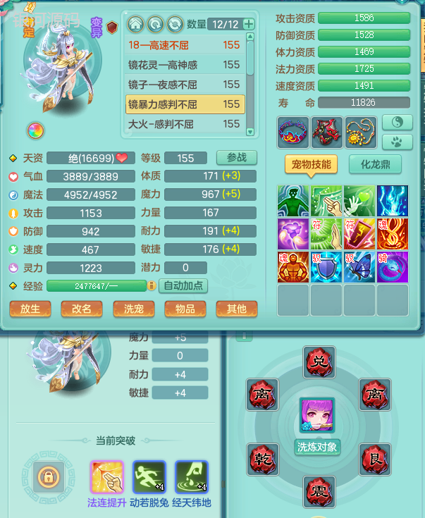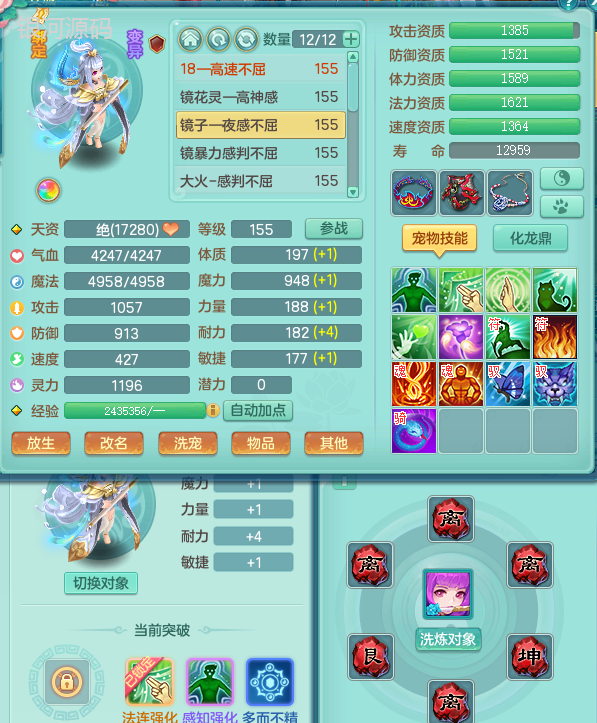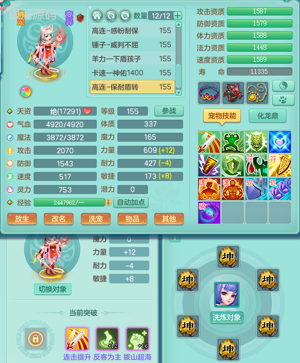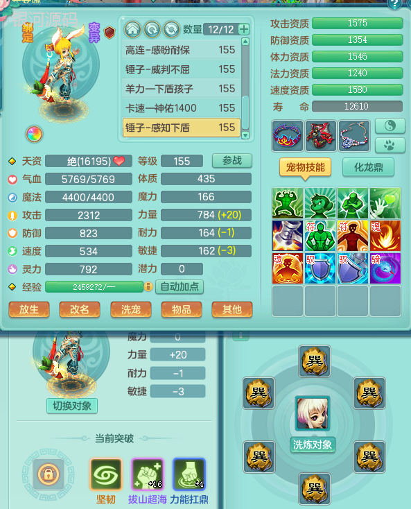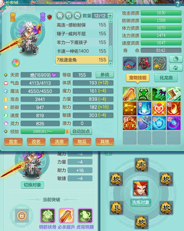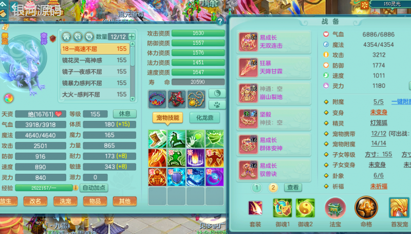jn9289今年勇159男五庄 一线物理毕业装 1龙无内 3个6字 2个觉醒 化龙鼎5.0 12只满果子 宝宝成长很高
