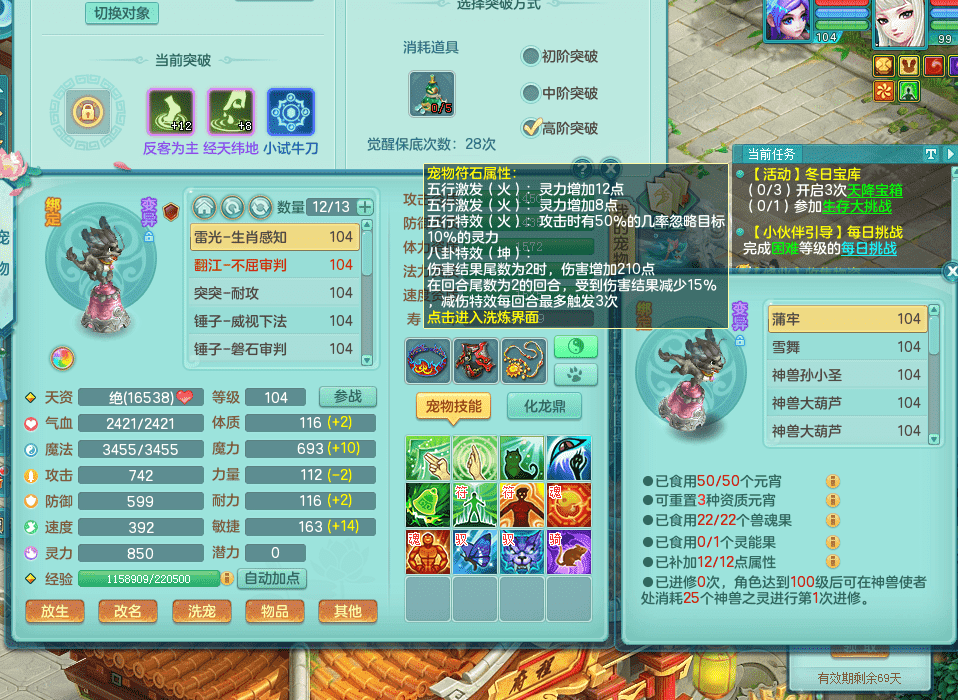 fh9291潜龙在渊风华绝代 99女盘丝 7觉醒 7六字 16满果子 3内神 装备双红多 宠物很强 细节拉满