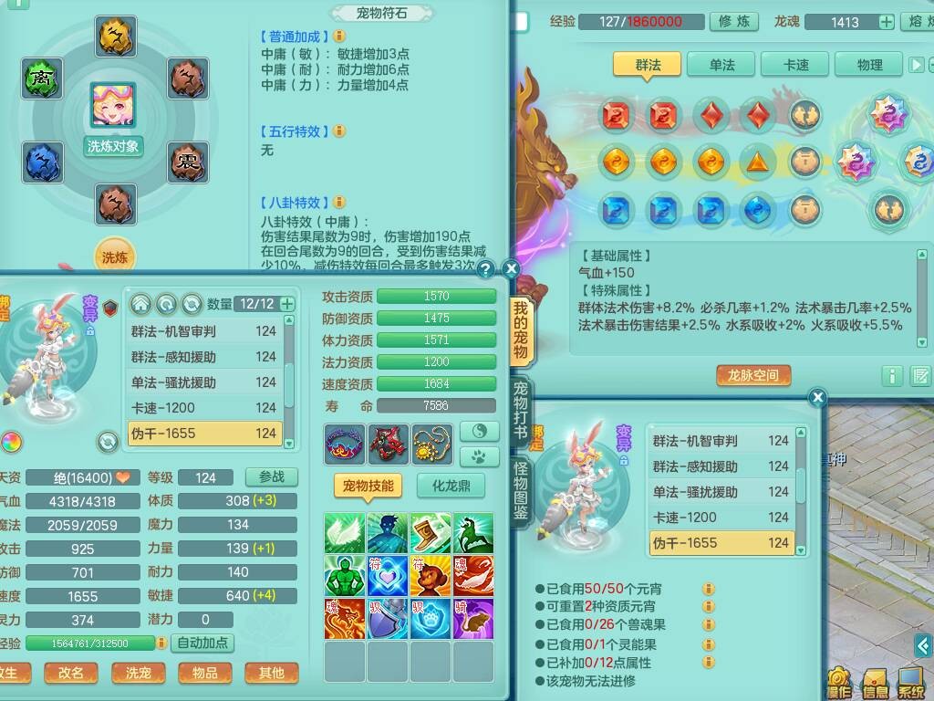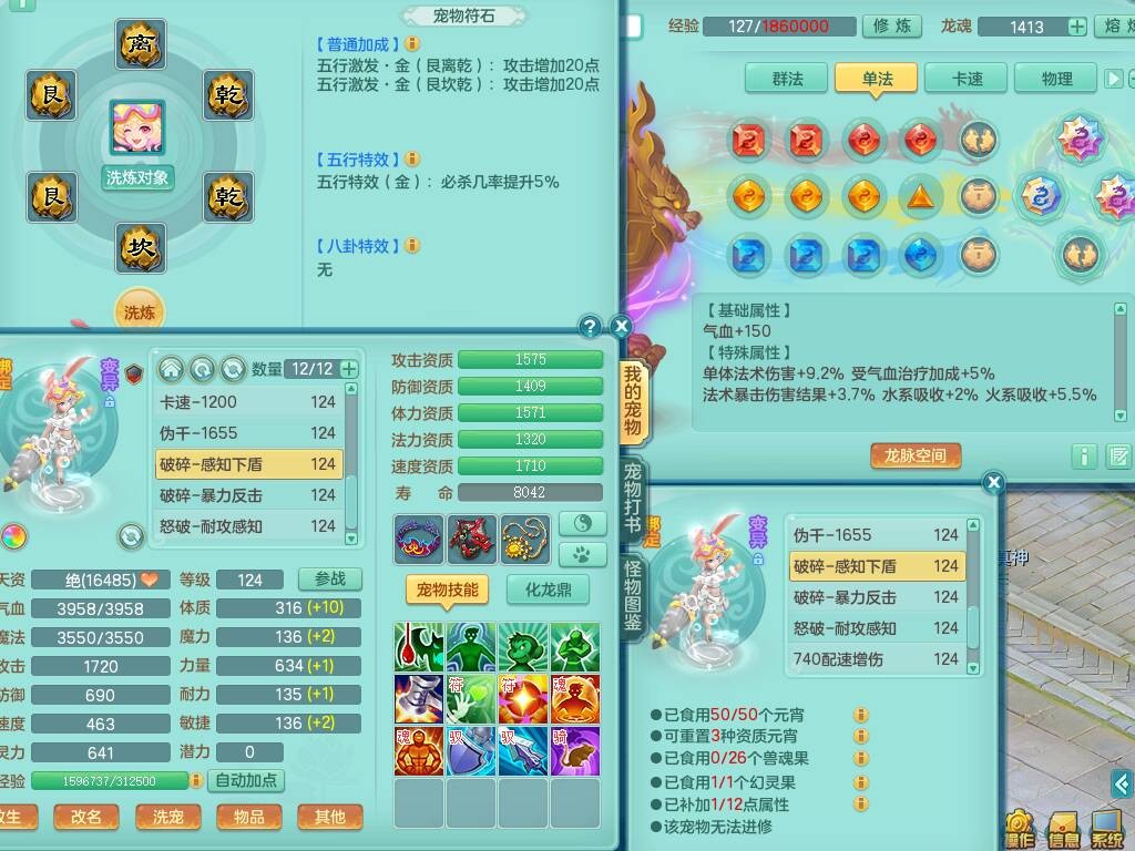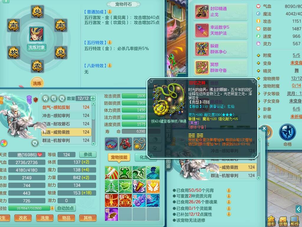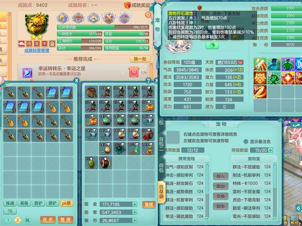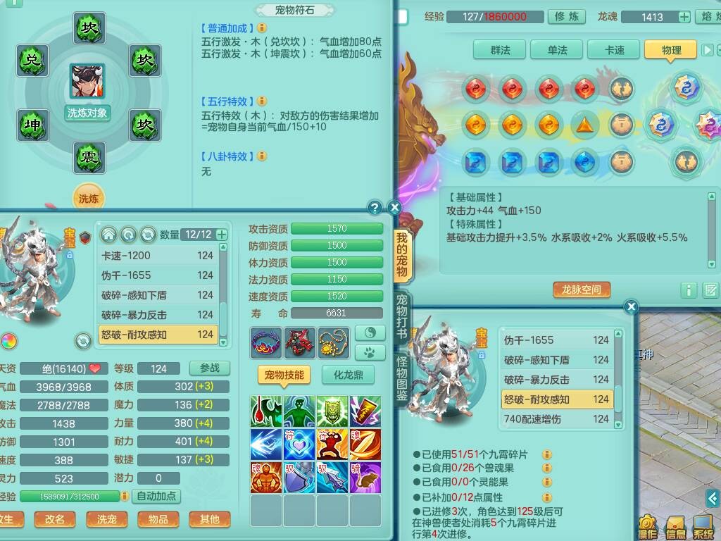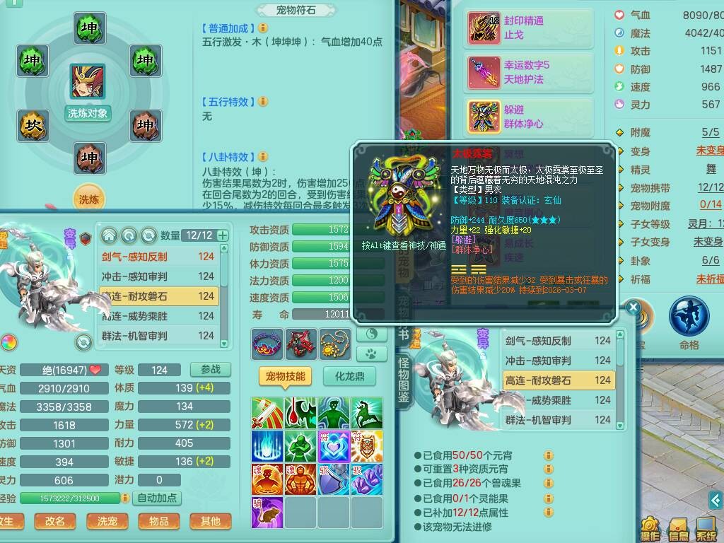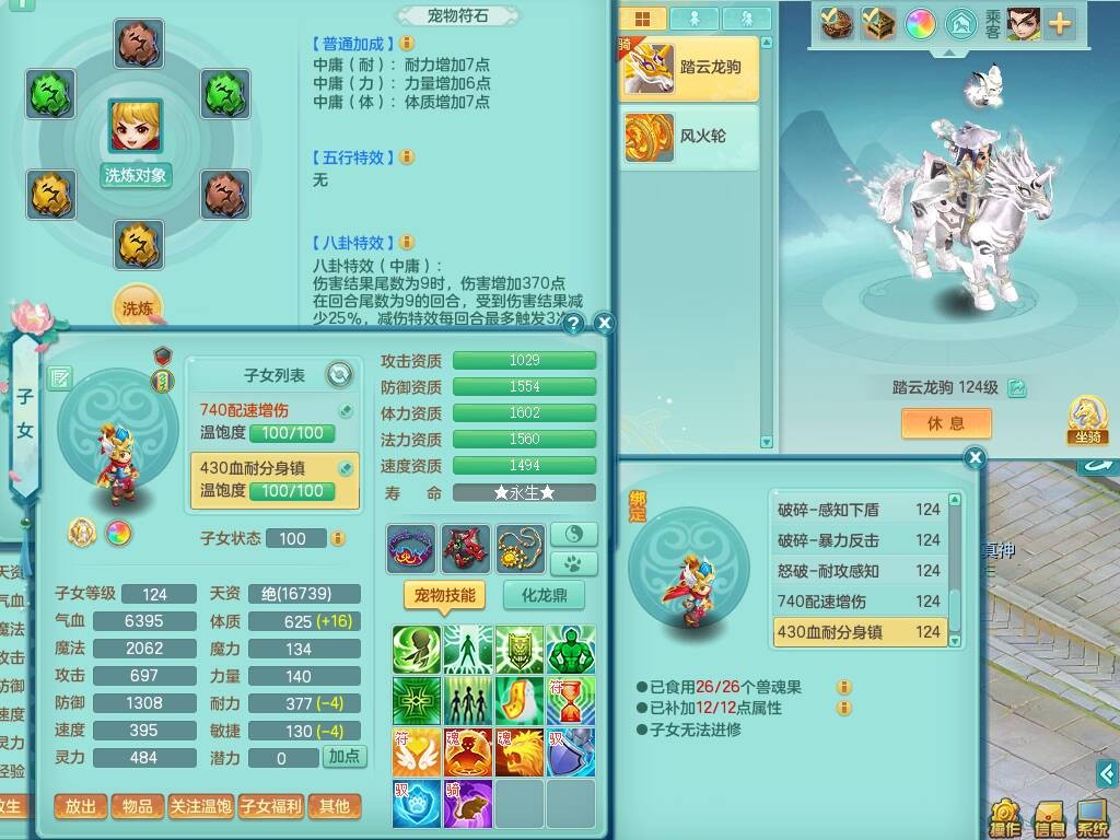 p20719少年游119男方寸,精灵舞,1神兽+背包39神兽内丹碎片,带22仙兽灵,13纯白宠皮,星辰之拥,封印精通止戈单加头,愤怒6特,双红迅捷单加鞋子,3.5基础鼎,5只满果子,宠排在榜,双人坐骑,月卡还有191天。