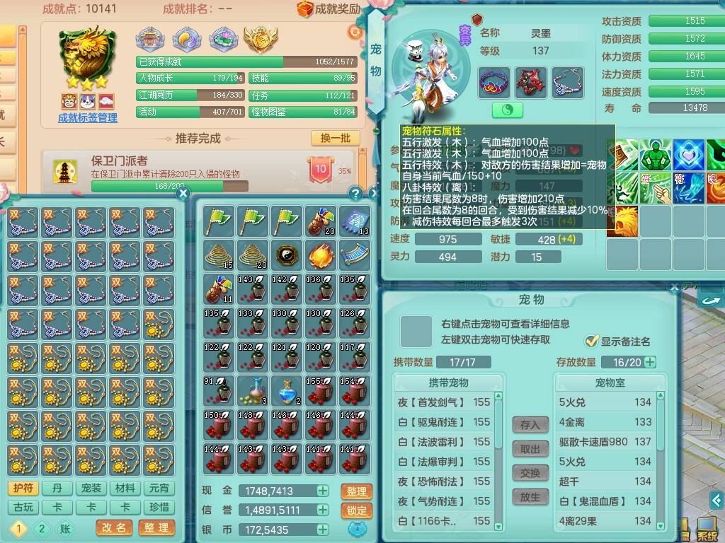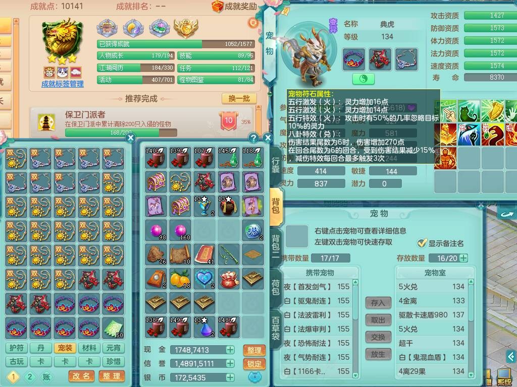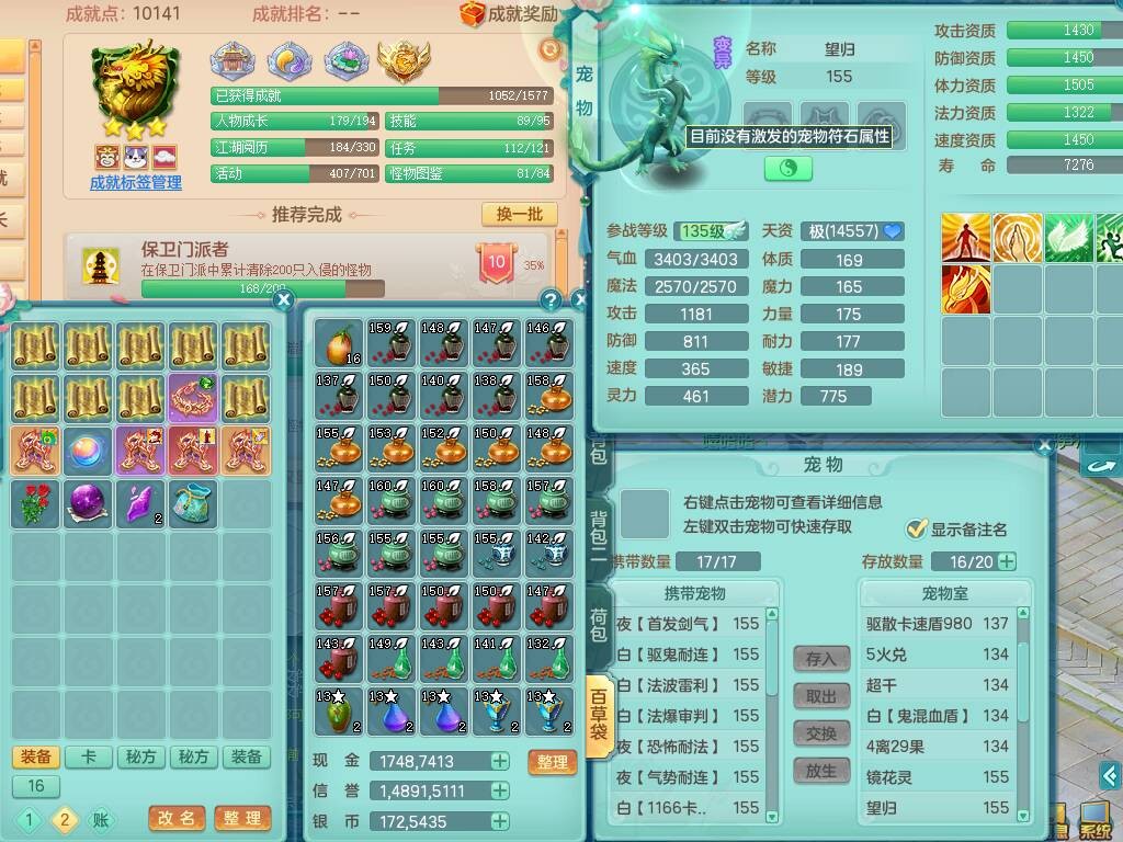 C20721少年游158男魔王,精灵怒,7龙3龙皮,3内胆神,【14只觉醒,已潜龙】,4位靓号ABAA,5宠皮+2幻灵果,3只六技能镜花灵,法爆慈航武器,268易成长回生之术单加56项链,易成长群体疾速单加56衣服,6.0基础鼎+70攻+280血,15个格子,11个纯六字,综合19只满果子,宠排在榜,永久称谓,57个仙兽灵,2个双人坐骑,有安全证书,可随时配合,介意勿扰。