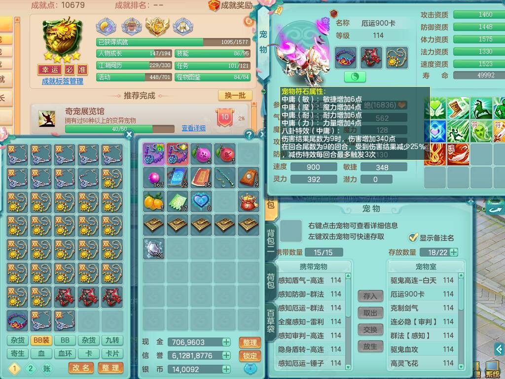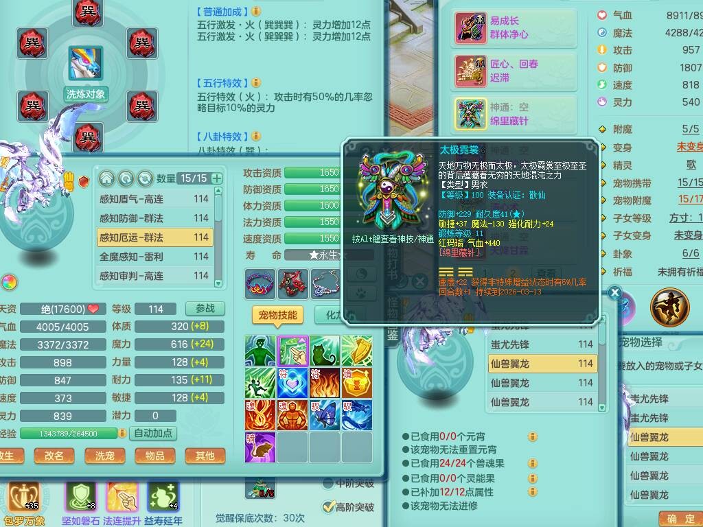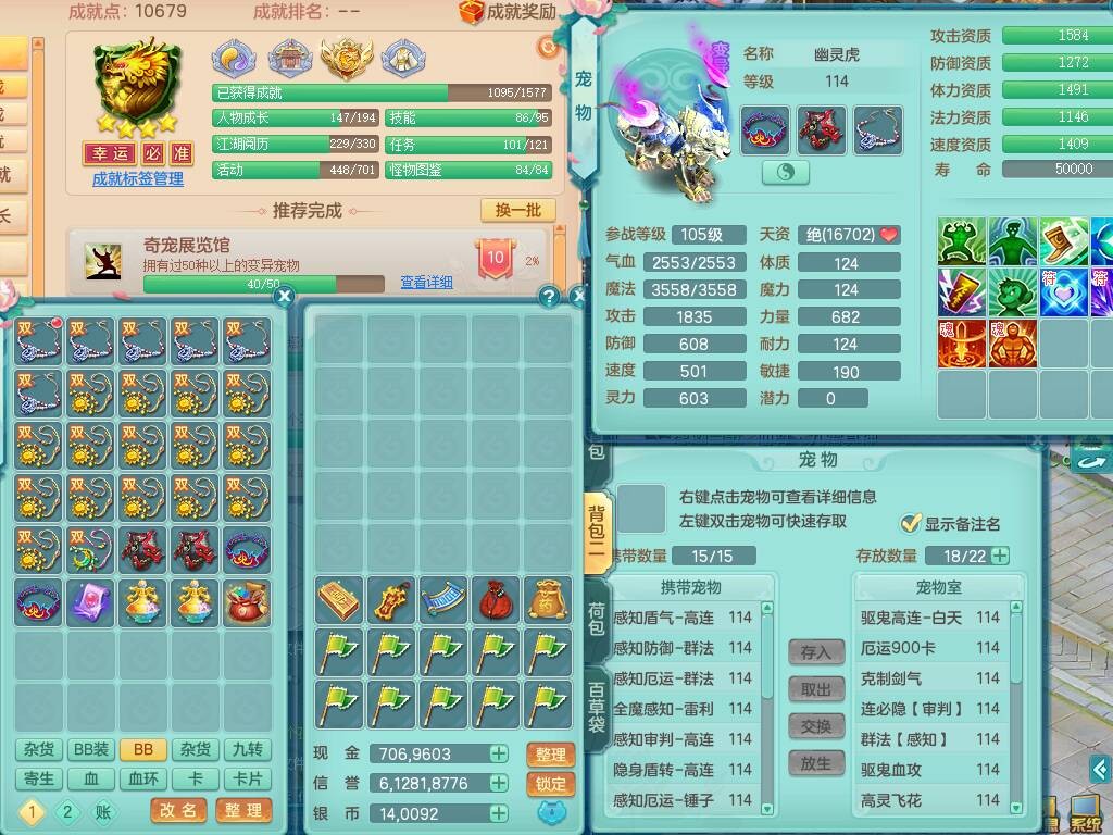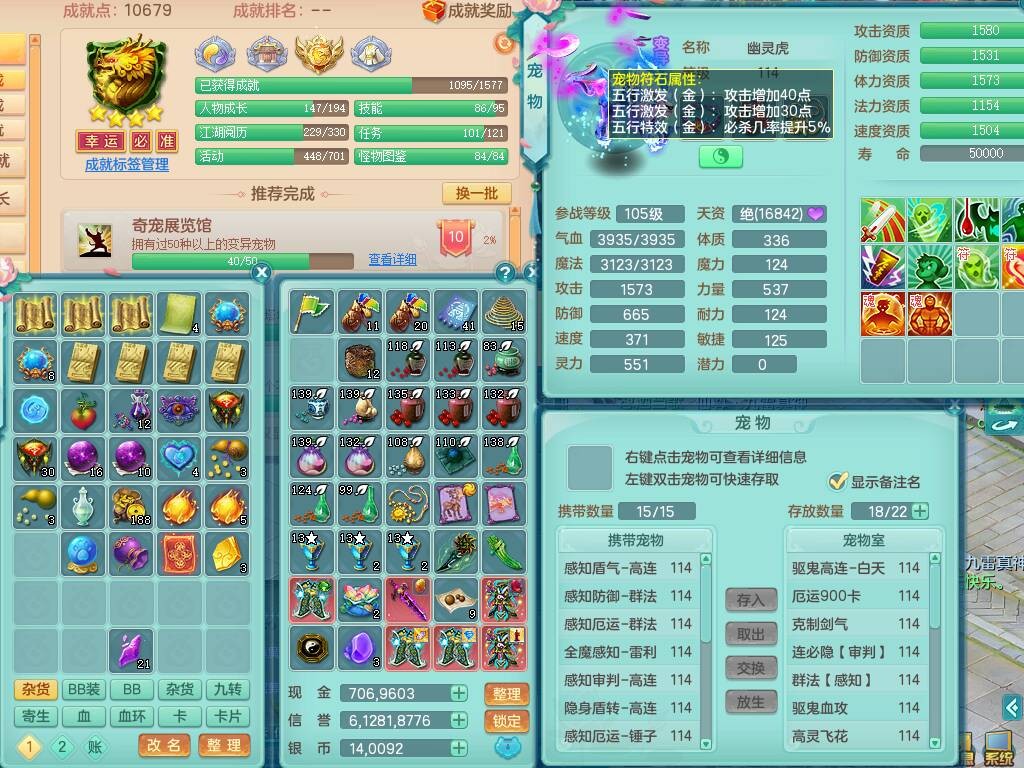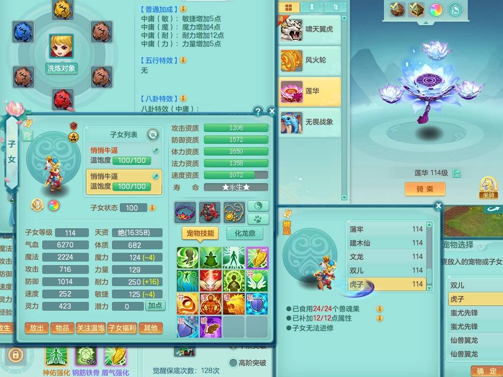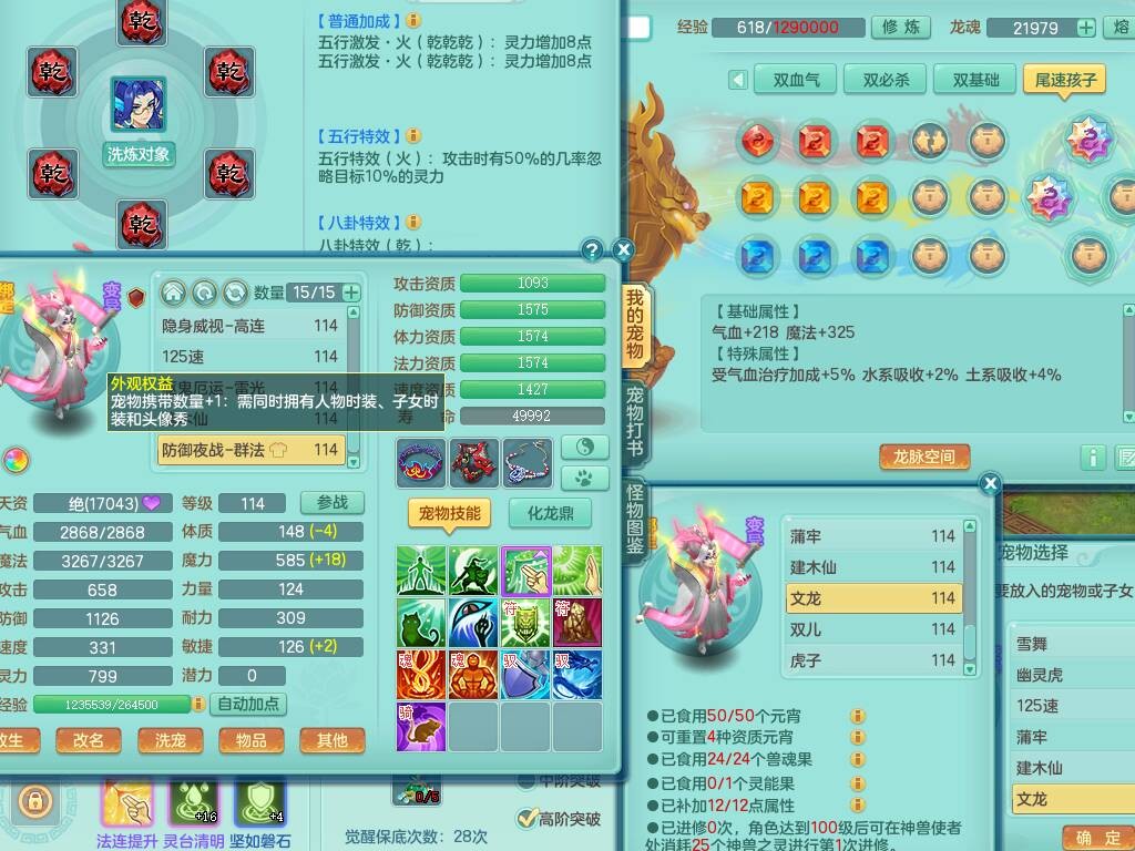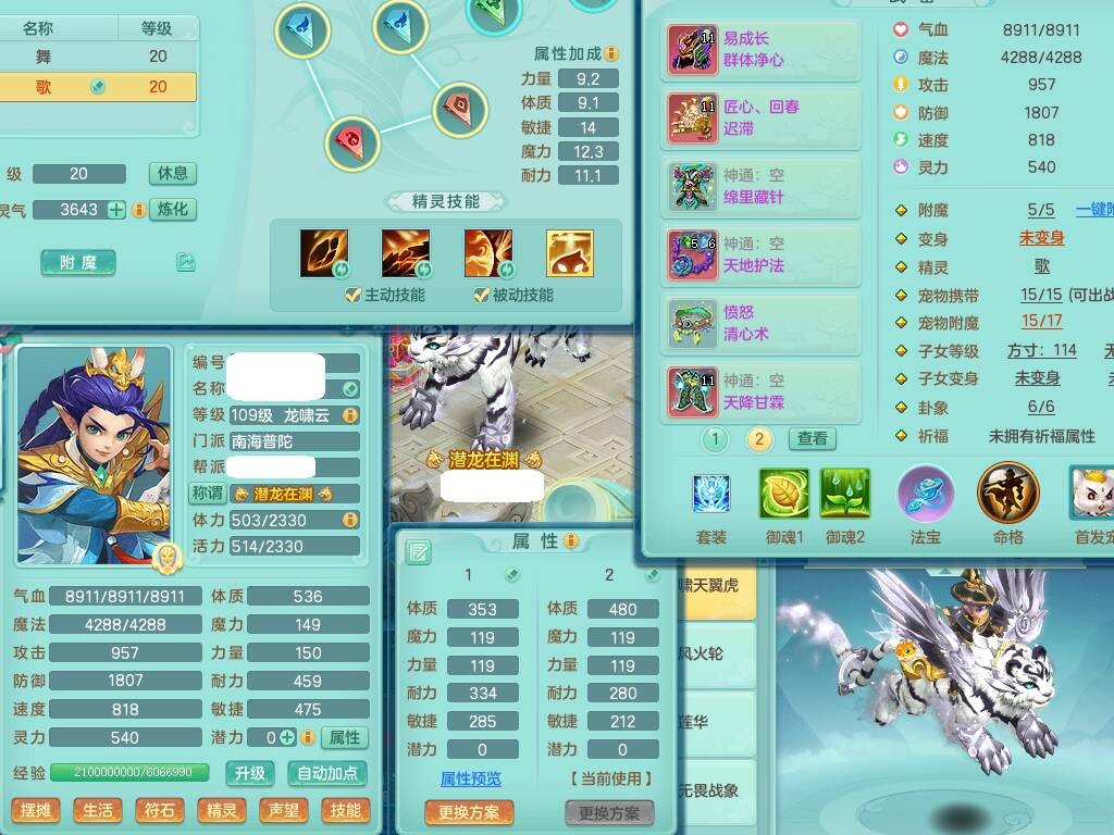 p20730龙腾九州109男普陀,精灵歌+舞,6龙2龙皮,3内胆神,4破镜,【12只觉醒,已潜龙】,10红辅助,回春愤怒六特,3.0基础鼎+42攻+168血,13个纯六字,17只+满果子,宠排在榜,永久称谓,4个孩子,双人坐骑,带38天月卡。