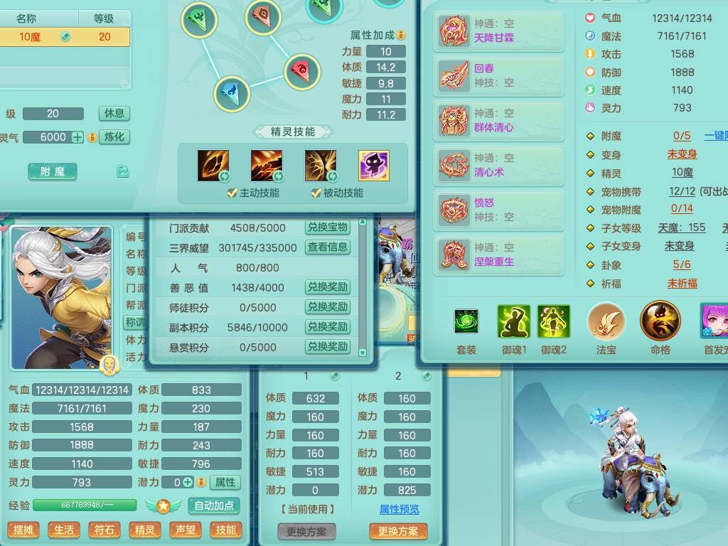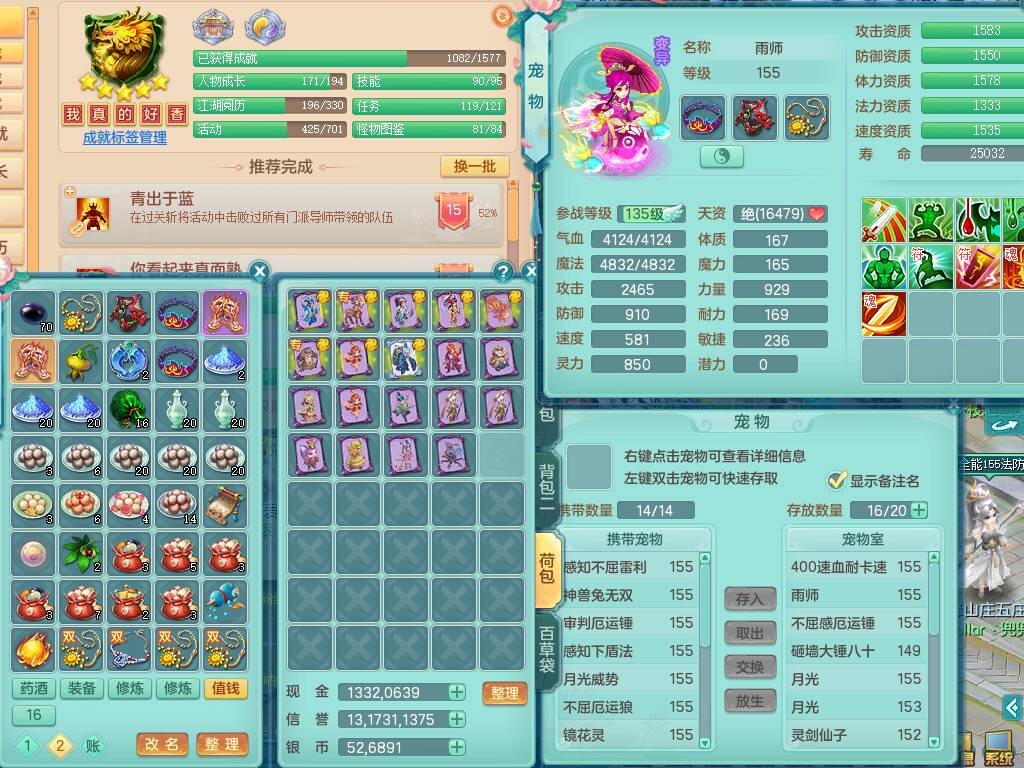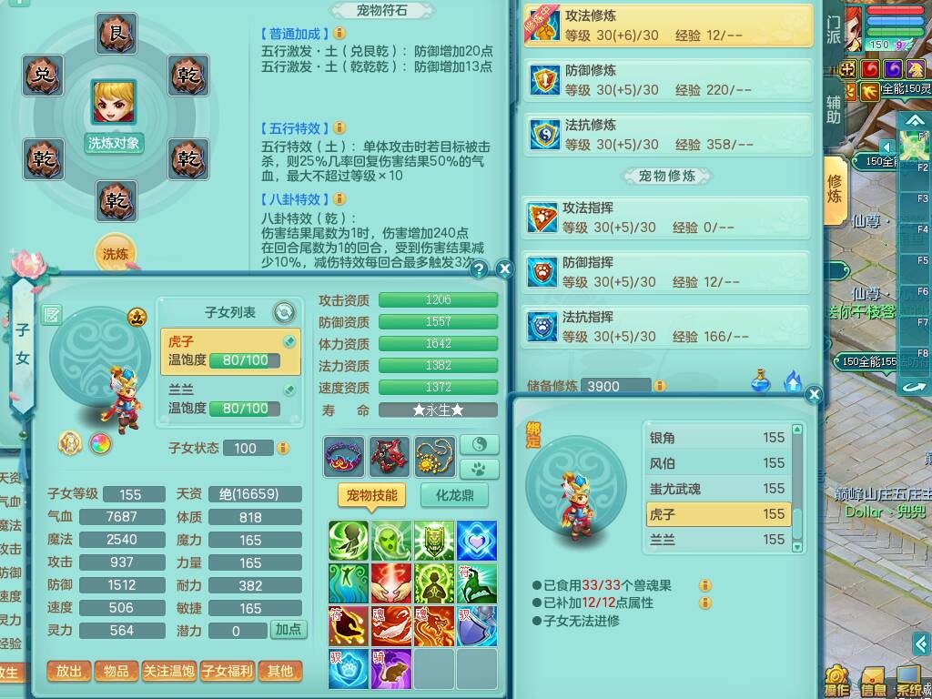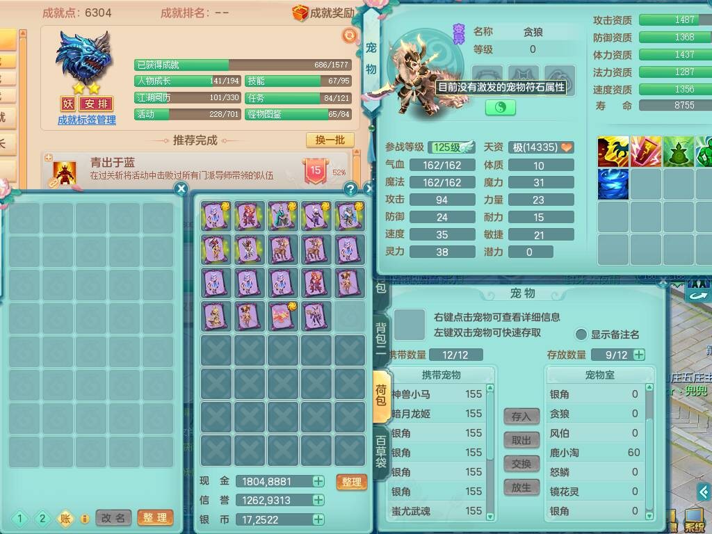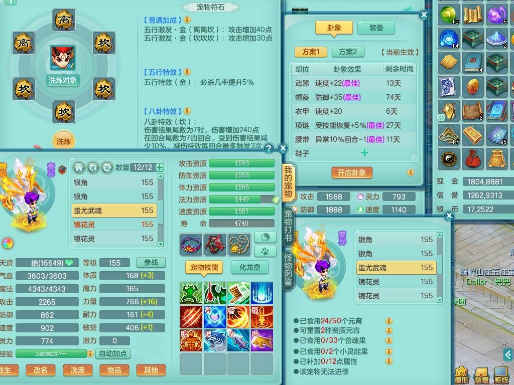 S20735江山如画四开号,159男方寸,精灵舞,1龙2内胆神,2只觉醒,2宠皮,2特殊(月光,守护),1只六技能镜花灵,愤怒5特,5.5基础鼎,2个纯六字,3个五字,8只满果子,成就在榜,双人坐骑。➕159男无量,精灵舞,2特殊(舍身,焚心),2只六技能镜花灵,回春武器,5.0基础鼎。➕159女天策,精灵舞,1只觉醒,1特殊(荒古),4.5基础鼎。➕159男万兽,精灵歌,1只觉醒,1只六技能镜花灵,5.5基础鼎。