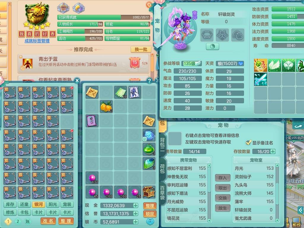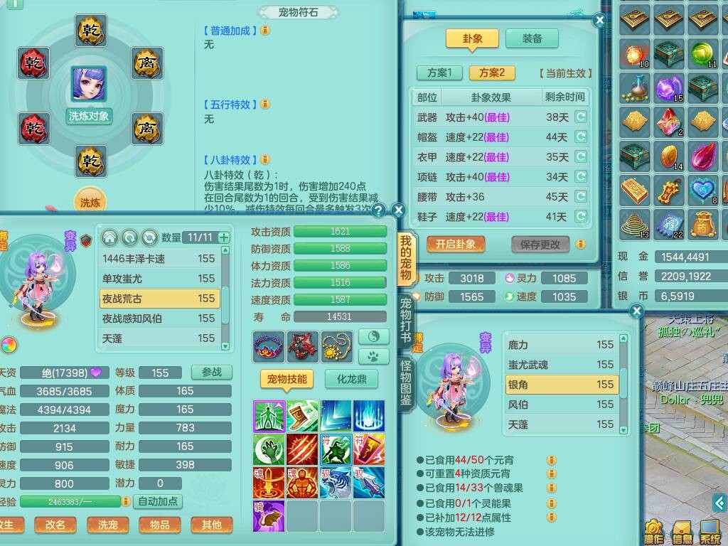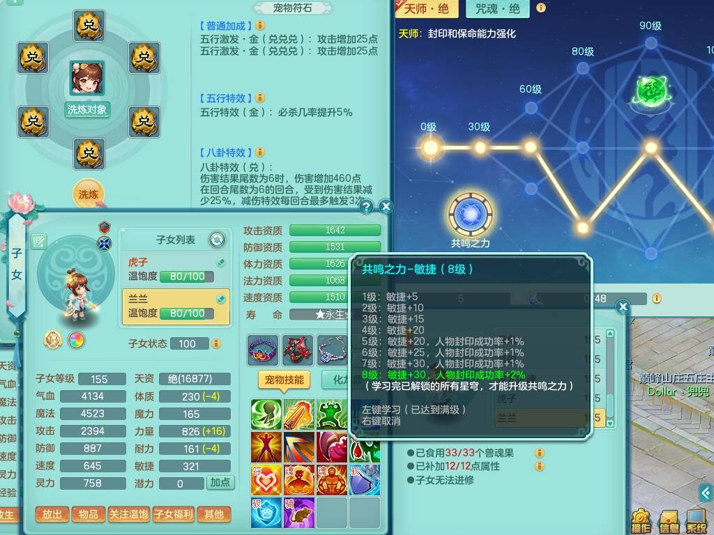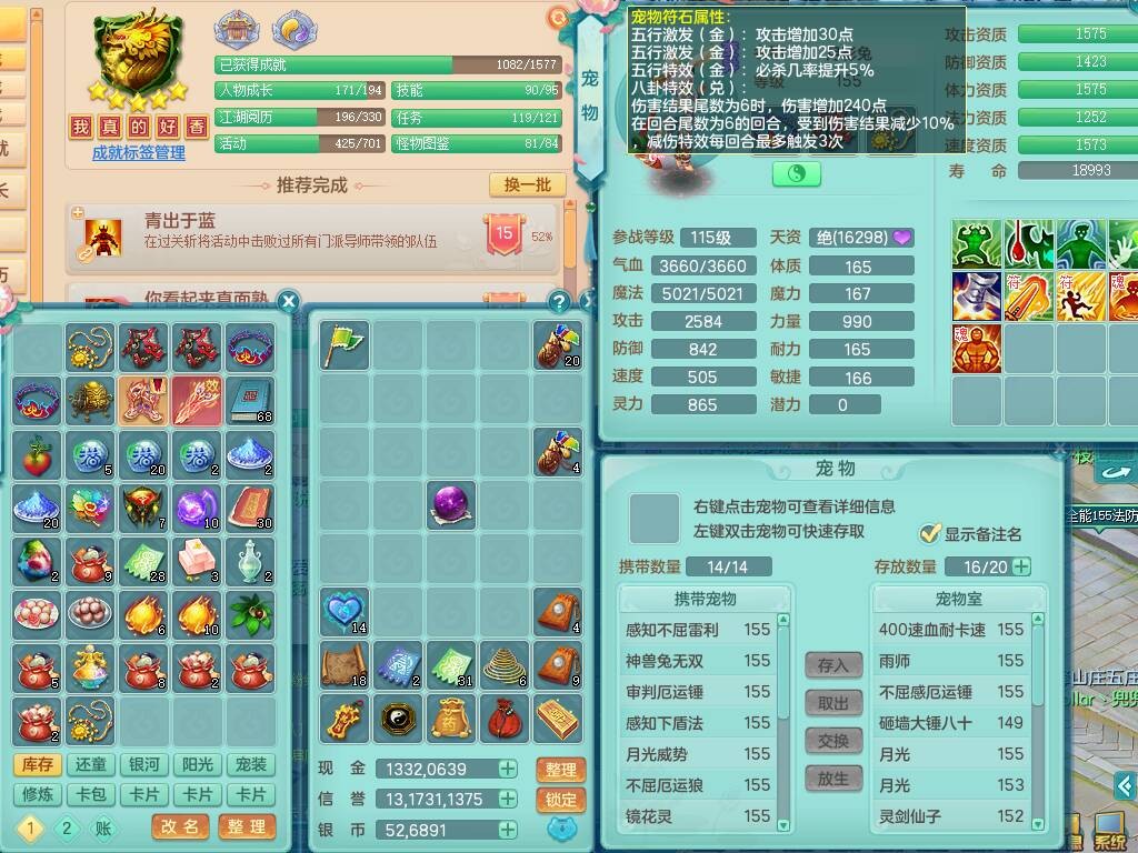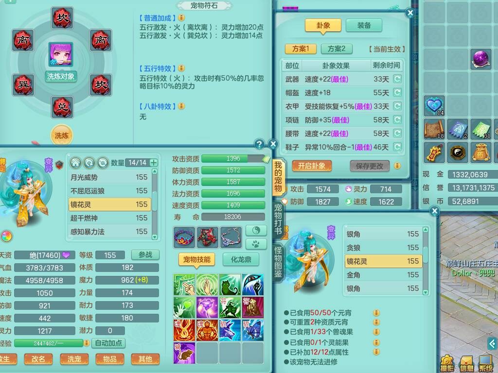 S20735江山如画四开号,159男方寸,精灵舞,1龙2内胆神,2只觉醒,2宠皮,2特殊(月光,守护),1只六技能镜花灵,愤怒5特,5.5基础鼎,2个纯六字,3个五字,8只满果子,成就在榜,双人坐骑。➕159男无量,精灵舞,2特殊(舍身,焚心),2只六技能镜花灵,回春武器,5.0基础鼎。➕159女天策,精灵舞,1只觉醒,1特殊(荒古),4.5基础鼎。➕159男万兽,精灵歌,1只觉醒,1只六技能镜花灵,5.5基础鼎。