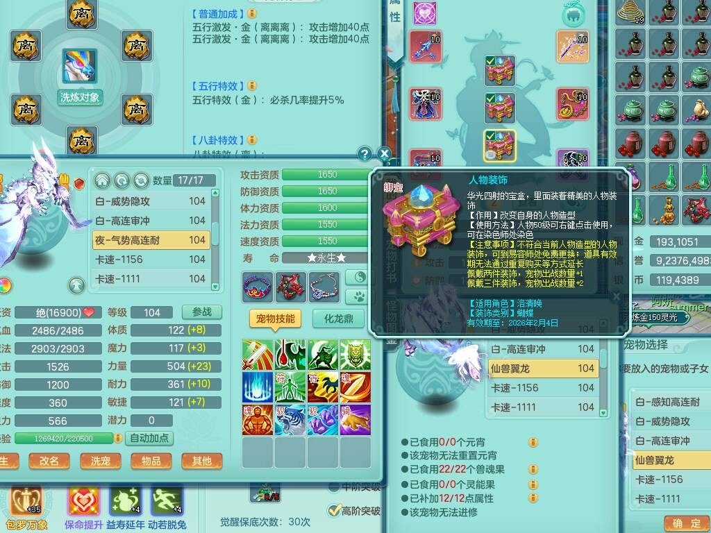 C20722龙腾九州99女魔王,13龙(1龙没内),2内胆神,1破镜,【10只觉醒,已潜龙】,4位靓号,爆炸装备,易成长烽火单加34衣服,160易成长单加31项链,双红愤怒慈航单加34腰带,法缭鞋子,五雷连珠单加34鞋子,551狂暴单加武器,163易成长清心术单加链子,仓库超多装备,各系可玩,2.5基础鼎,15个格子,16个纯六字,22只满果子,宠排在榜,3个坐骑。