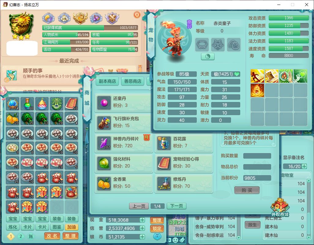 ym9302扬名立万【潜龙在渊】99男普陀【潜龙号+心想事成+火焰之力+暴龙泰坦+西瓜冰】体敏精灵,力敏精灵,全魔精灵,4龙(2破境)4内(1青蛇1龙马1破境)4舍身4翻浆1童子1建木1炉子1雷光5宠皮,9觉醒23只满果子,9红装备,单加群体守护帽子,单加回春笑里武器,单加止戈衣服,单加Y四海项链,愤怒水清腰带,单加罗汉鞋子,Y玉清鞋子,鼎2.5+42+168,3套符石,2史诗3传说6精良法宝,145天月卡,永久外观饰物、精灵皮肤,27197金币,3双人坐骑(2飞行)
