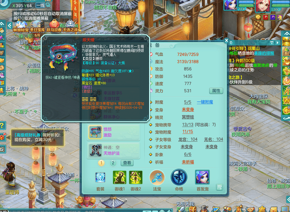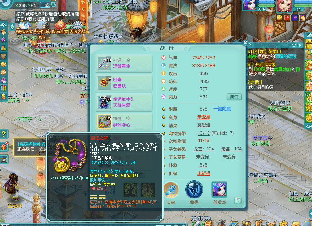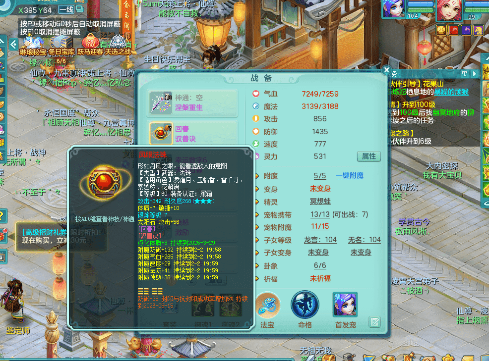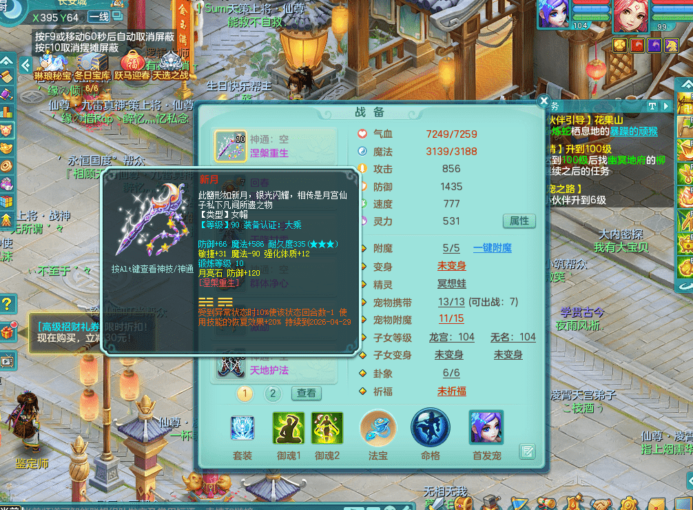 tx9308 天下无双 99女佛门 有大宝剑皮肤 7觉醒 4六字 13满果子 宠物齐全 上手可PK