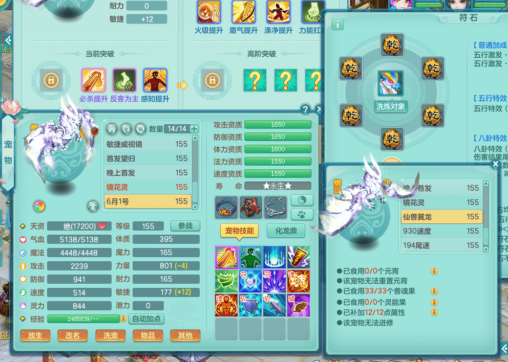 jt9311九天揽月 159女龙宫 法系装备毕业 5.0化龙鼎 精灵歌 四字靓号不带4 7内龙 7六字 3内神 5觉醒 多个永久外观 多个完美染色坐骑 细节多多