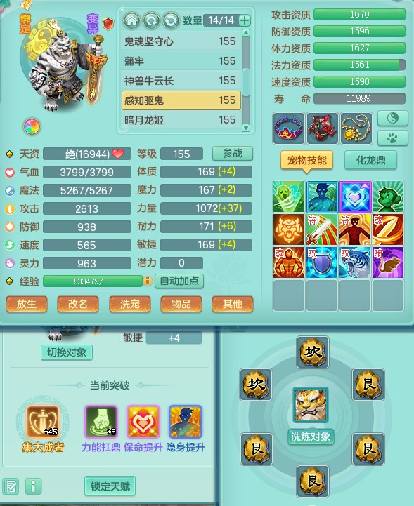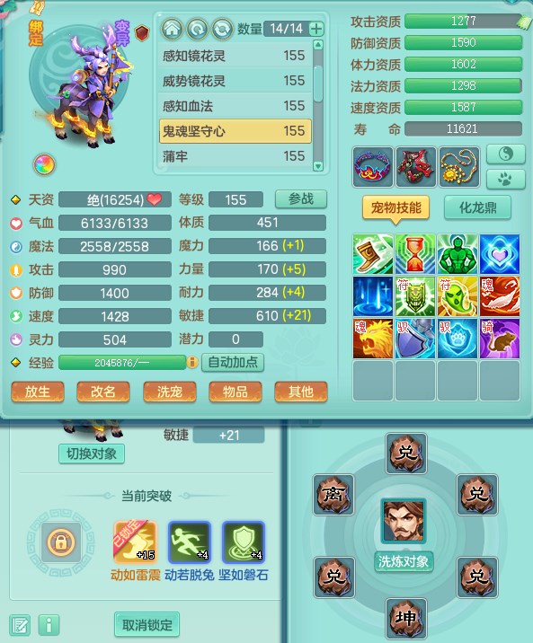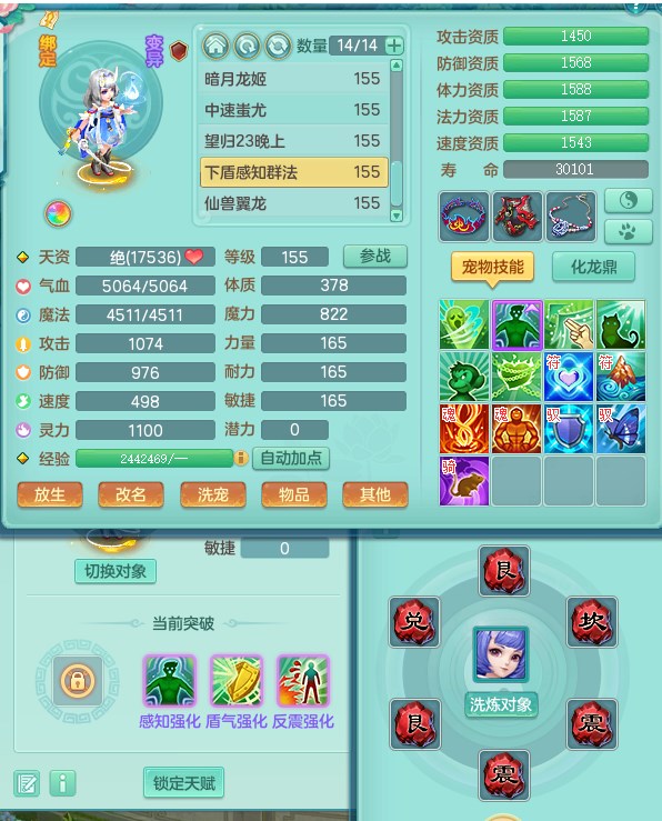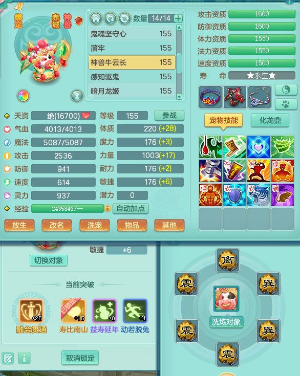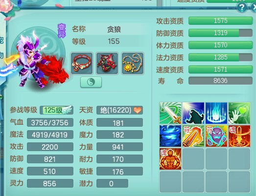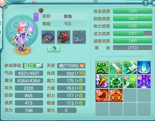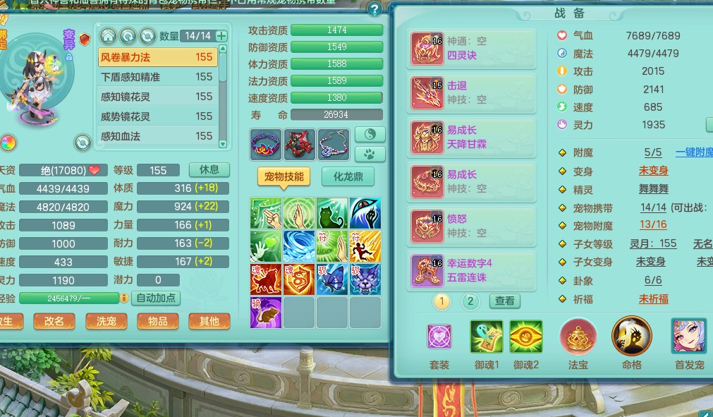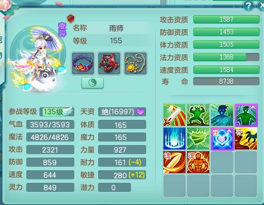tx9315天下无双159魔天宫 8觉醒 顶级法系项链 顶级法系衣服 易成长匠心鞋子 化龙鼎5.5+70+280+10% 3特殊【风卷/荒古/诅咒】 1龙无内 1内丹神 2个史诗法宝 2个坐骑 1935灵 2141防 差个法撩鞋子 封神装!