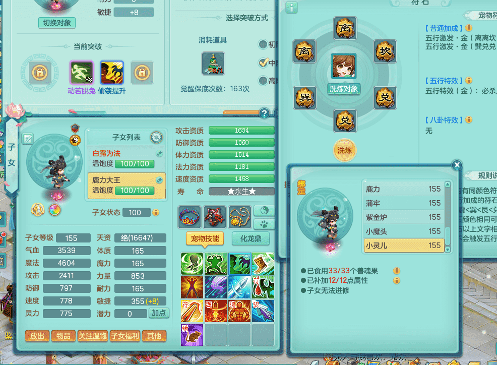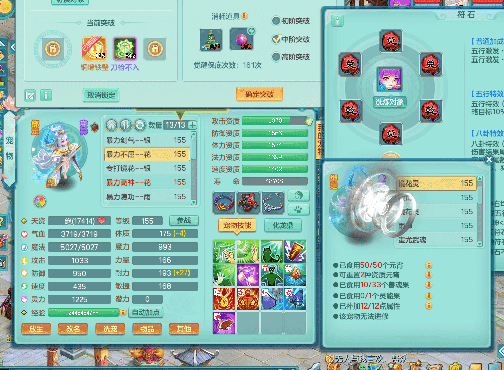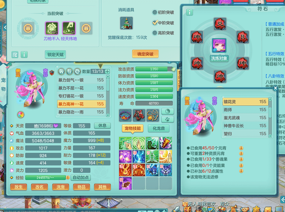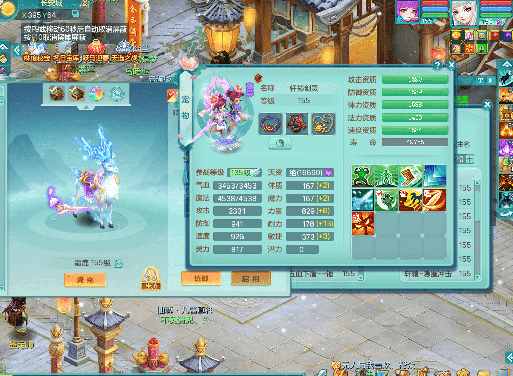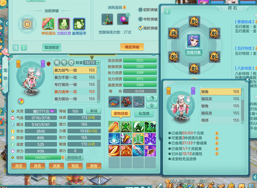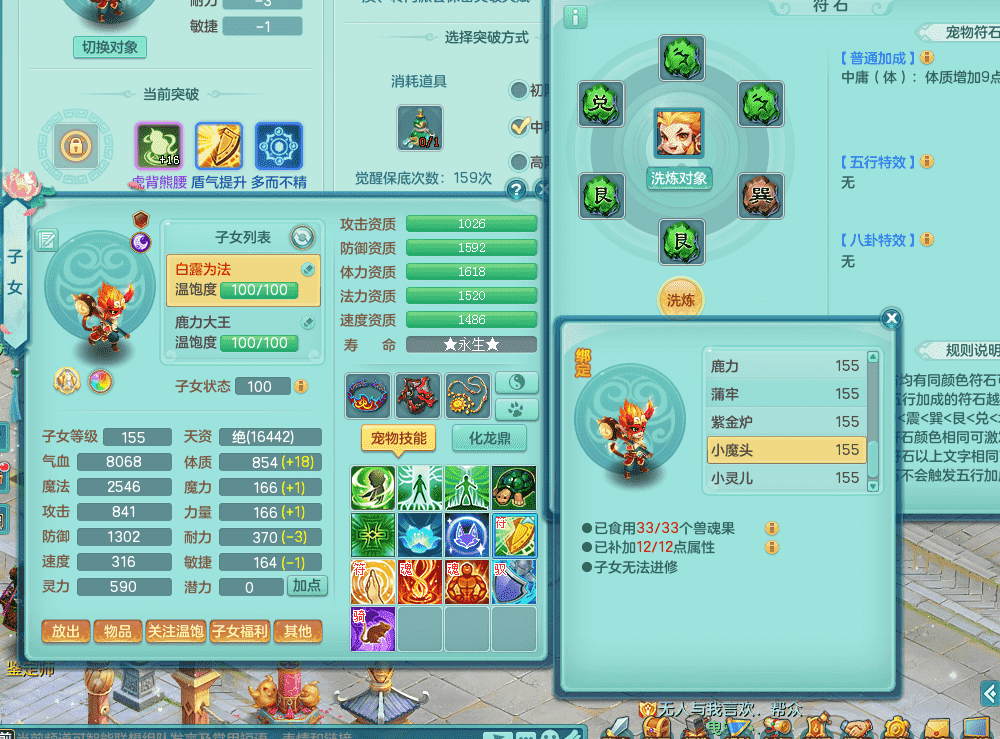 jt9324九天揽月 159女魔王 精灵歌 染色狮子坐骑 染色精灵皮肤 1内神锤子牛 化龙鼎5.5基础+64攻 特殊月光银角 2六技能镜花 宠物齐全 海洋豪宅 151美观庭院