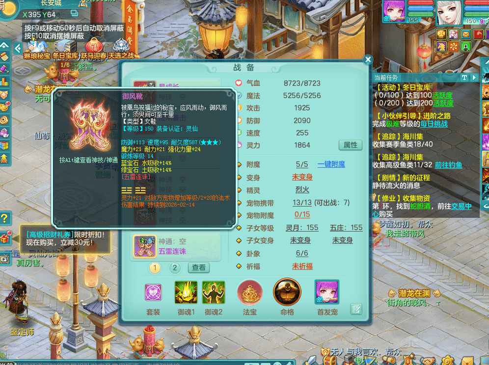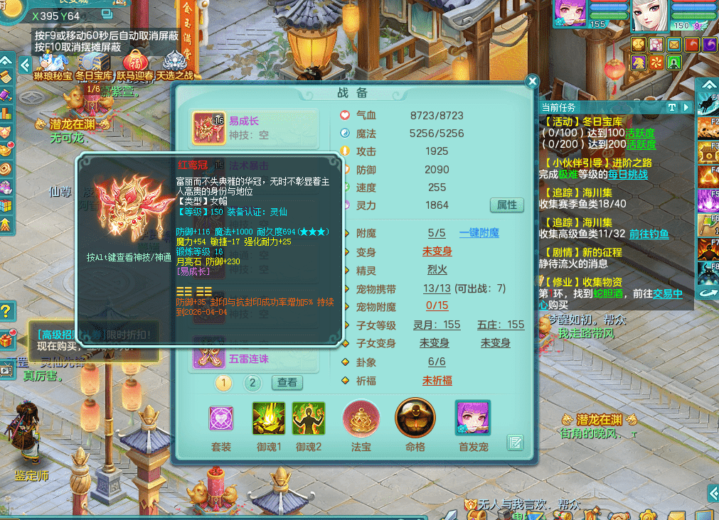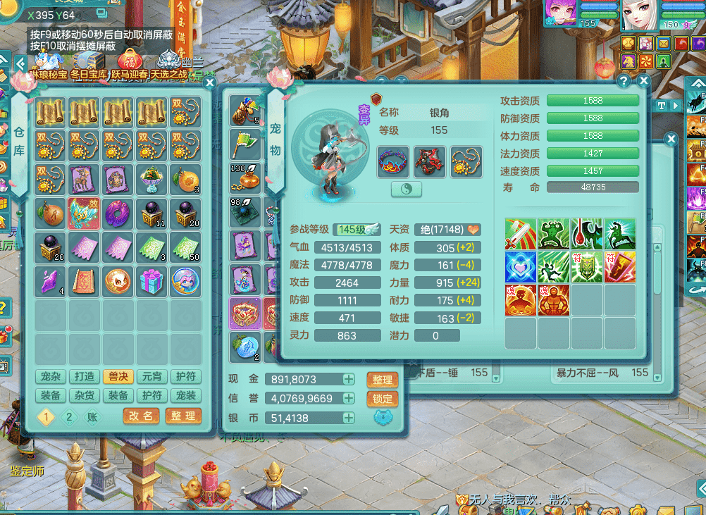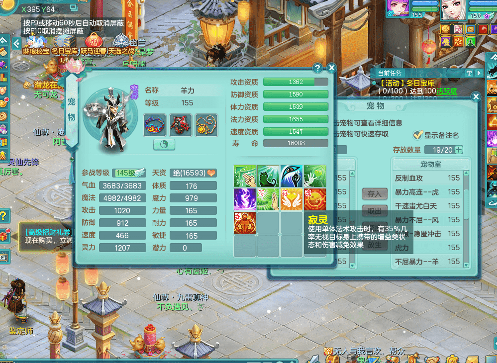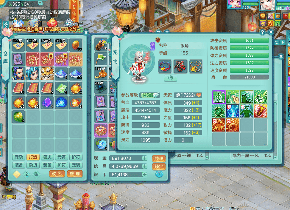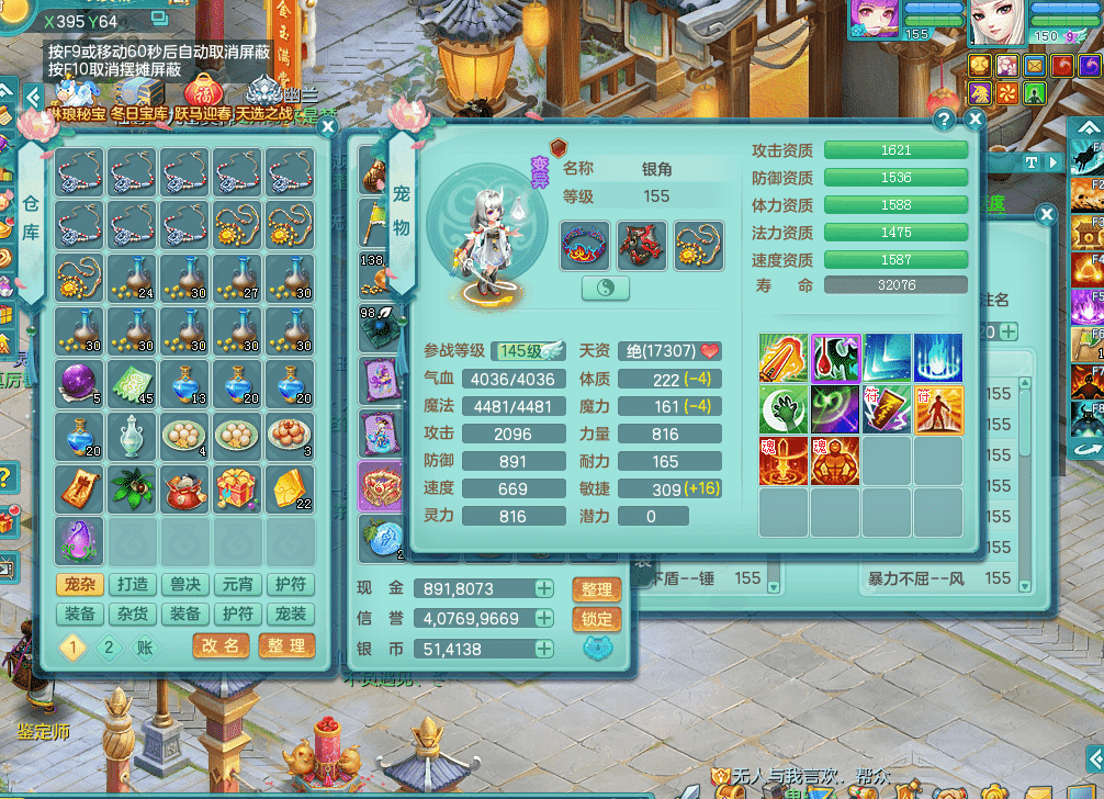 jt9324九天揽月 159女魔王 精灵歌 染色狮子坐骑 染色精灵皮肤 1内神锤子牛 化龙鼎5.5基础+64攻 特殊月光银角 2六技能镜花 宠物齐全 海洋豪宅 151美观庭院