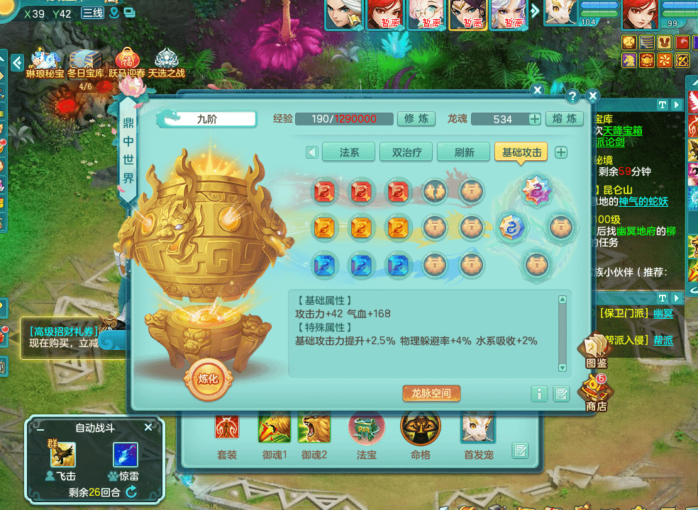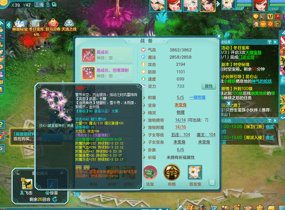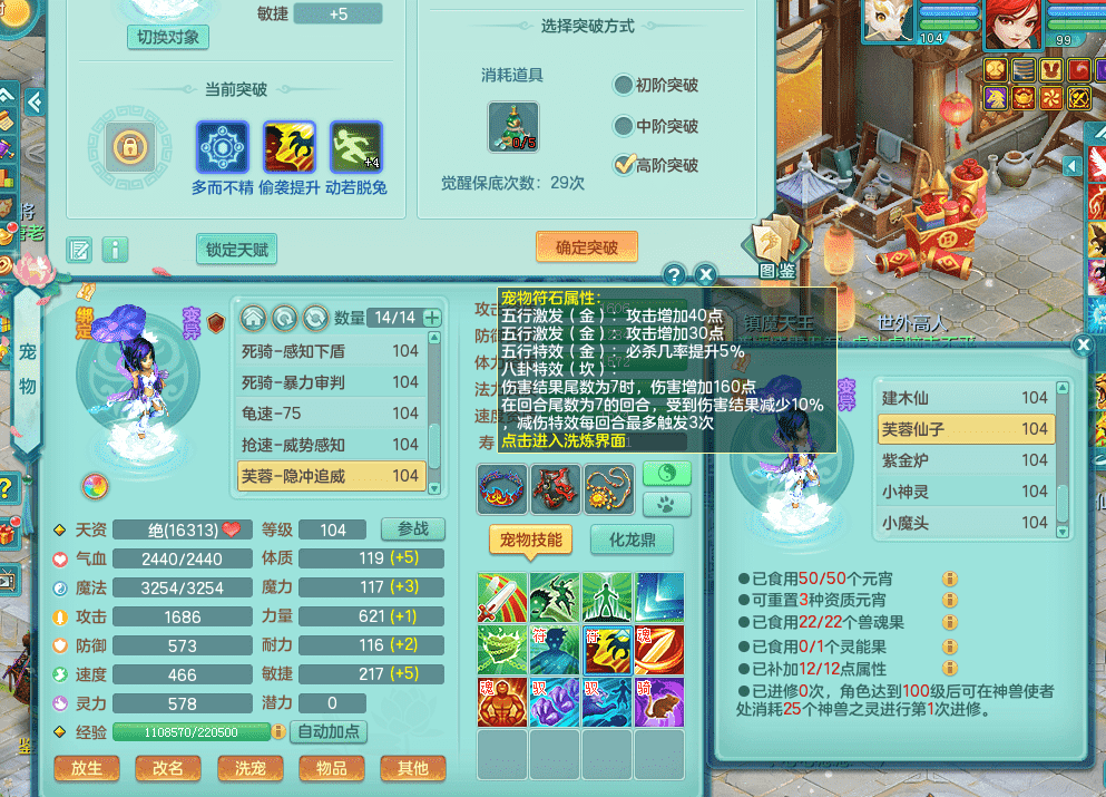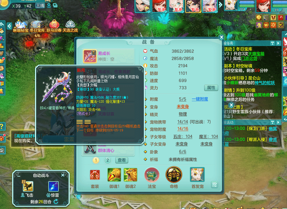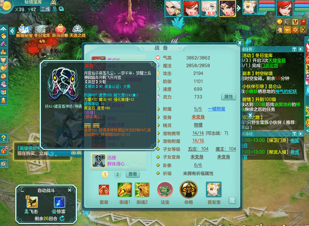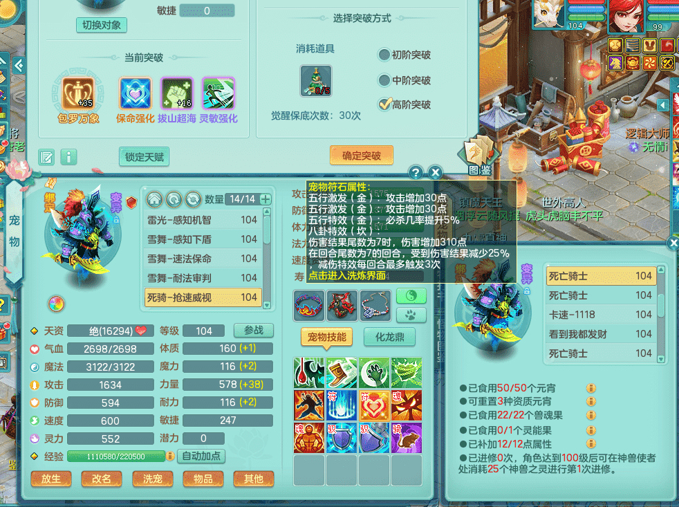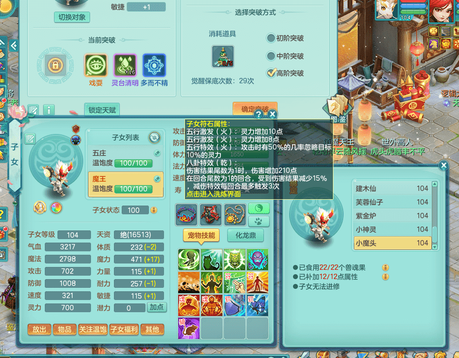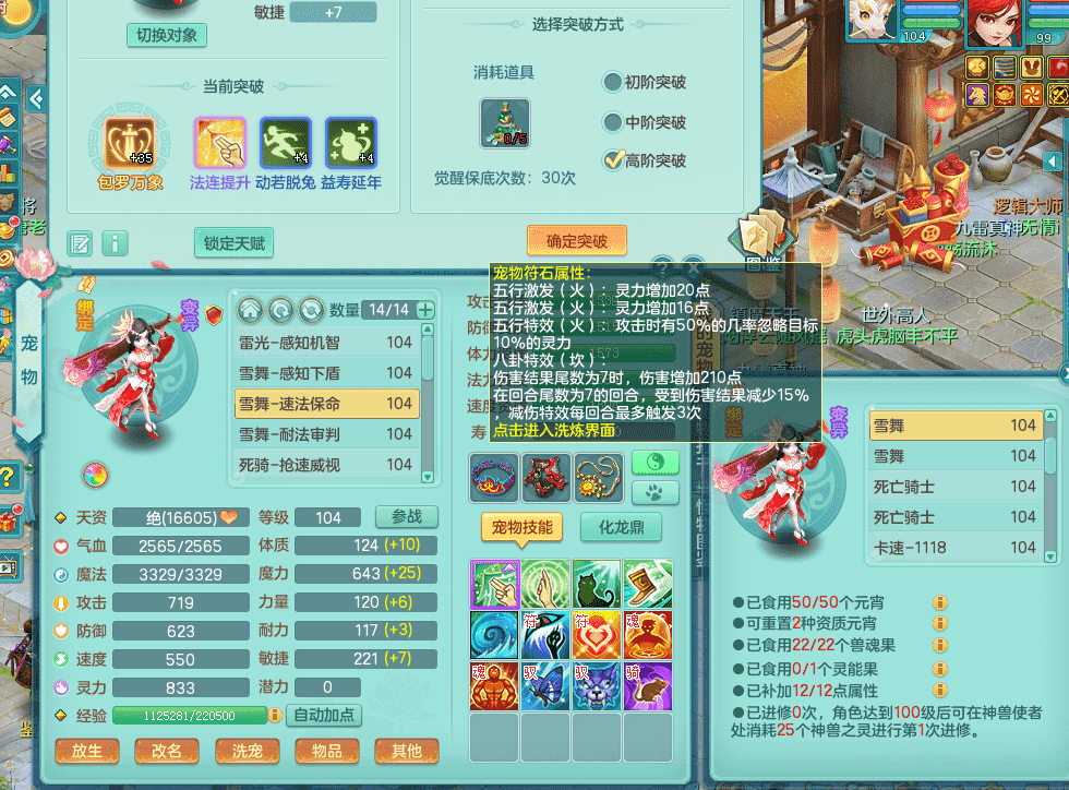 tx9326天下无双 99女万兽,双飞坐骑,2.5基础+42攻击化龙鼎 天上人间庭院,1龙无内,1内神(龙马),8觉醒5真6字13+满果子,三精灵(物,法,辅)有配套装备 可玩三系
