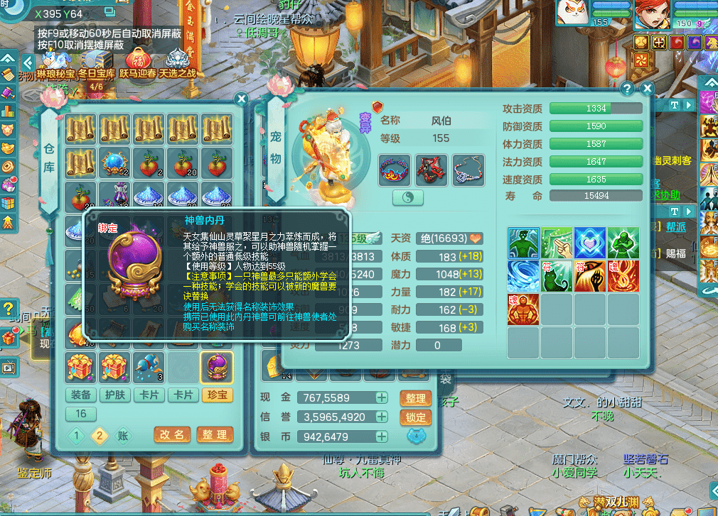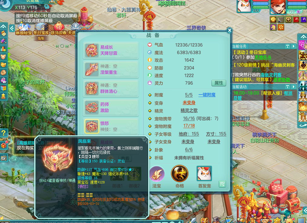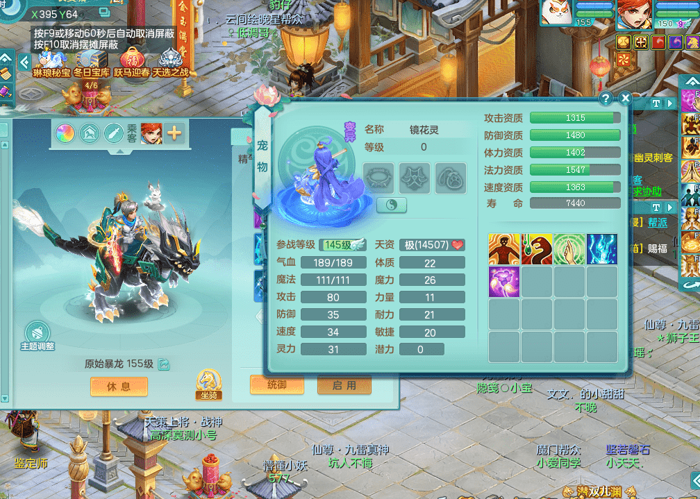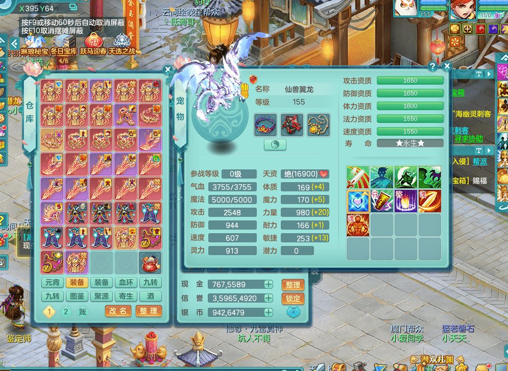 fh9333风华绝代【潜龙在渊】159男佛门 四字靓号不带4 多双红辅助装毕业 恐龙坐骑 精灵舞 5.5基础化龙鼎 千万神武币 7觉醒 10六字 26+满果子 8内龙 3内神 4镜花 多宠皮 仓库还有神内丹 多只完美染色坐骑 粉色豪宅