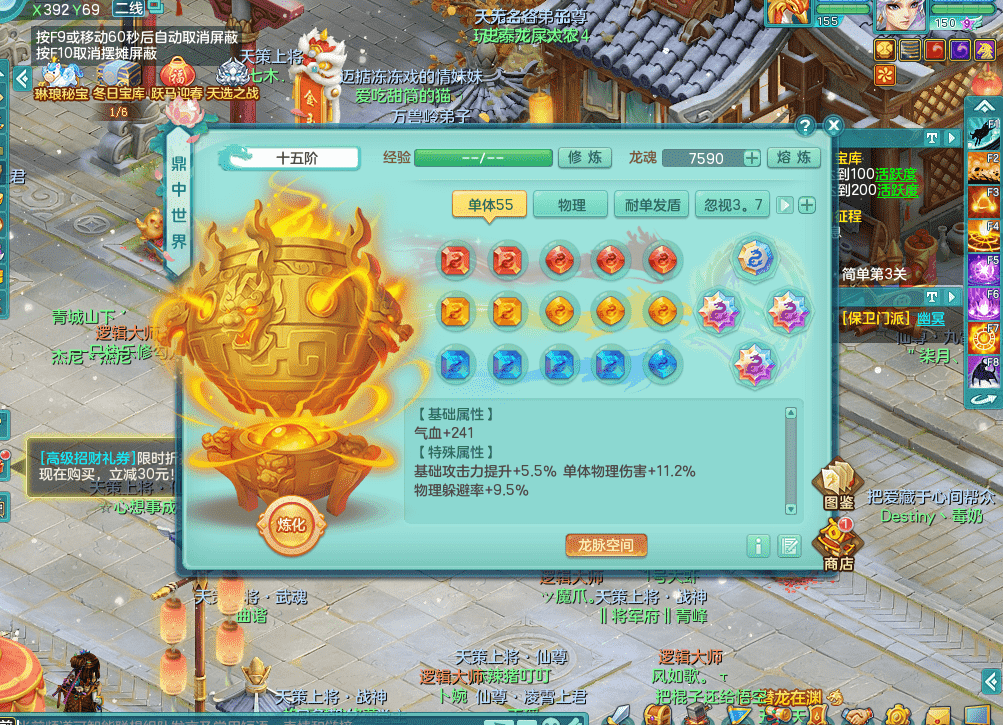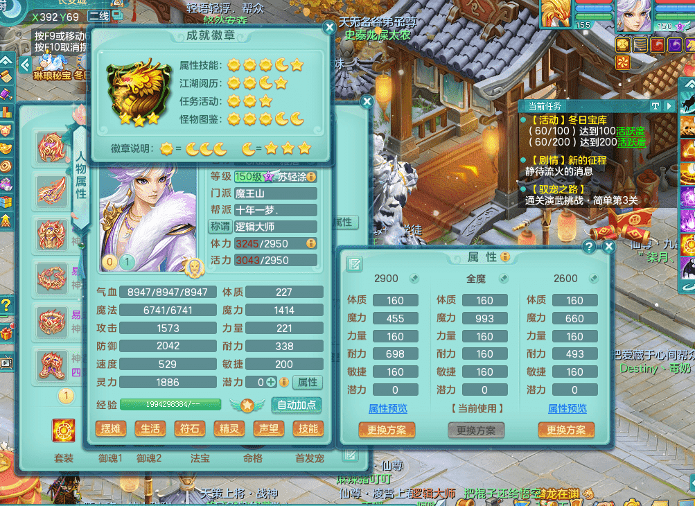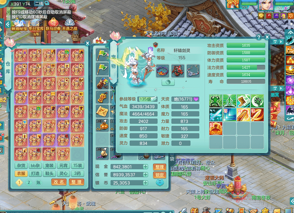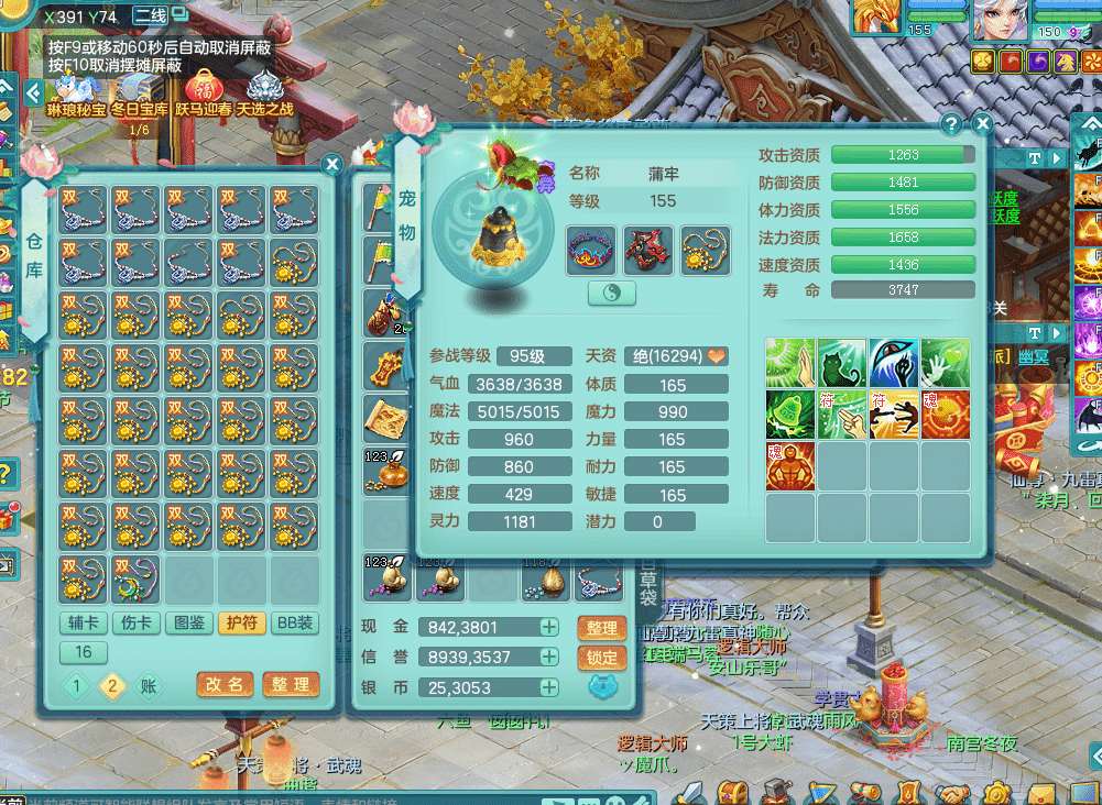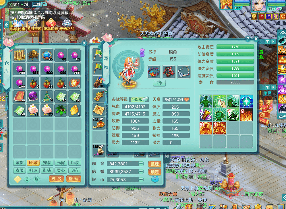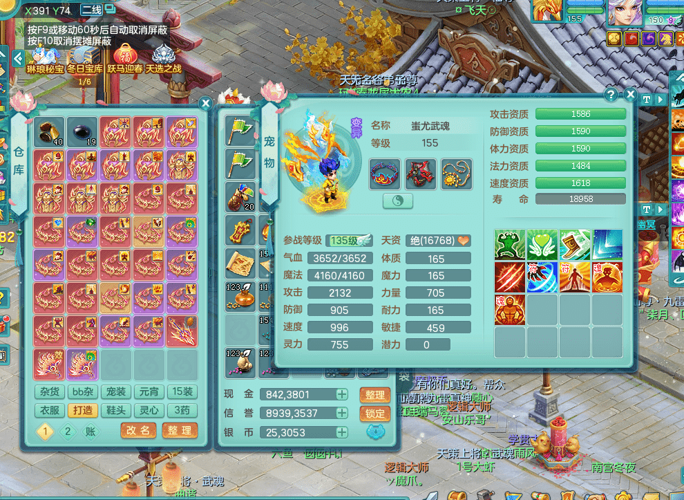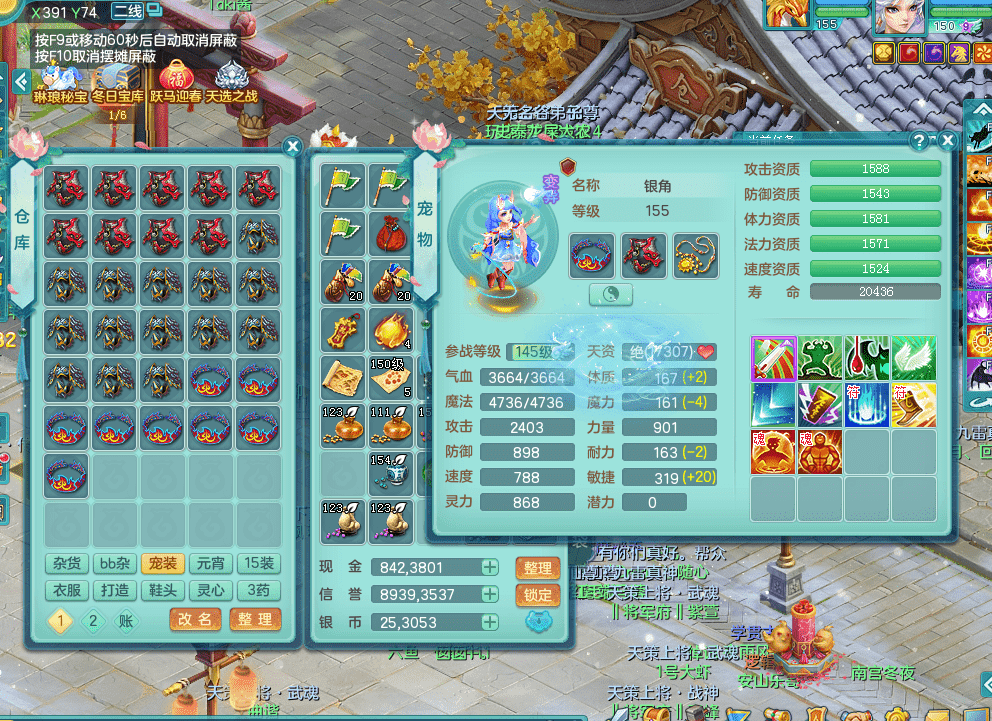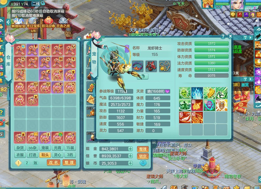 tx9338天下无双 159男魔王 1内神龙马 染色皮肤精灵舞 5.5基础化龙鼎 4觉醒 1六字 10个左右满果子 3只成品六技能镜花 1龙姬 3套属性 急速冷却四海头 一身单加易成长 宠物齐全 仓库多装备可切换 染色大老虎坐骑 海洋豪宅 1源生羊