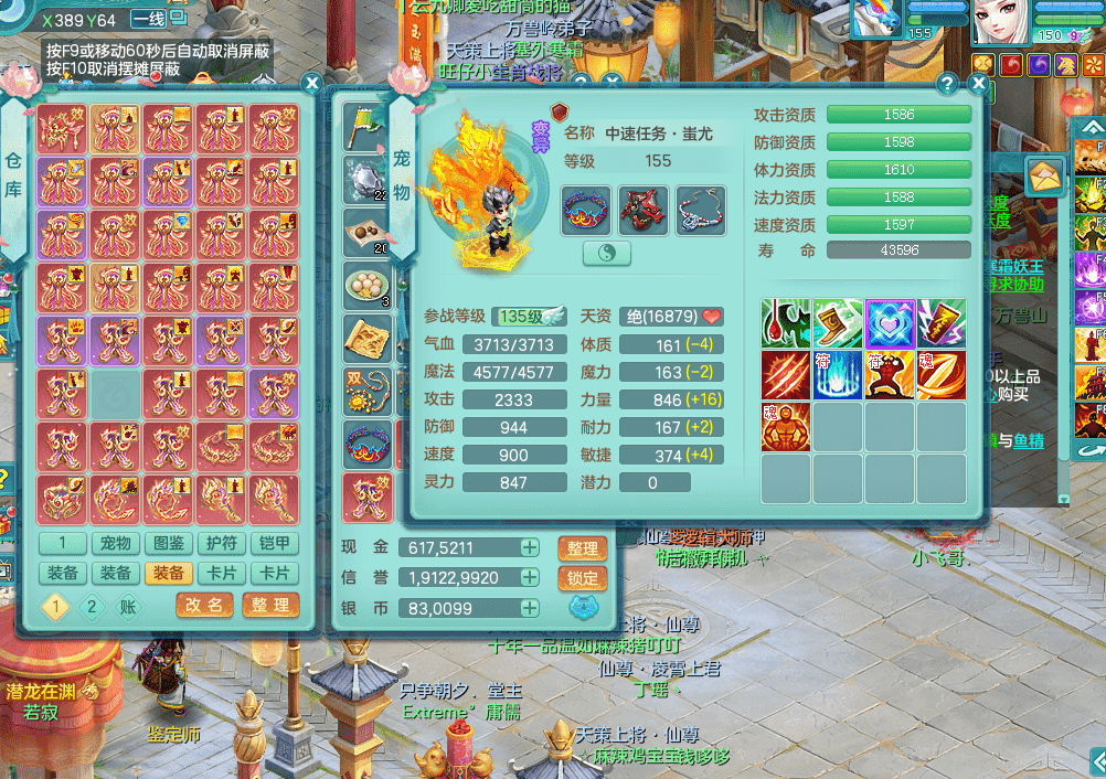 tx9340天下无双 159女魔王 双单加法术缭乱159魔王 可玩愤怒6特辅助。一龙无内。1内单神(已破镜) 5个6技能镜花灵。还可以通灵 2个红心5技能龙姬。4觉醒 2个6字。10➕满果子 149美观庭院 131海洋豪宅