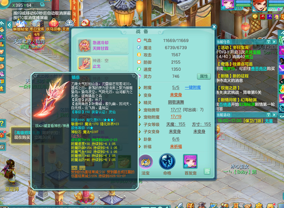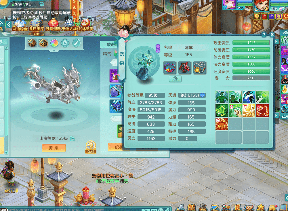 zs9343醉生梦死【潜龙在渊】159男方寸 四字靓号 急速冷却四海头 Y群体安神鞋子 机甲恐龙坐骑 西瓜冰武器 5.0化龙鼎+70攻击 3套人物属性 精灵舞 9觉醒 2内神有龙马 2内龙 5个成品镜花 20只左右满果子 多个宠皮 多只特殊宠物 多只完美染色坐骑 152房屋 166冰晶庭院!!!