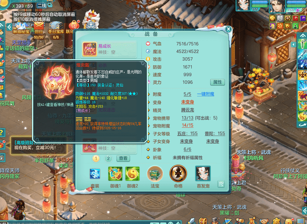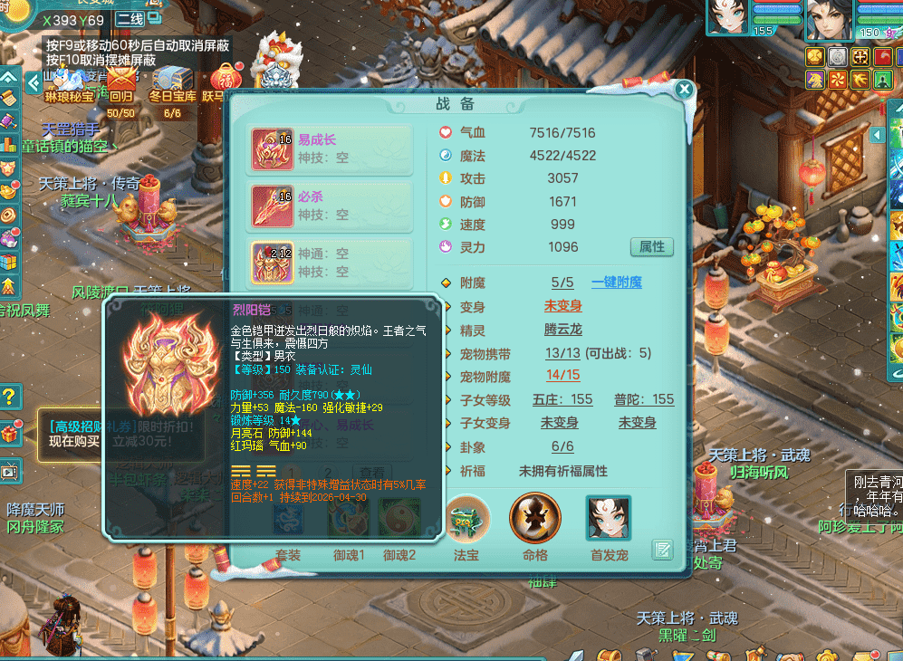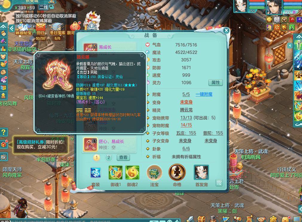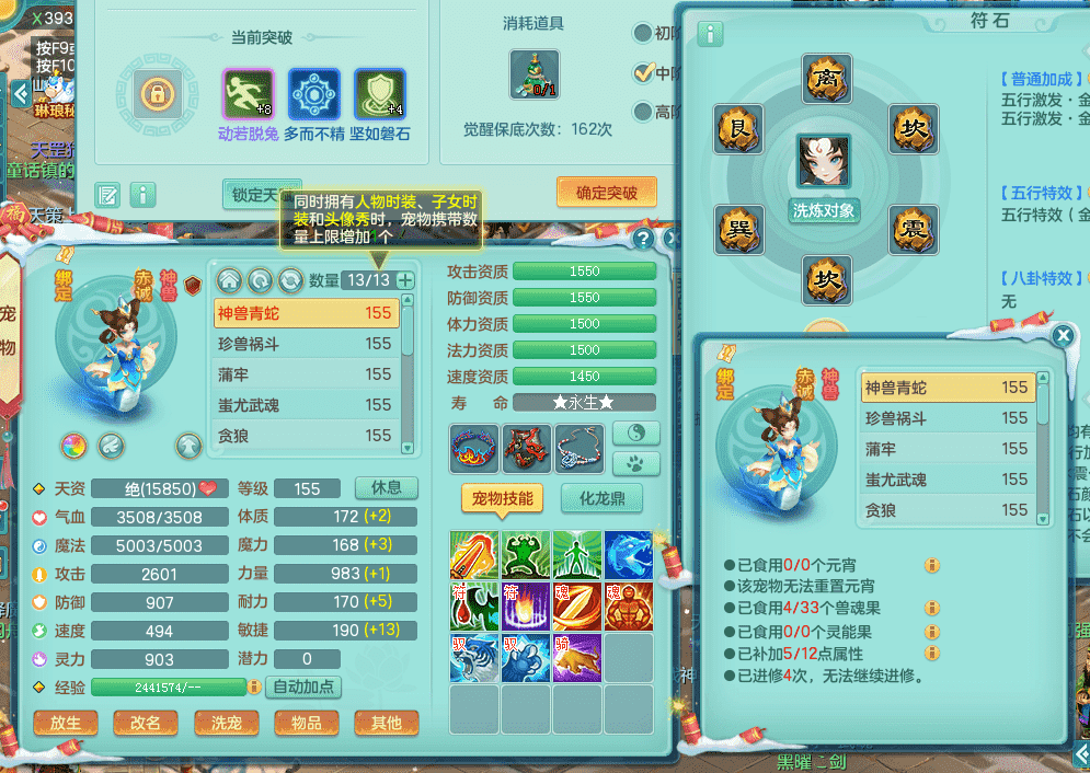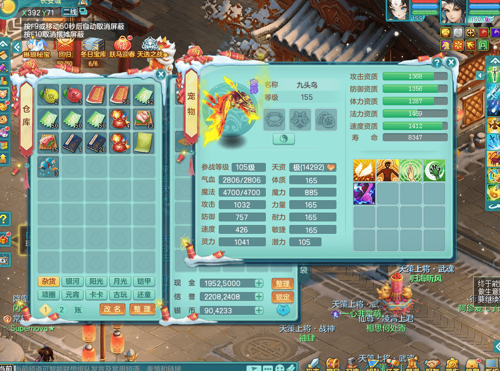 tx9386天下无双 159男五庄 精灵舞 3.5化龙鼎 匠心易成长鞋子 一身接近满段装备 宠物好几个 经验号!!!