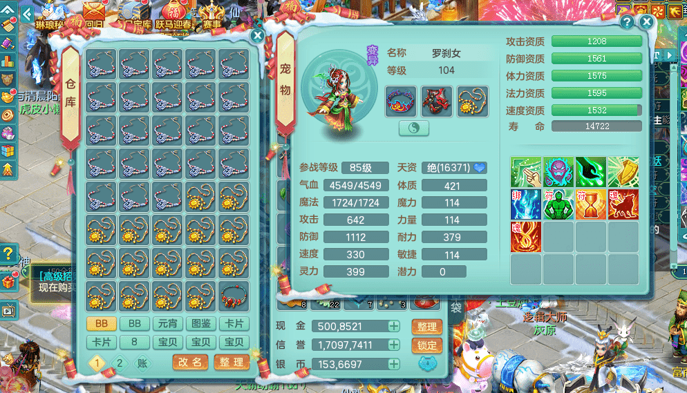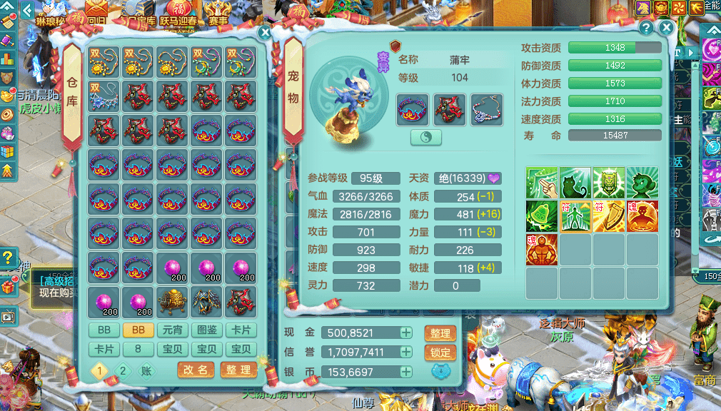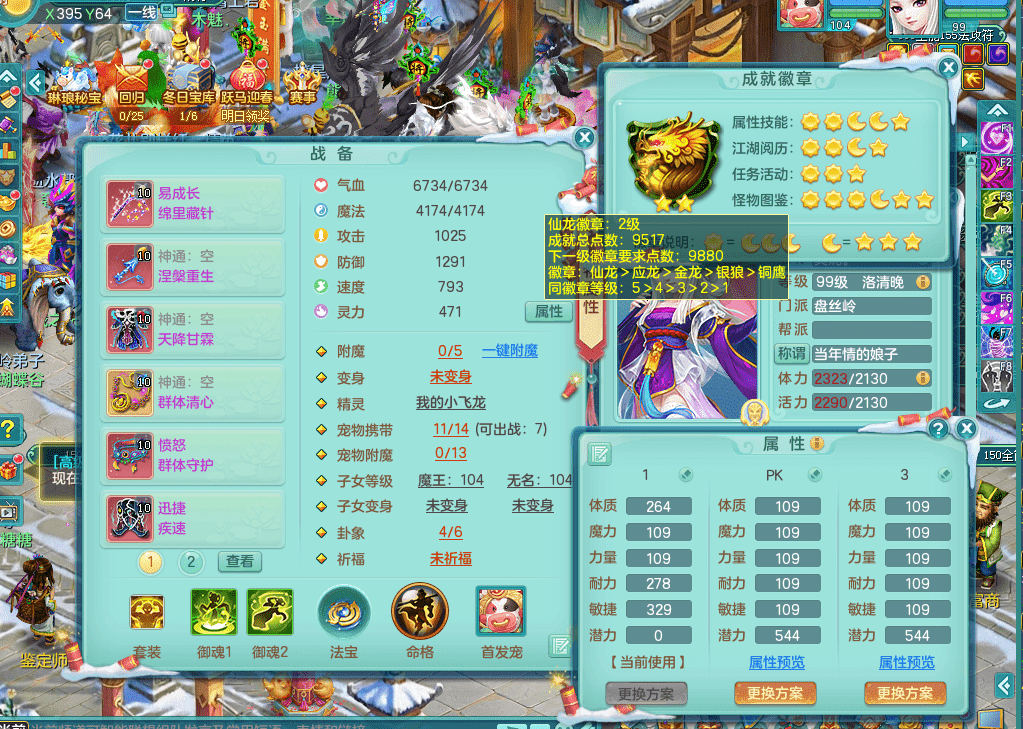 tx9394天下无双 99女盘丝 带3个150奶粉 1龙无内 1神无内 2.5化龙鼎 皮肤精灵 易成长笑里头 愤怒群体守护腰带 迅捷疾速鞋子 多个有效双红装备 宠物齐全 机械豪宅 163美观庭院