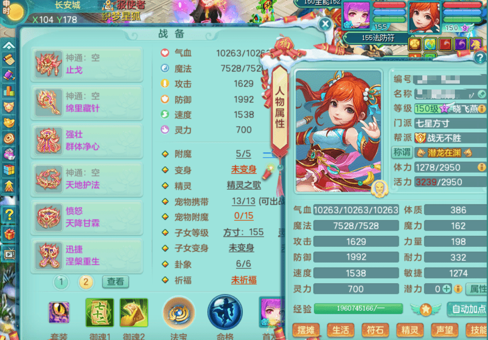 zw9429战无不胜【潜龙在渊】物理封辅双系潜龙1内神7觉醒7个6字 3特殊月光 破碎之锤 登云 13个满果子,5.5鼎,愤怒6特愤怒四海腰带,迅捷慈航鞋子,强壮晶清衣服,满攻易武器,高单加破甲头,愤怒破血腰带,神佑崩山项链,仓库71仙兽翼龙碎片,带76天月卡