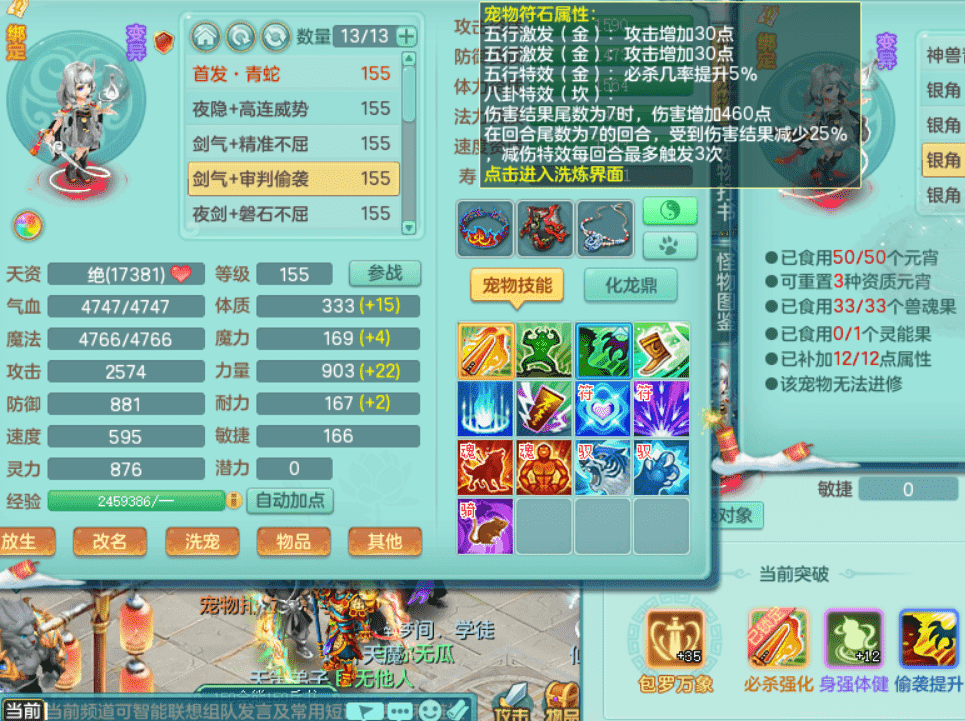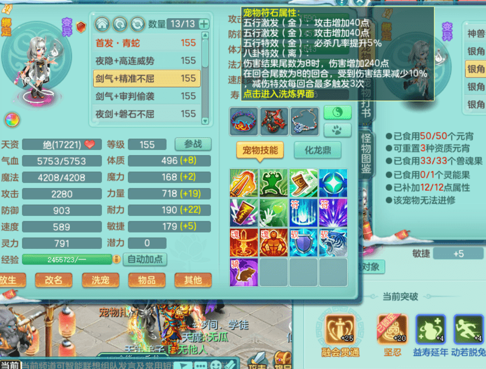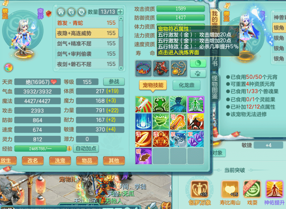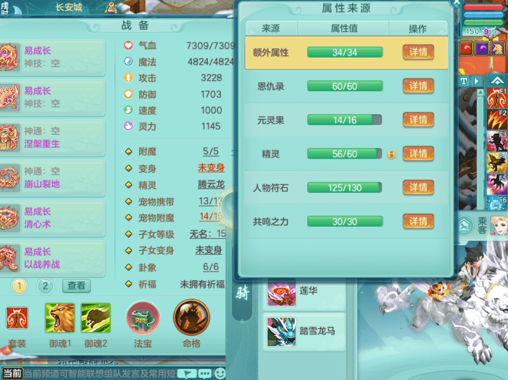 tx9442 天下无双159男万兽,1内丹青蛇,3镜子2龙姬,8觉醒,3真6字,7个满果子,黑白老虎,海洋豪宅,5.5化龙鼎+70攻击+280气血,带32天月卡1924金币
