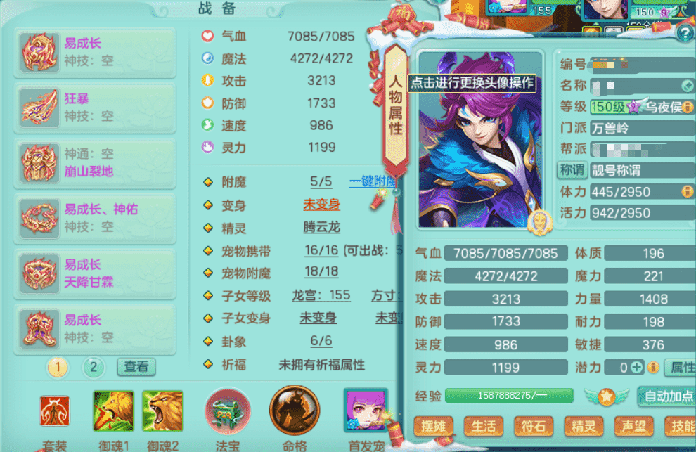 lt9453 龙腾九州 159男万兽 原始暴龙 4位靓号 3龙(1龙无内)2内丹神(仓库还有一个神兽内丹),4镜子1龙姬2特殊(善恶,禁锢),5觉醒,4真6字,20+满果子,10个BB皮肤,16/16格子,带2000金币