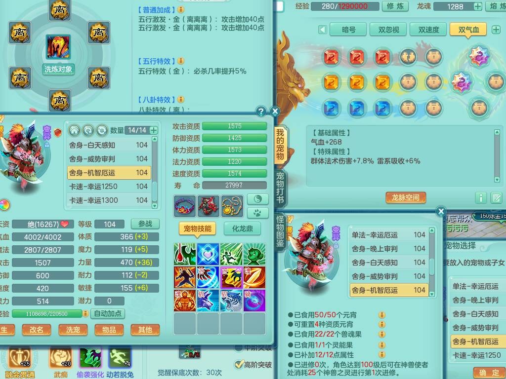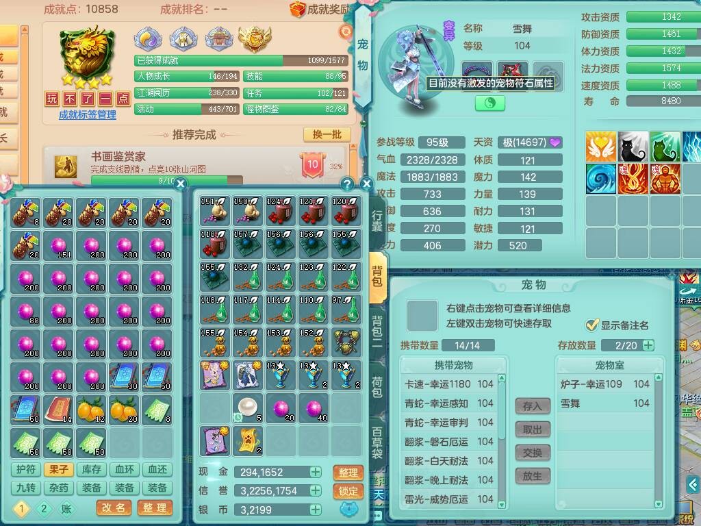 xa9463笑傲江湖99女龙宫1龙无内,2内胆神,【13只觉醒,已潜龙】,1宠皮,五雷单加34头,160易成长烽火单加链子,愤怒单加33腰带,易成长四海单加33鞋子,2.5基础鼎,9个纯六字,1个5字,19只满果子,宠排在榜,3只双人坐骑,原始暴龙泰坦+逍客+西瓜冰武器,月卡还有196天。带个159女龙宫精灵歌,1特殊上善,6.0鼎