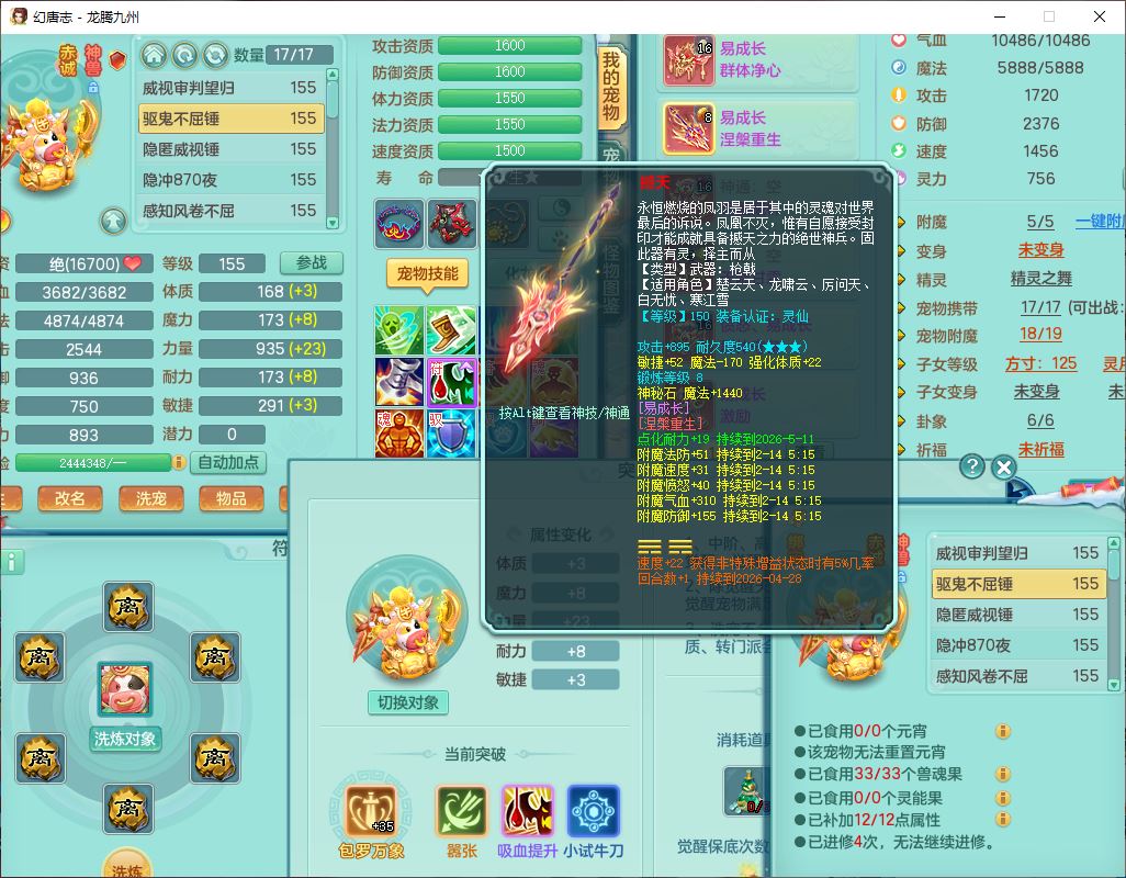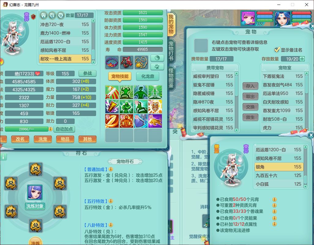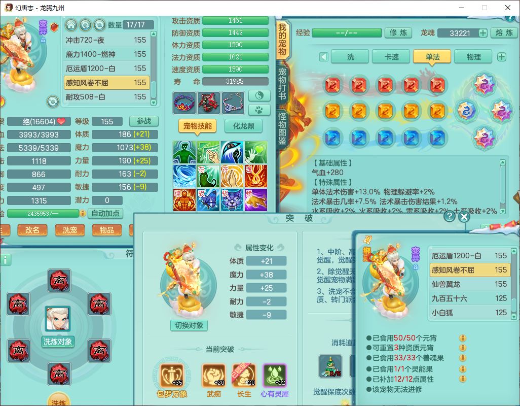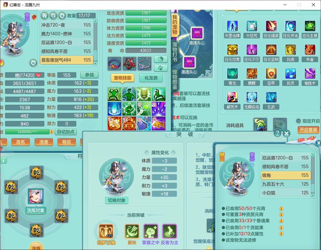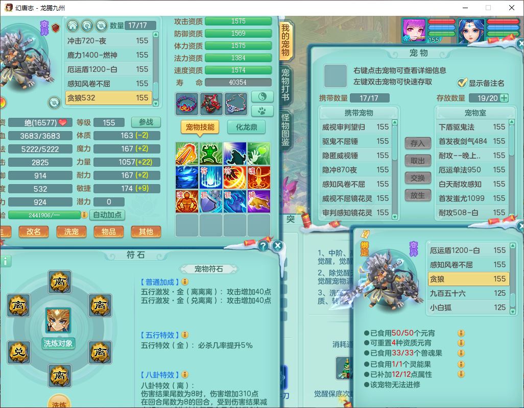 lt9469龙腾九州159女五庄【潜龙+暴龙逍客+西瓜冰】精灵舞、悟、歌,3龙(换)3内(1青蛇)5六技能镜花(1胚子)4特殊(风卷、雷利、烈焰,琴音兽决),16觉醒9宠皮14六字5五字10四字(1洗练珠)综合27只满果子,11红装备,Y晶清帽子,Y慈航武器,愤怒Y群体守备腰带,Y激励鞋子,一套七红输出装,Y止戈武器,Y驭兽鞋子,有法系装,法缭水清鞋子,鼎6.0+70+280,冰晶庭院233房屋173,永久外观、精灵皮肤,615W神武币,4双人坐骑(1飞行),带两个150奶粉