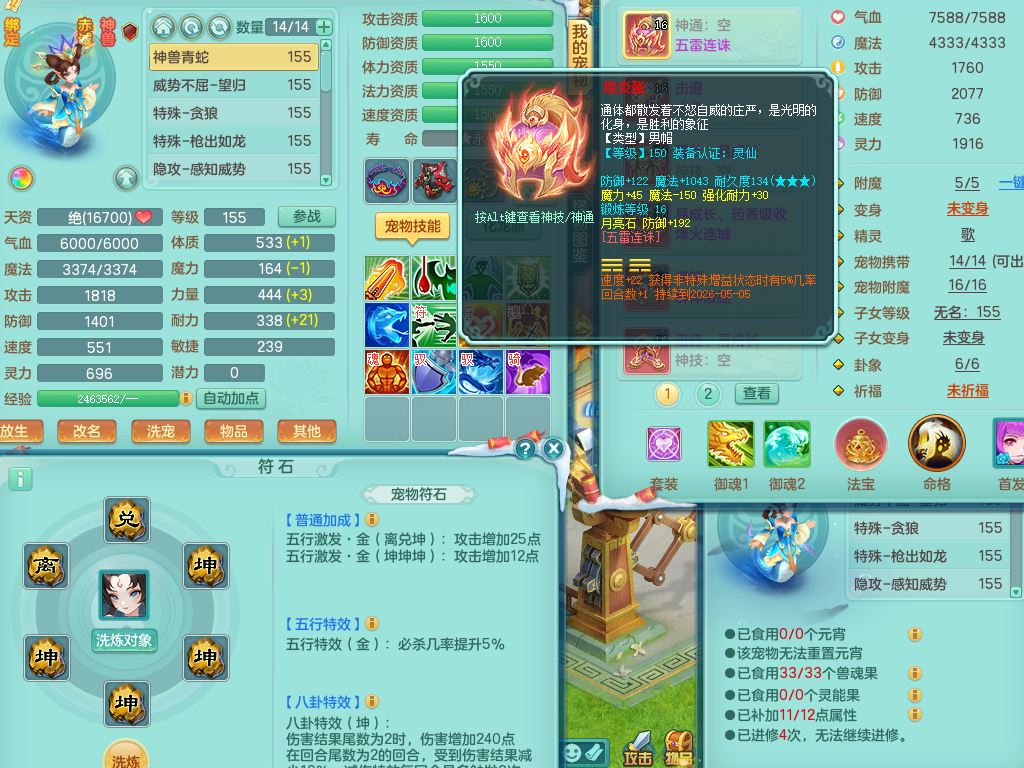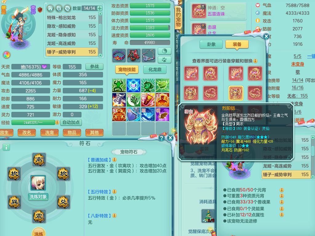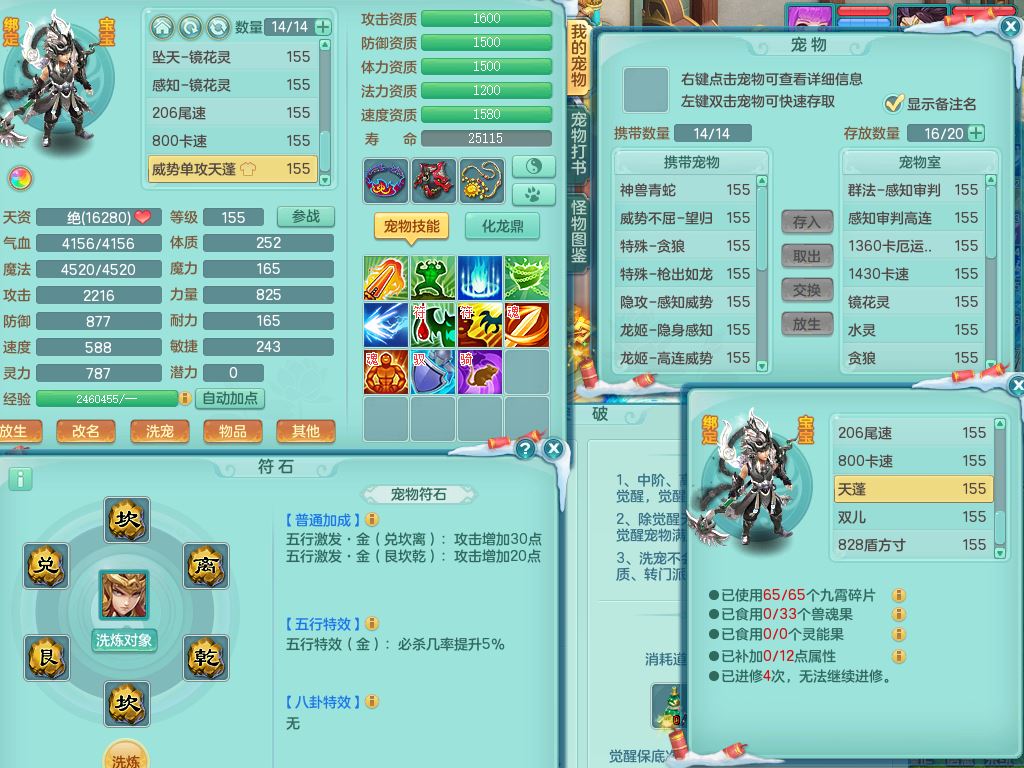 fy9466风云再起159男龙宫【暴龙猎手+火焰之力】精灵歌,1内丹青蛇5特殊(噬风/枪出/祈雨/堕天/荒古兽决)4镜花灵,11只满果子6觉醒1个纯6字,全身单加12红,五雷头,击退止戈武器,强壮Y衣服,满灵Y药香烽火项链,愤怒双红腰带,迅捷Y鞋,鼎5.0+70+280,57天月卡,永久外观精灵皮肤,20仙兽灵16内丹碎片,2颗天马之心,2只双人坐骑,带159魔王精灵歌,1特殊(翻江)2镜花灵1觉醒2个纯6字,全身单加,265Y玉清项链,五雷武器,鼎4.5,2套符石