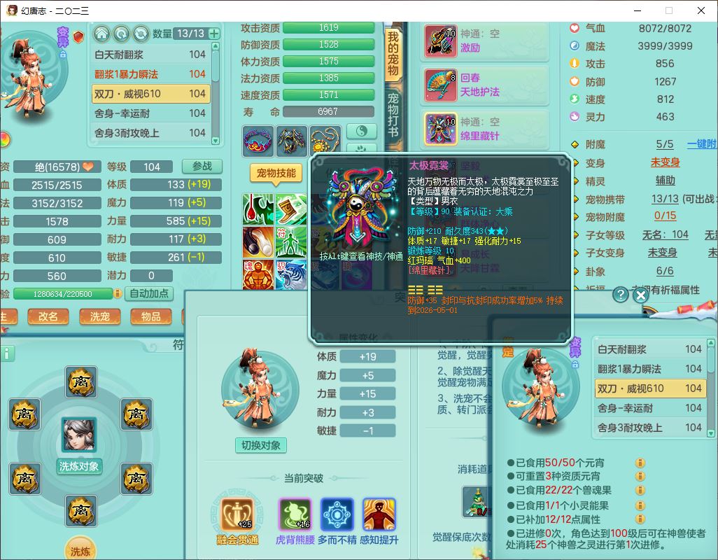 23-9474,2023区99男无量【潜龙号】体敏、全力双精灵,1内4翻江3舍身,9觉醒8六字1五字5四字综合14只满果子,10红装备,回春罗汉武器,坚毅水清项链,愤怒晶清腰带,Y四海鞋子,鼎2.5+42+168,9个仙兽灵,仓库多宝宝胚子