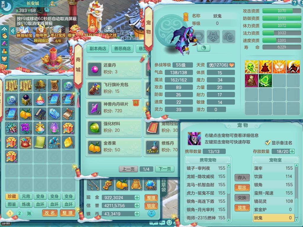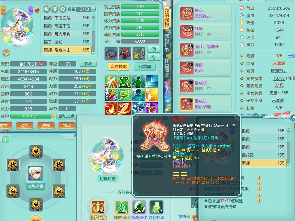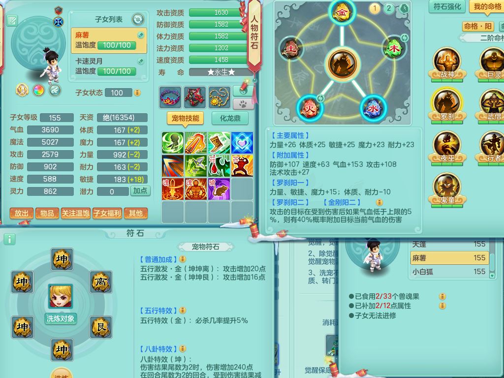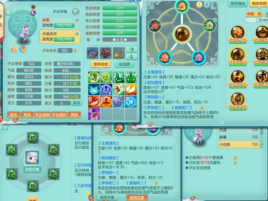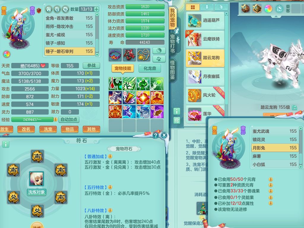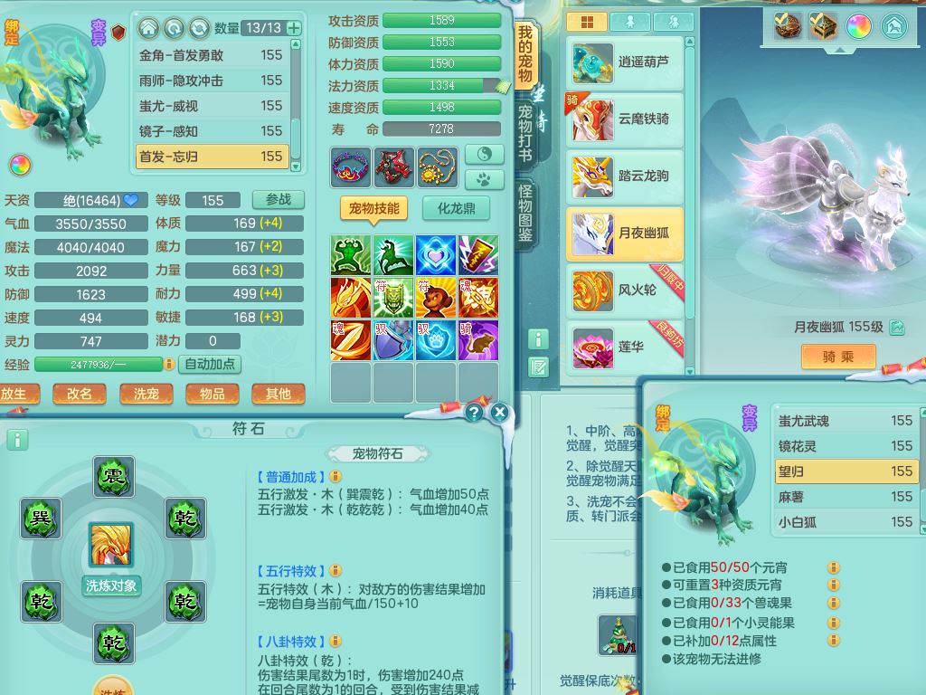 jn9506今年勇159男万兽精灵舞,2套星穹,1内丹龙马3特殊(月光/藕断/翻江兽决)1皮(幻灵果)3镜花灵1龙姬,12只满果子4觉醒,全身单加10红,904狂暴武器,匠心破血头,强壮Y衣服,神佑迟滞项链,Y崩山鞋,鼎5.5+70,2套符石,永久外观精灵皮肤,5坐骑(3只双人)带150奶粉龙宫
