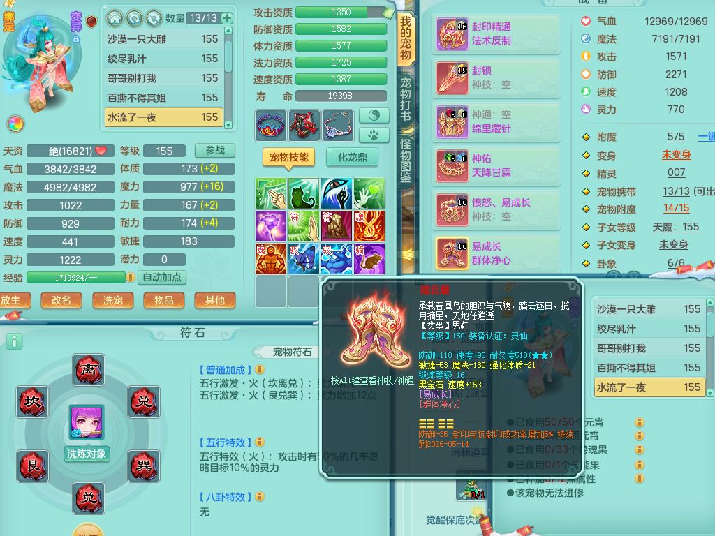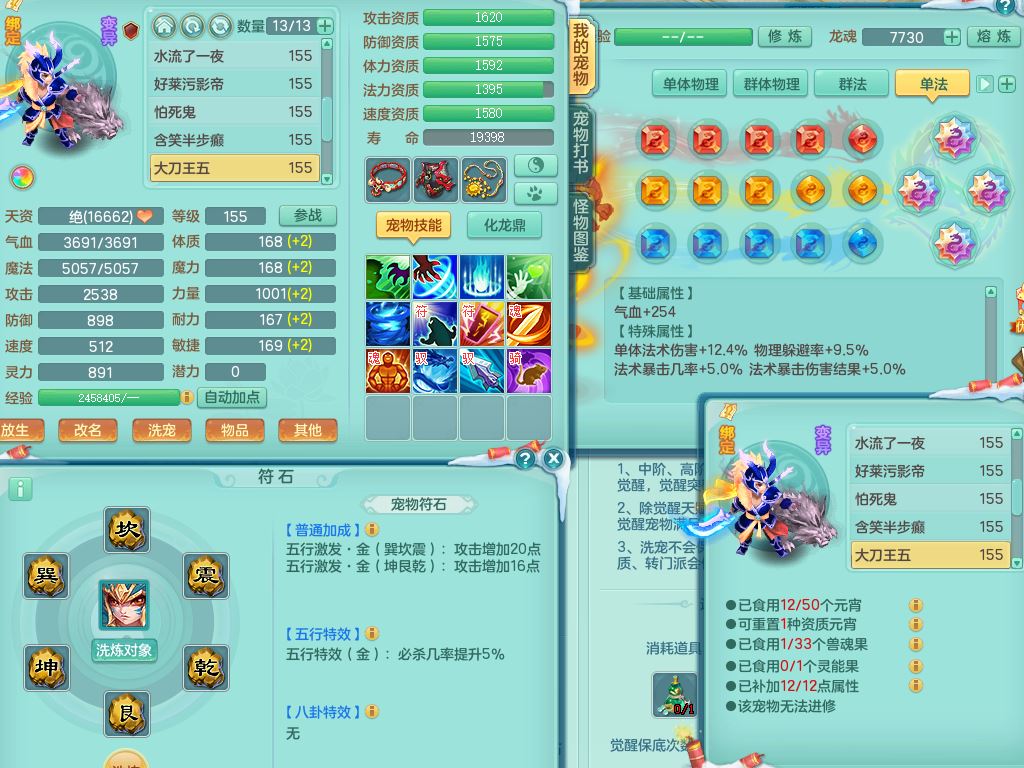 tx9513天下无双159男方寸精灵舞,1内丹神3特殊(剑胆/兽决墨守/藕断)2镜花灵,2觉醒,10红,封印双红头,单加封锁武器,神佑四海项链,愤怒Y腰带,单加Y晶清鞋,鼎4.5,78天月卡,庭院151房屋153