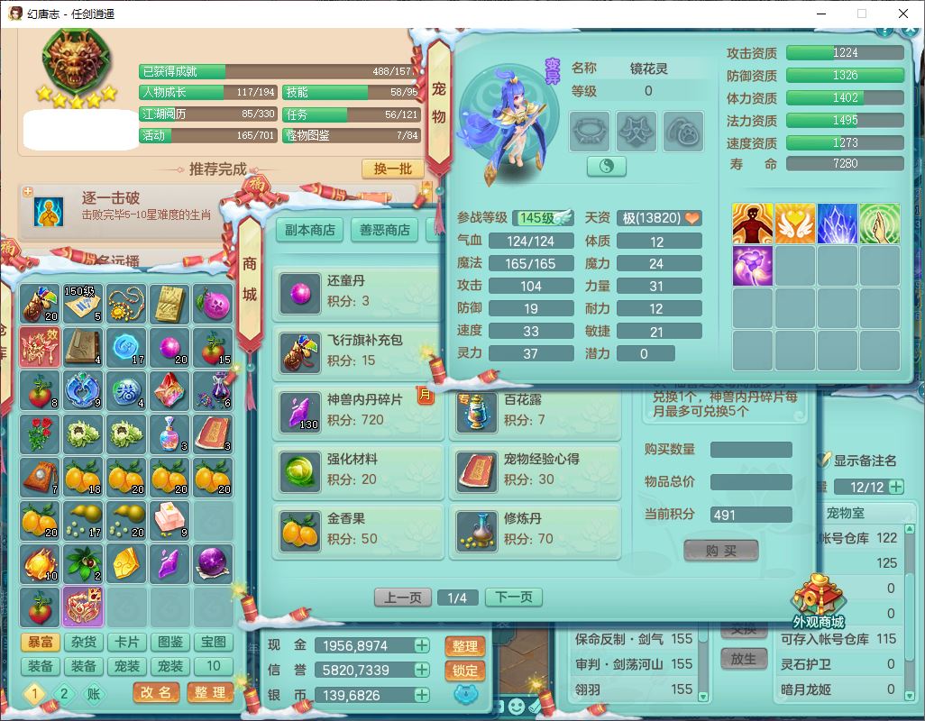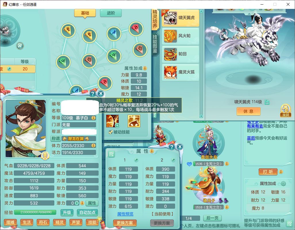 rj9526任剑逍遥109男无量【潜龙号】精灵歌,1龙(换、无内)1内丹青蛇1翻江2羽袭1飞羽,11觉醒1宠皮9六字17只满果子,11红装备,回春心神武器,Y罗汉衣服,药香四海项链,愤怒疾速,Y笑里鞋子,一套输出装备,587法爆武器,Y群体守备衣服,神佑项链,Y破血鞋子,鼎3.0+42+168,庭院160,永久外观、精灵皮肤,301W神武币,10个内丹碎片,1双人飞行坐骑,带109成品男天魔精灵舞,10红装备,成品159女魔王9红装备