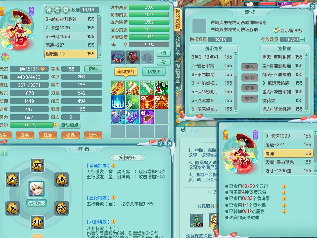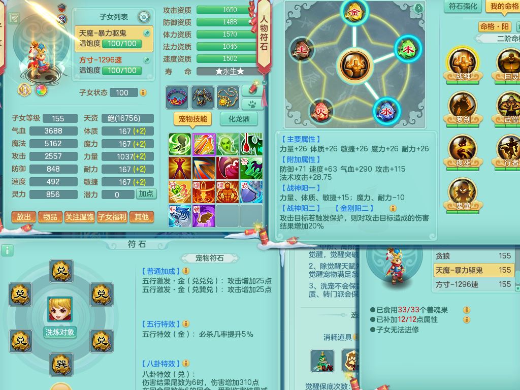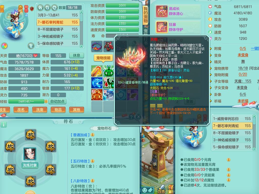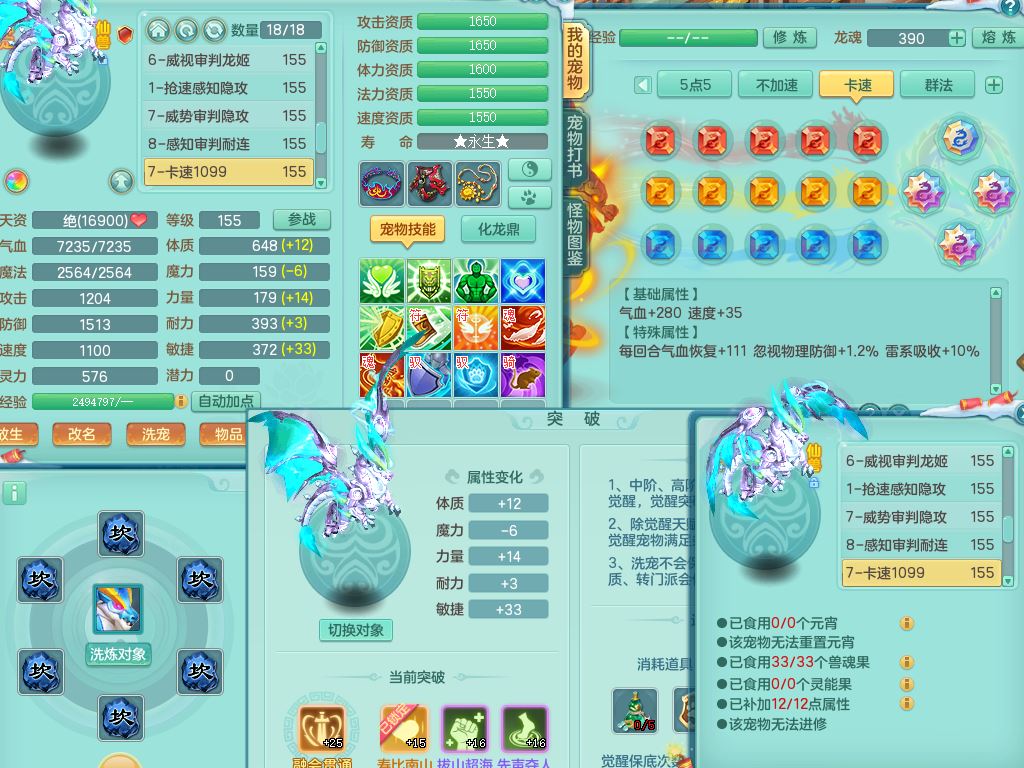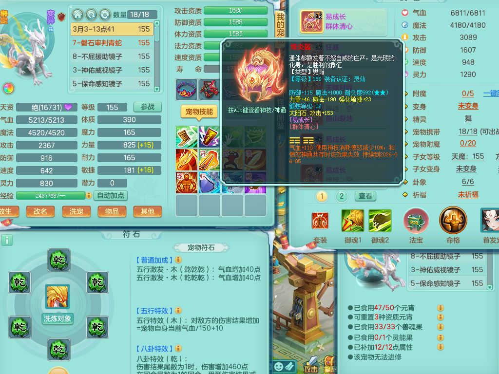 sr9520生日快乐159男万兽【潜龙号】精灵歌,4字靓号,4龙(换)3内(1青蛇)2特殊(风卷/破碎兽决)18格子26只满果子8觉醒13个纯6字,全身单加,Y玉清头,916狂暴双红武器,崩山项链,鼎5.5+70+280,28天月卡,庭院167房屋155,永久外观精灵皮肤,1640金币,宠排在榜,4坐骑(2只双人)带150奶粉佛门