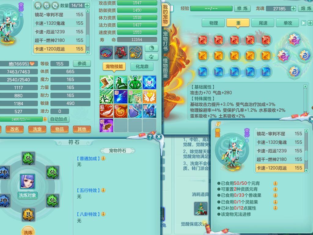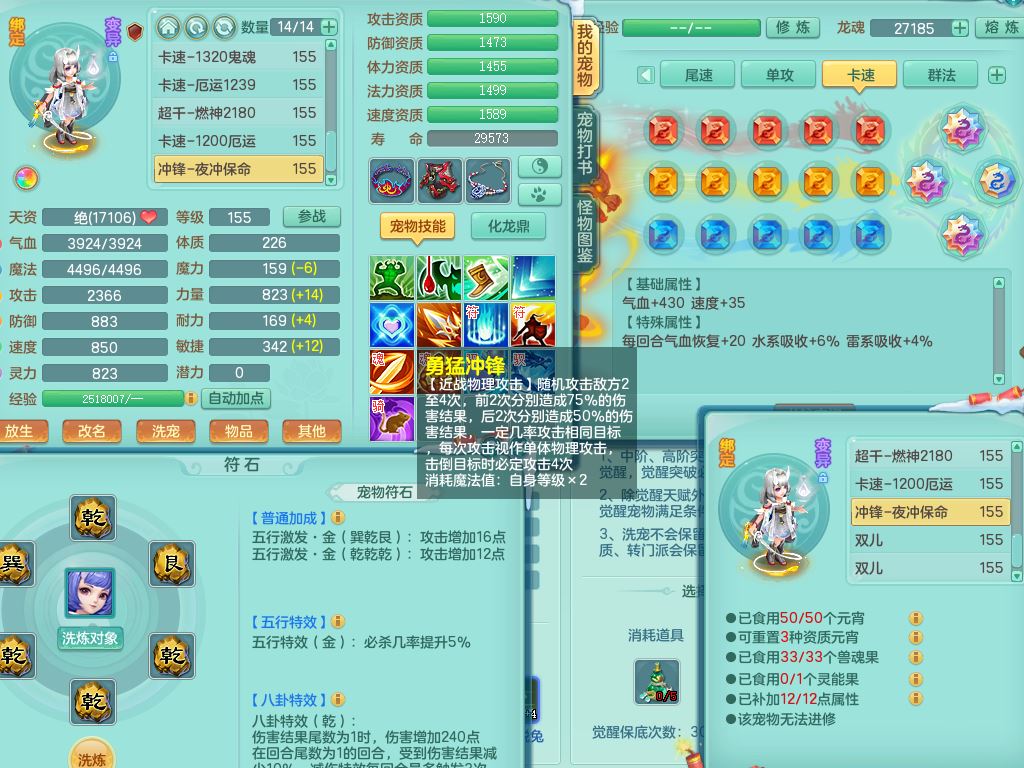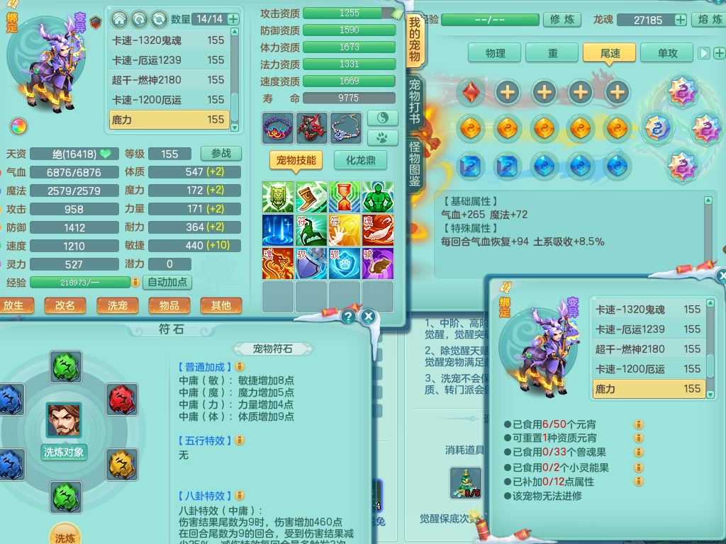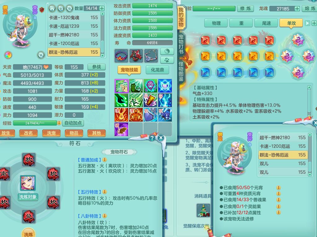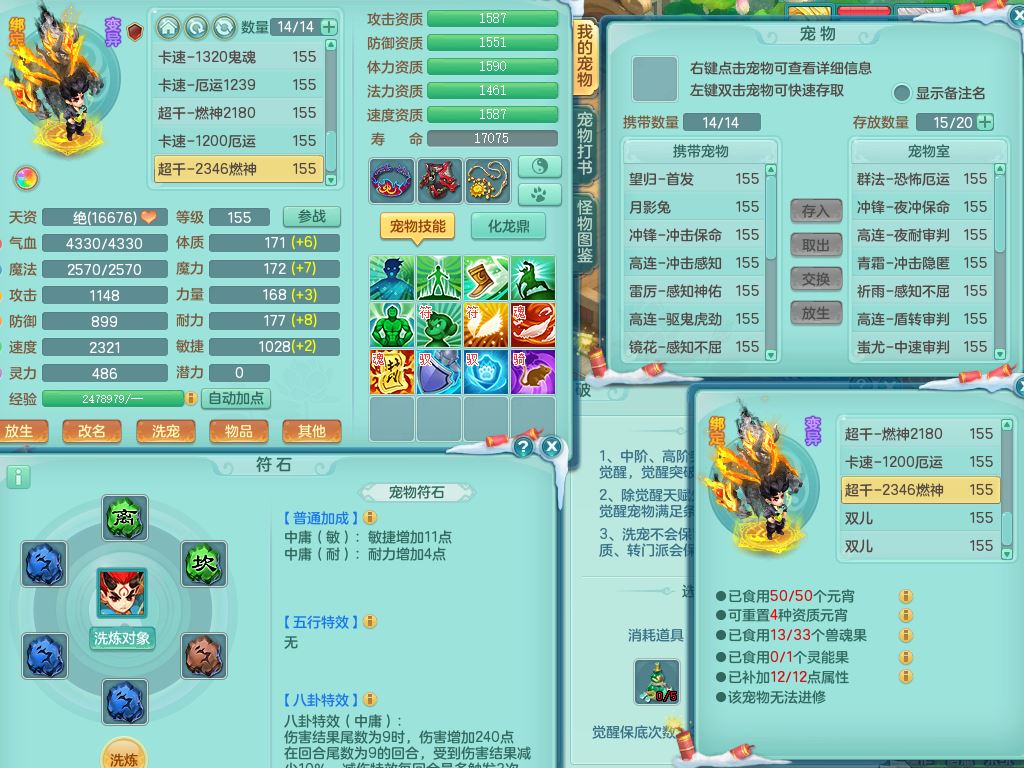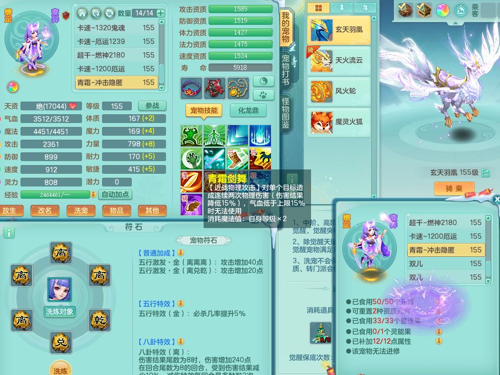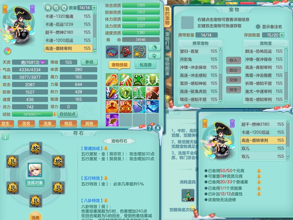 qq9536七窍玲珑159女灵月精灵舞,3龙(换,无内)1内1破境1神兽内丹4皮2特殊(青霜/祈雨/冲锋)综合15只满果子5觉醒3个纯6字,愤怒6特,愤怒罗汉腰带,鼎5.5+70+280,68天月卡,庭院151房屋155,永久外观精灵皮肤,1799金币,宠排在榜,2只双人坐骑