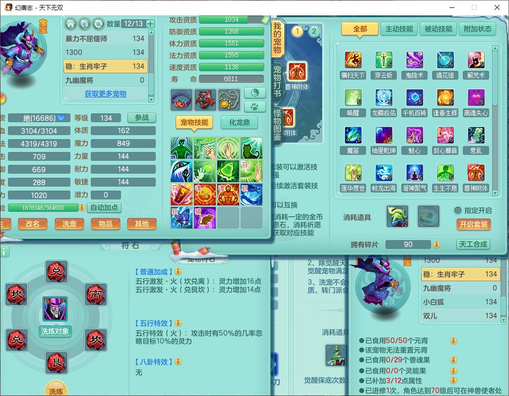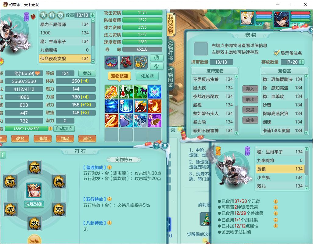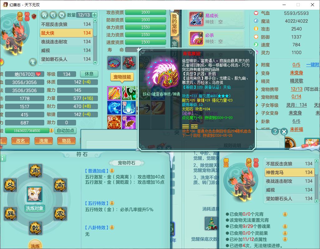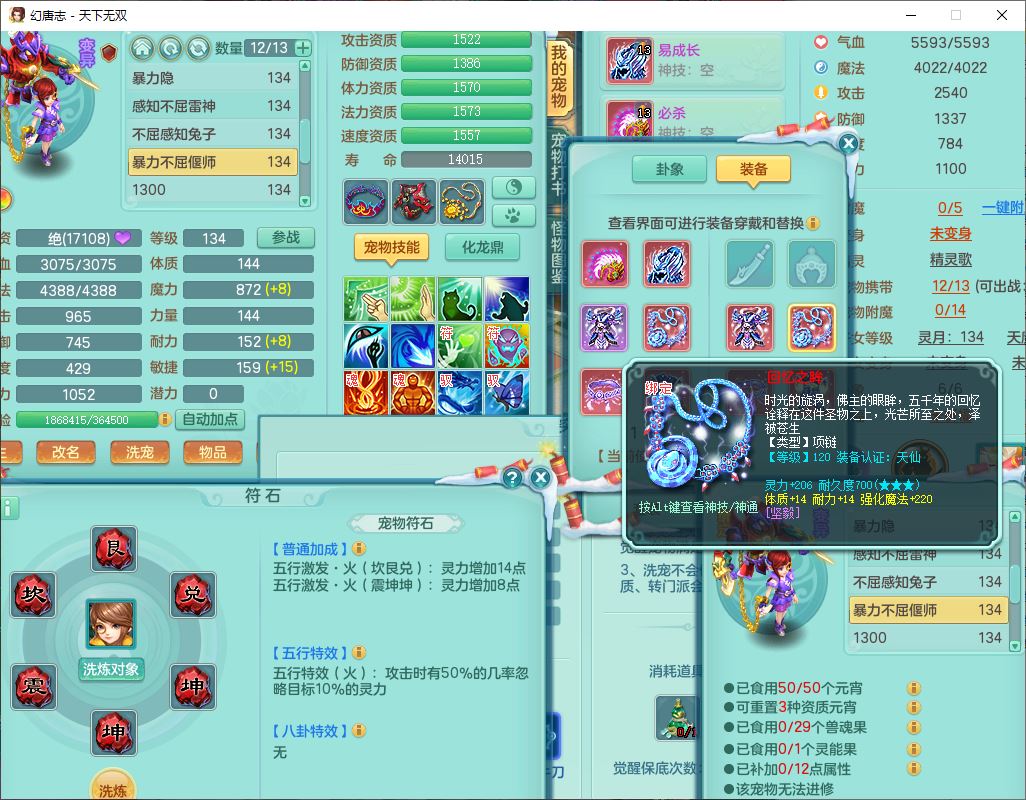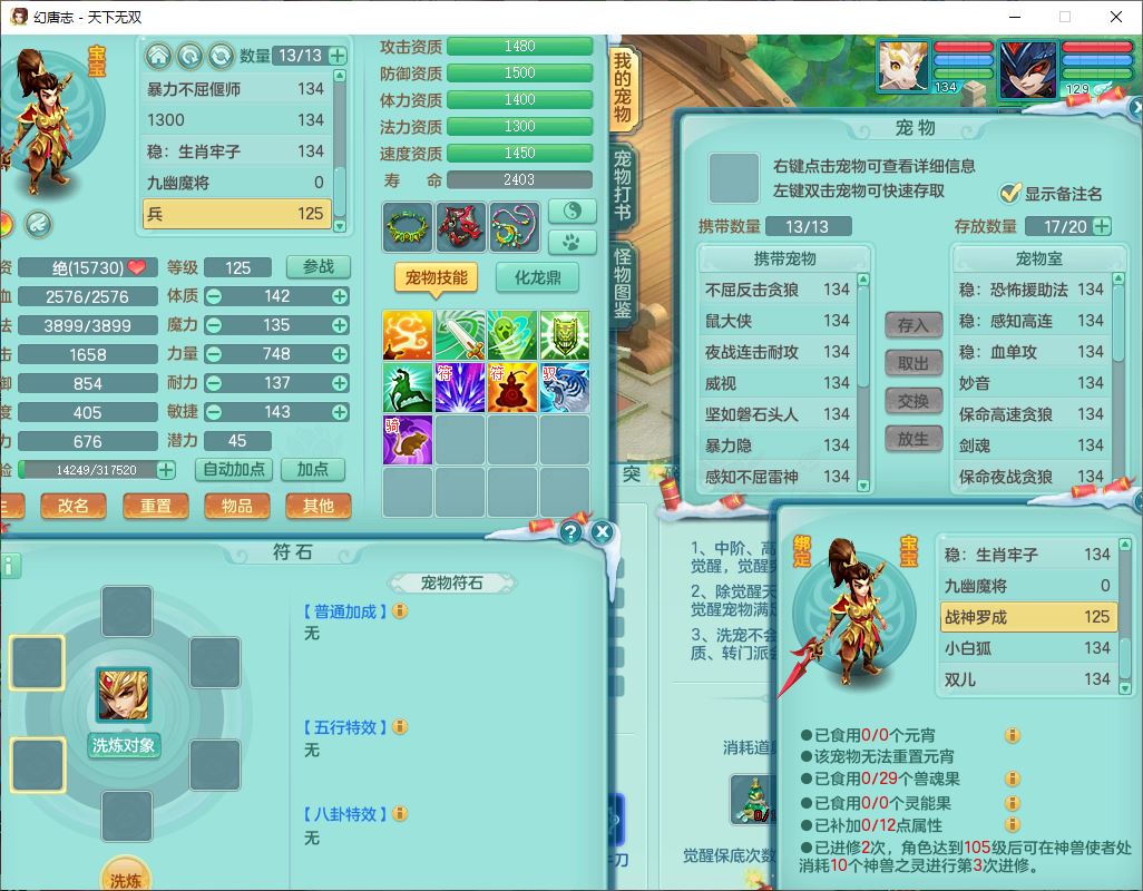 tx9540天下无双129男万兽精灵歌,1内丹龙马1七技能雷光妖鬼,宝宝种类齐全,2觉醒1宠皮2五字4四字(1洗练珠)综合6只满果子,装备齐全,733必杀武器,崩山衣服,Y玉清鞋子,鼎4.0,17个仙兽灵,1飞行坐骑