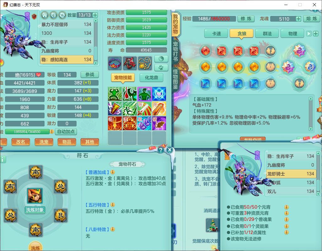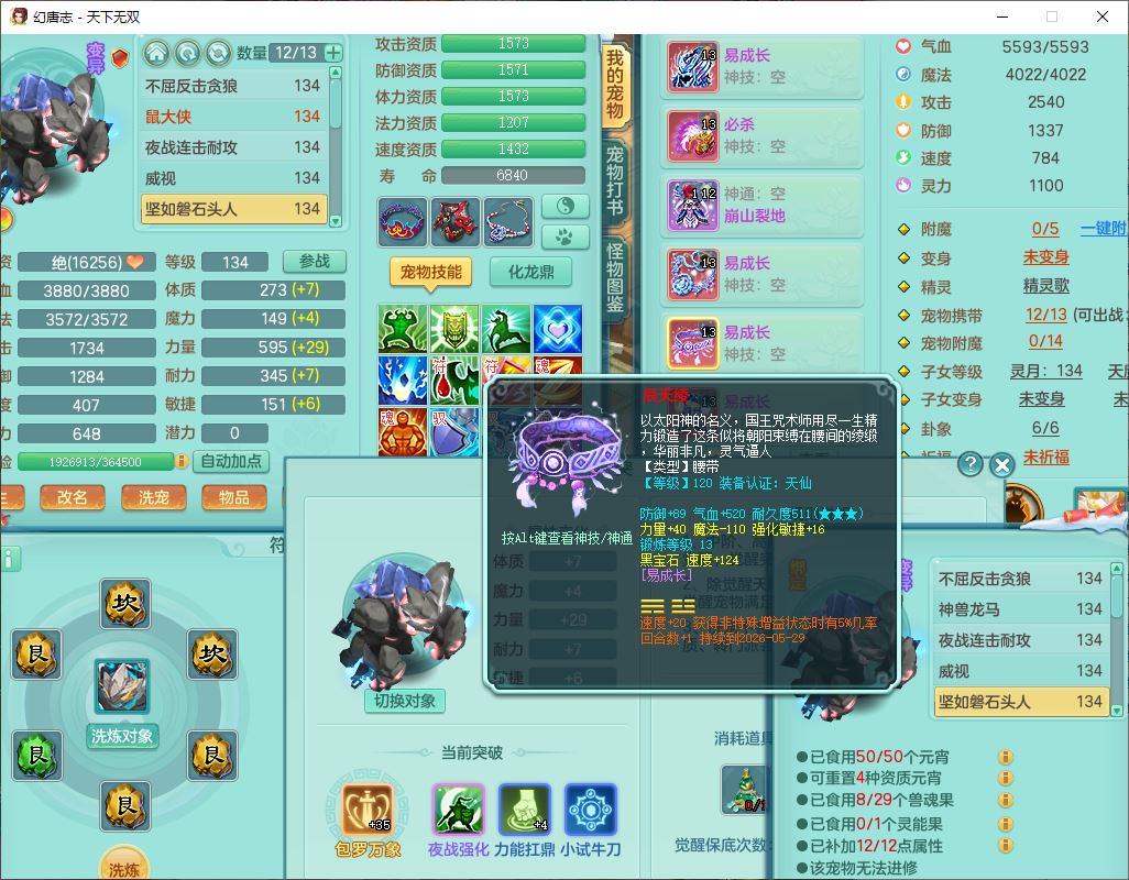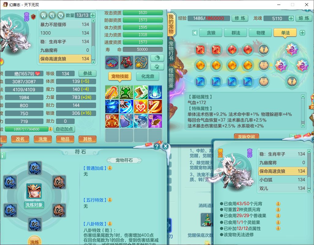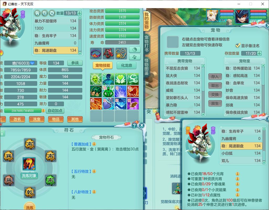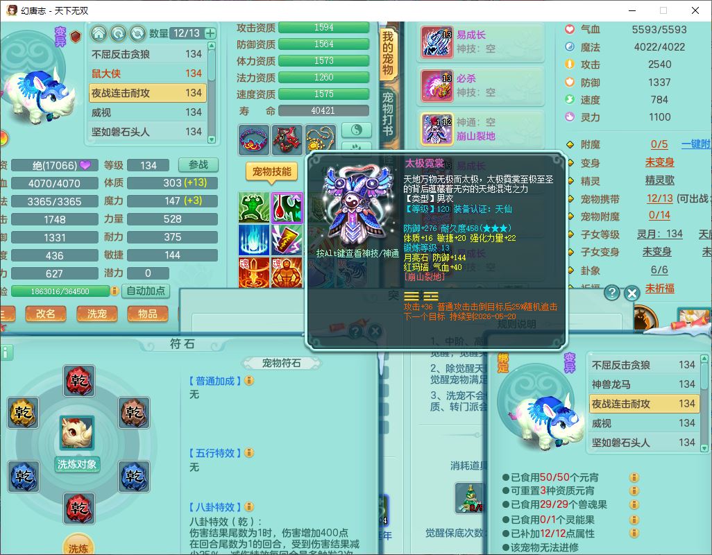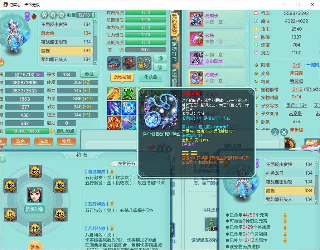 tx9540天下无双129男万兽精灵歌,1内丹龙马1七技能雷光妖鬼,宝宝种类齐全,2觉醒1宠皮2五字4四字(1洗练珠)综合6只满果子,装备齐全,733必杀武器,崩山衣服,Y玉清鞋子,鼎4.0,17个仙兽灵,1飞行坐骑